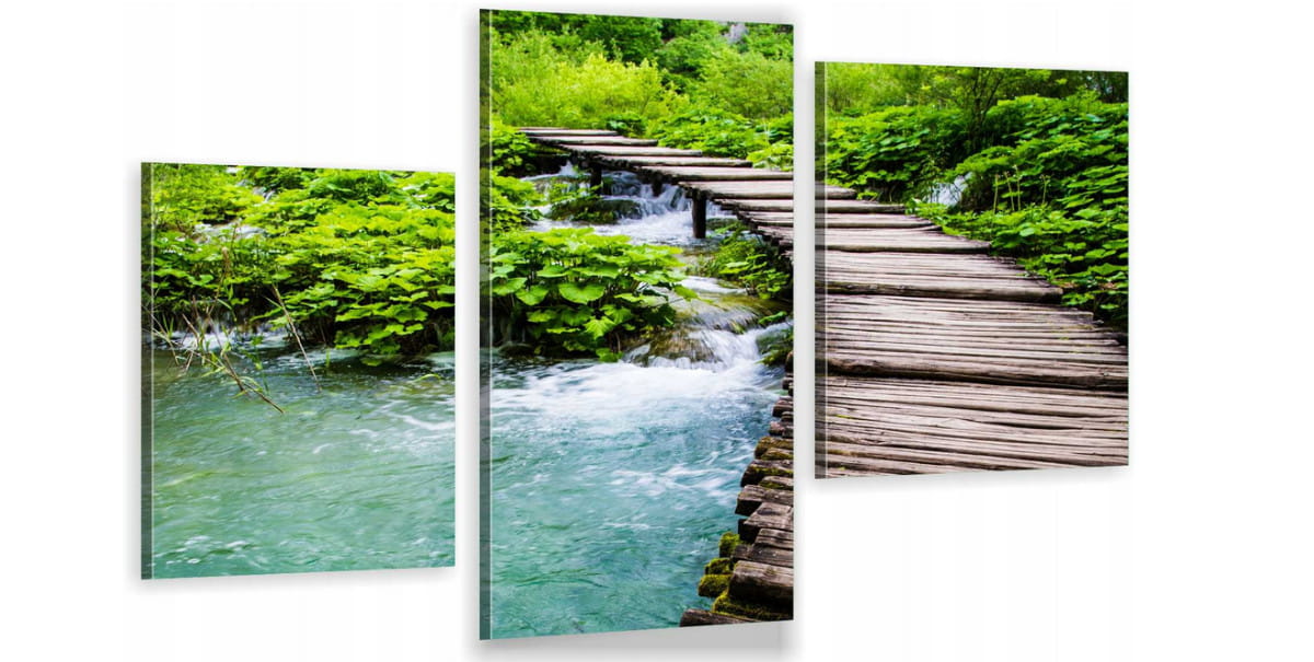 Obraz mostek nad rzeką TRYPTYK CANVAS do salonu