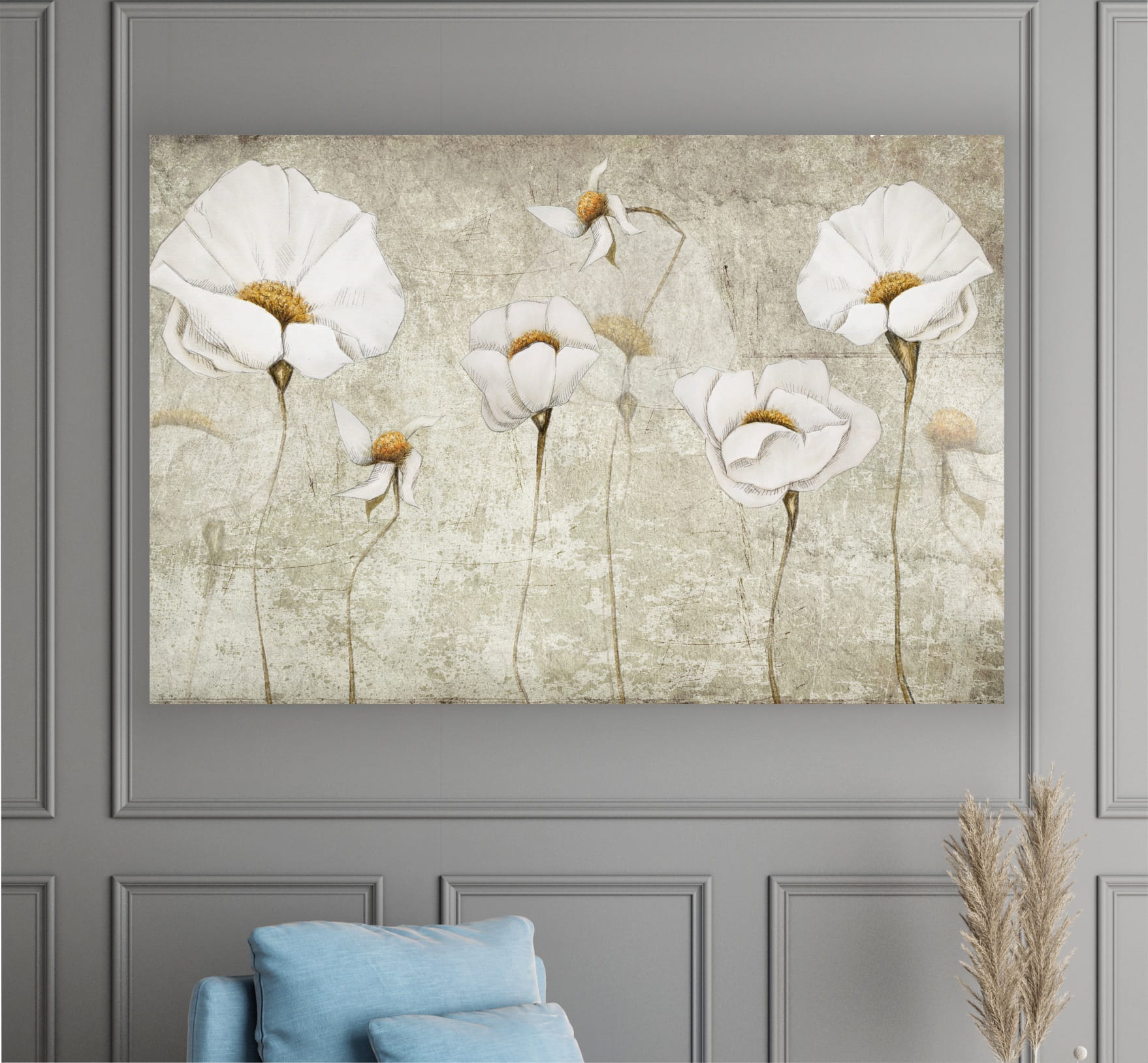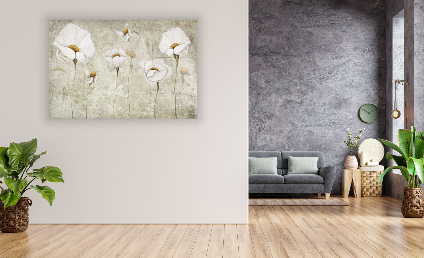 Obraz na płótnie DELIAKTNE JASNE KWIATY NA BETONIE do salonu sypialni