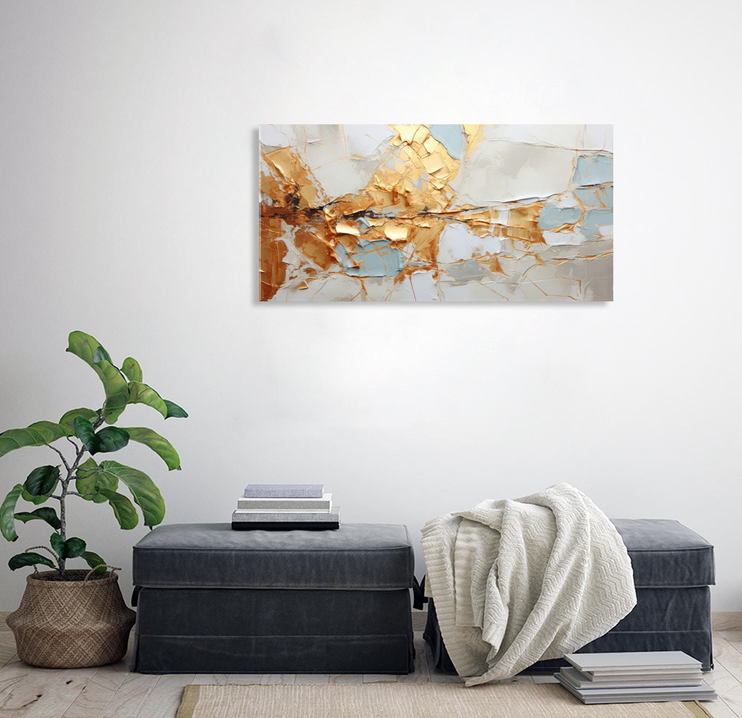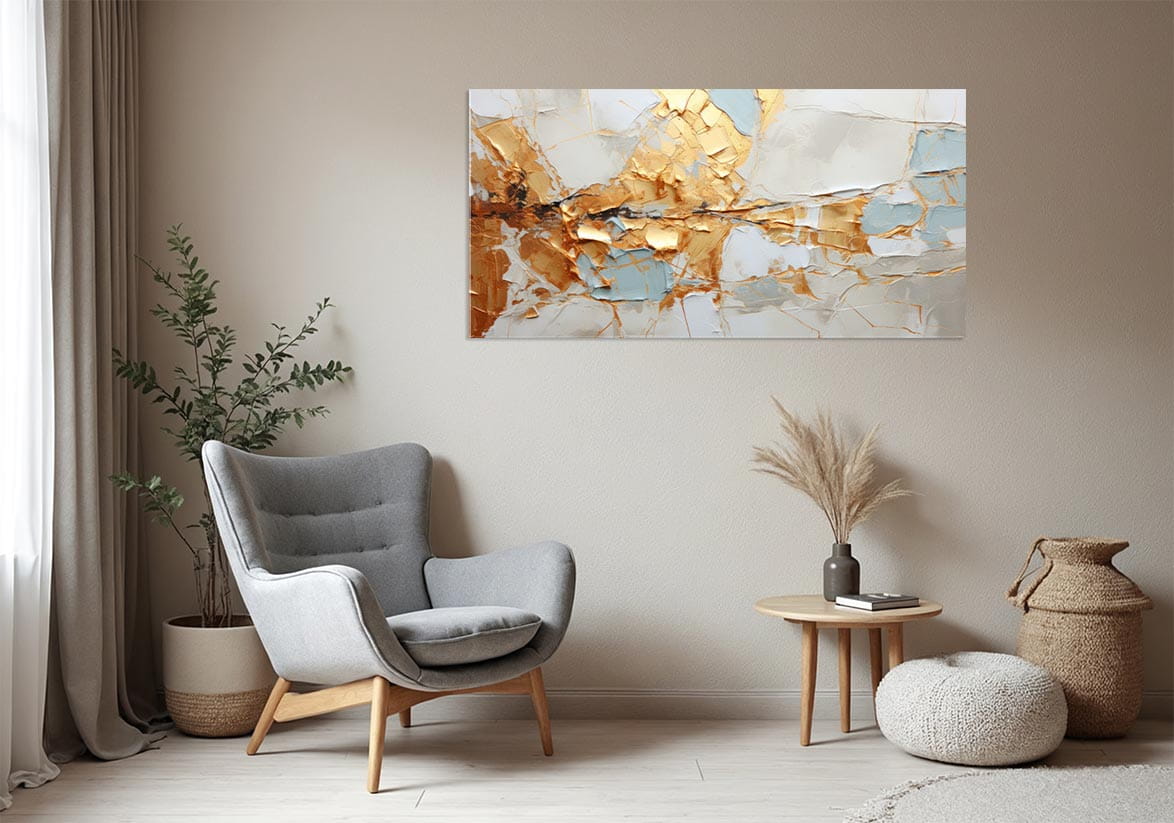 - w zestawie 2 zawieszki montowane z tyłu obrazu, jak również piankowe dystanse regulujące równomierny odstęp obrazu od ściany o około 1 cm przez co obraz daje efekt przestrzeni