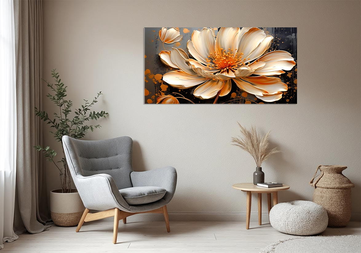 - w zestawie 2 zawieszki montowane z tyłu obrazu, jak również piankowe dystanse regulujące równomierny odstęp obrazu od ściany o około 1 cm przez co obraz daje efekt przestrzeni