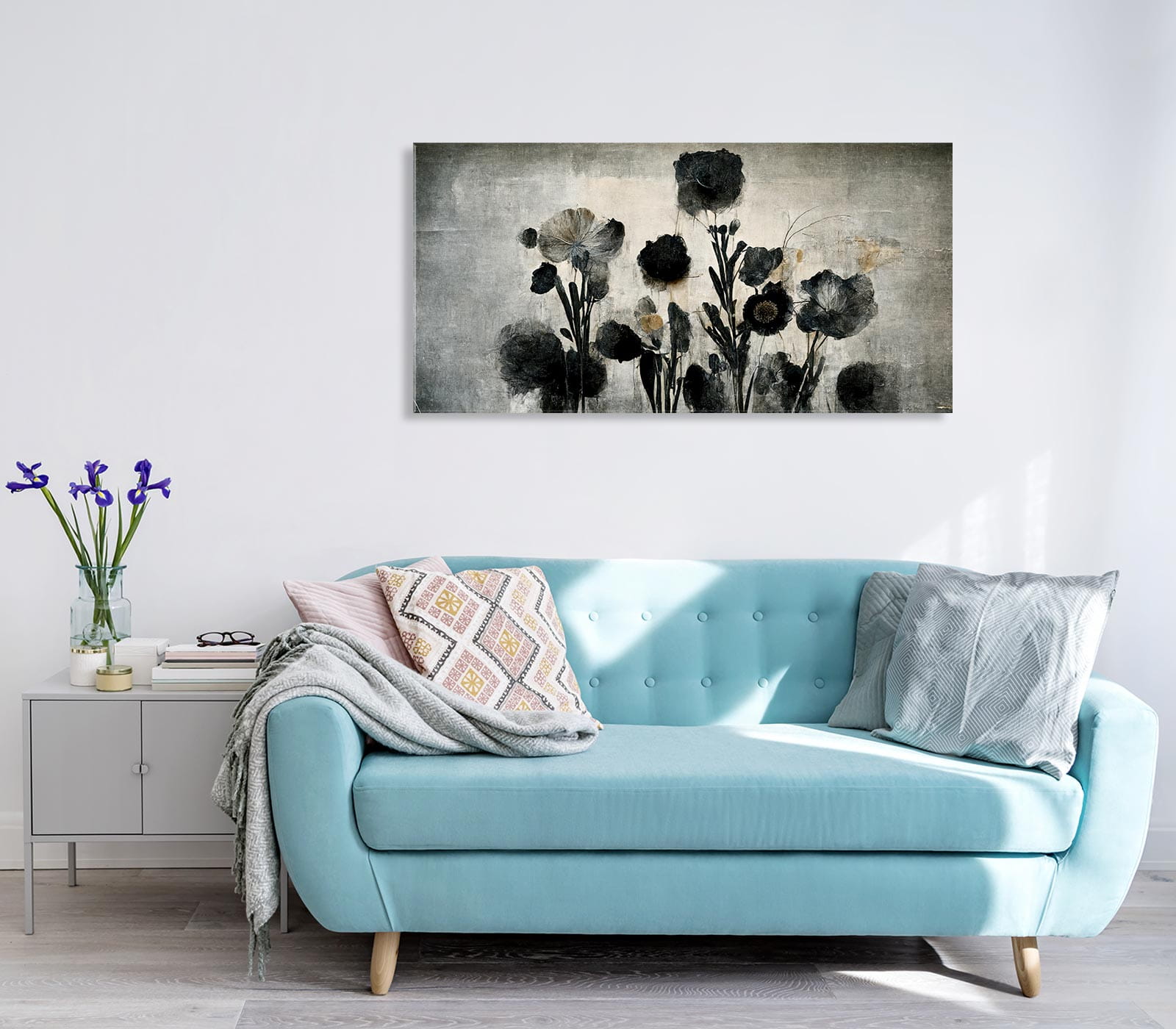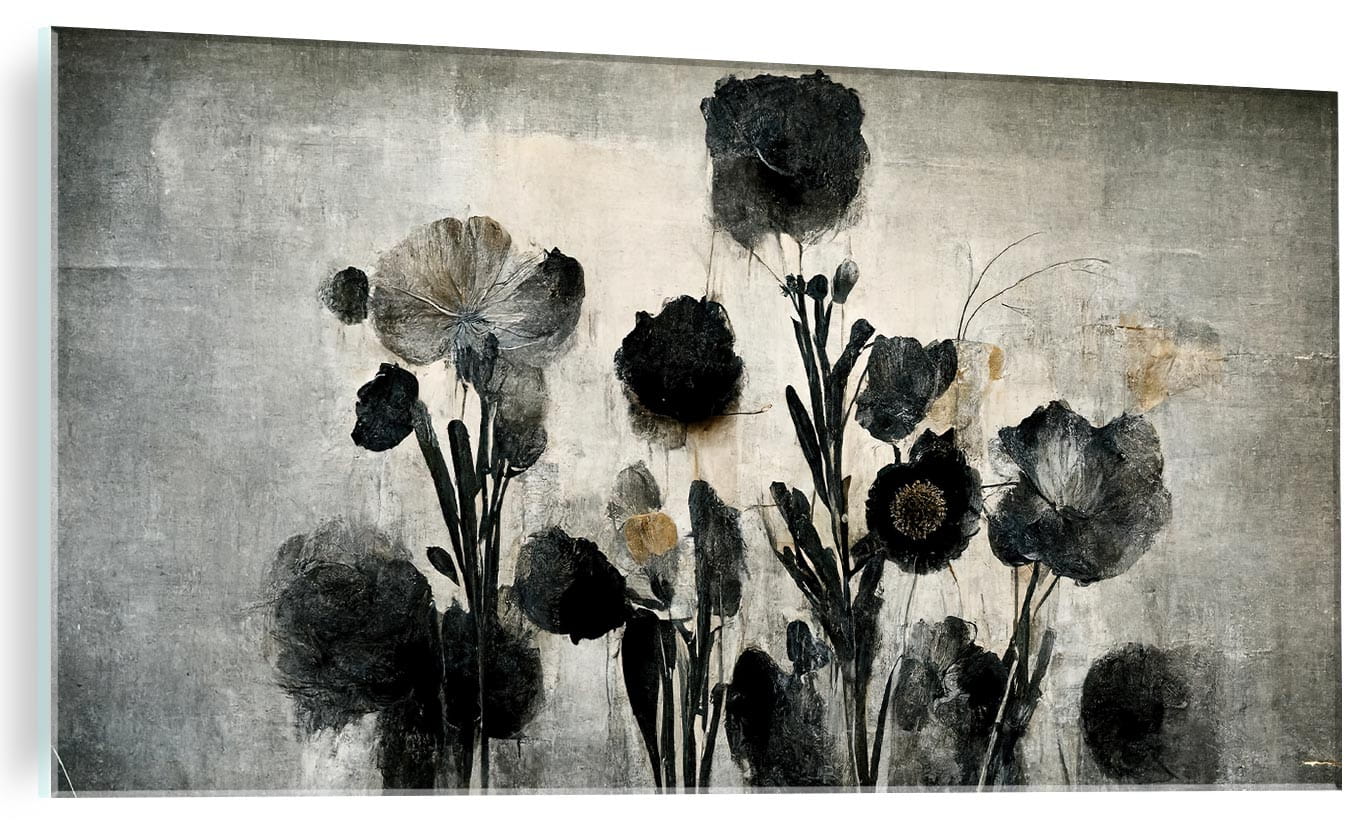 Obraz szklany kwiaty czarne nowoczesny obraz na szkle