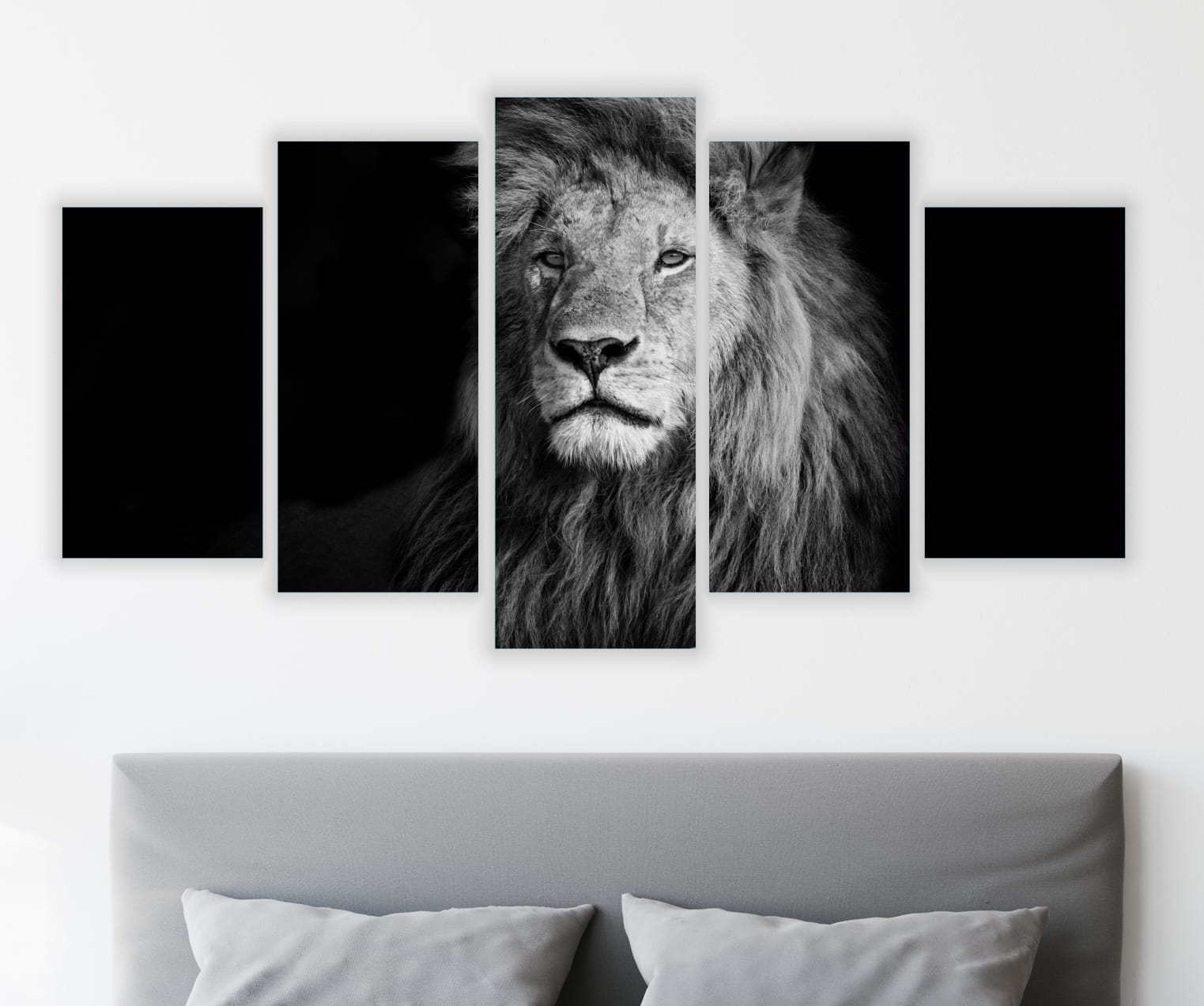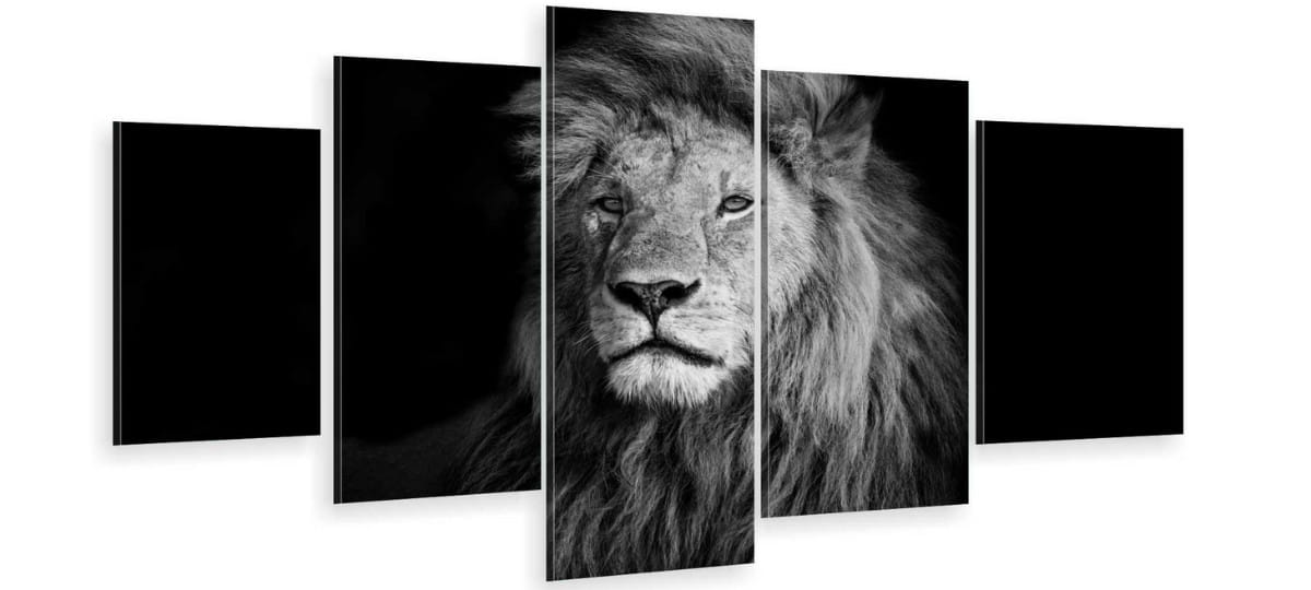 Obraz wieloczęściowy 5 części tryptyk CZARNO BIAŁY LEW