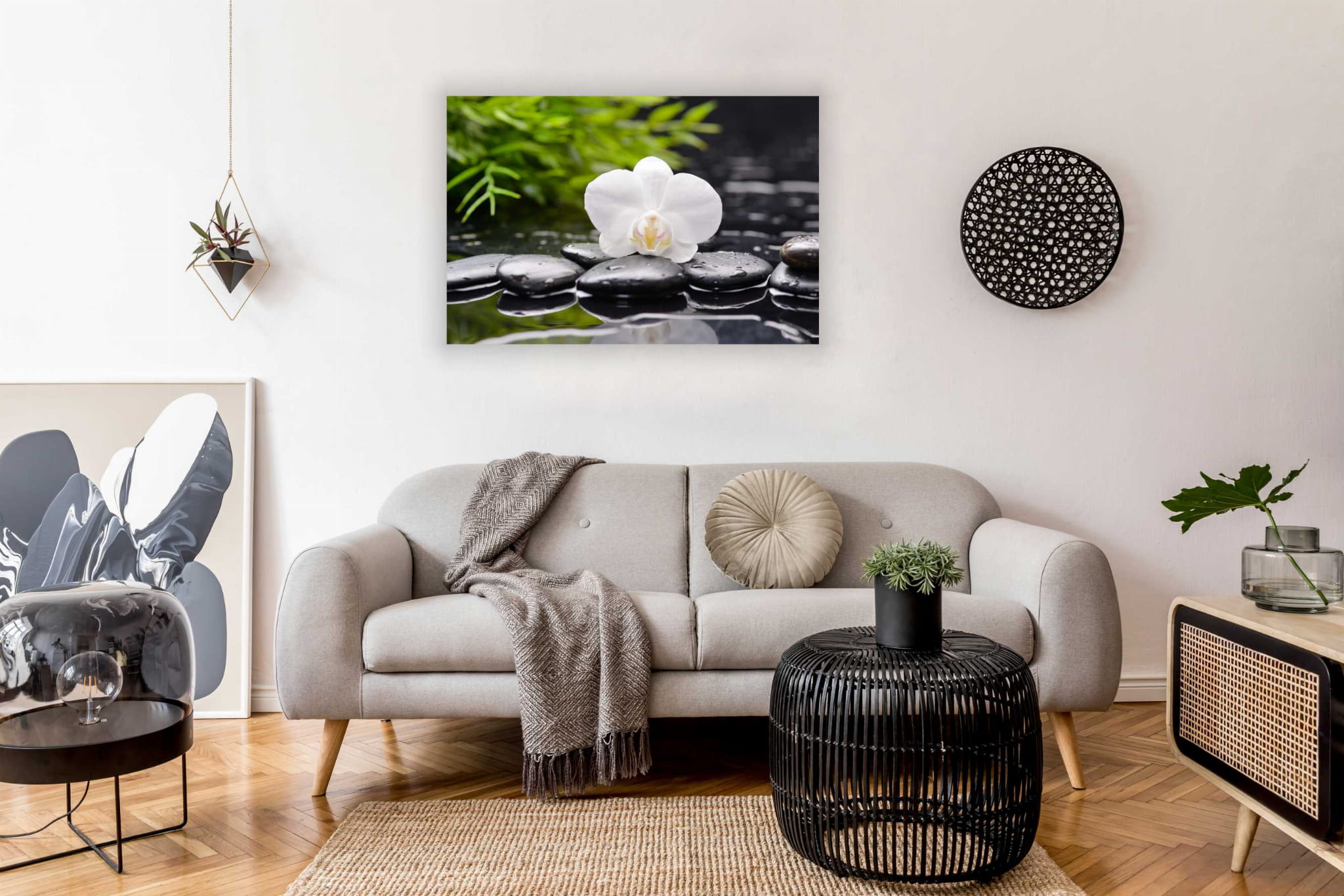 Obraz zen Biała Orchidea kamienie spa do salonu na płótnie