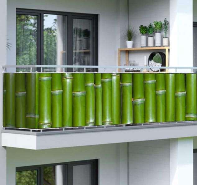 Osłona balkonowa na wymiar wykonana z tkaniny winylowej typu baner lub siatka mesh do wyboru.