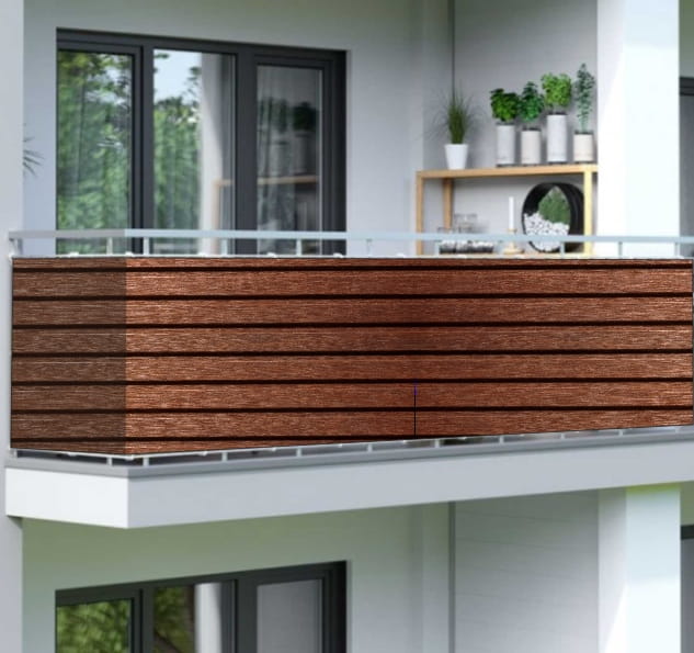 Osłona balkonowa na wymiar wykonana z tkaniny winylowej typu baner lub siatka mesh do wyboru.