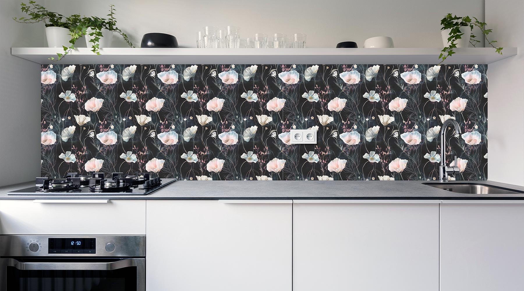 PANEL PCV na ścianę SAMOPRZYLEPNY kwiatowy wzór na ciemnym tle