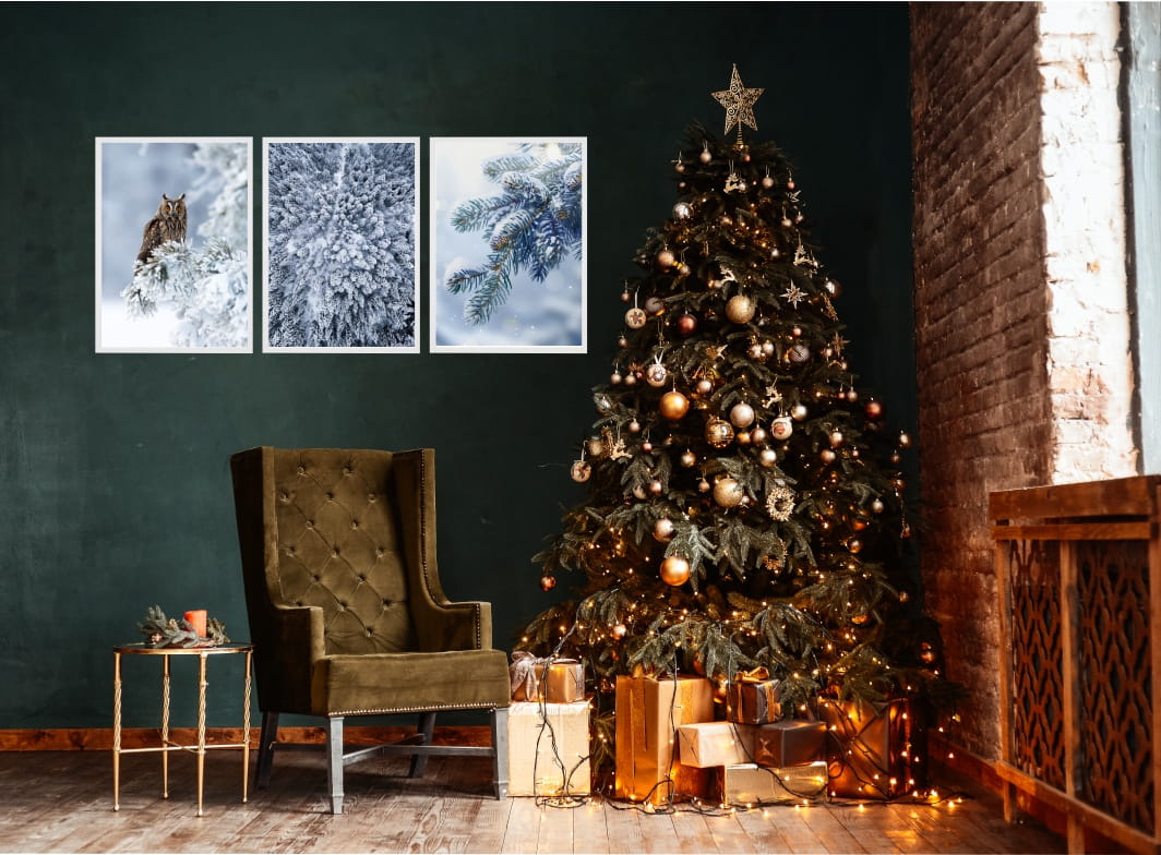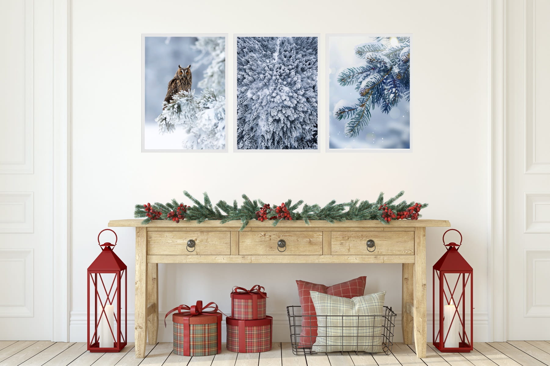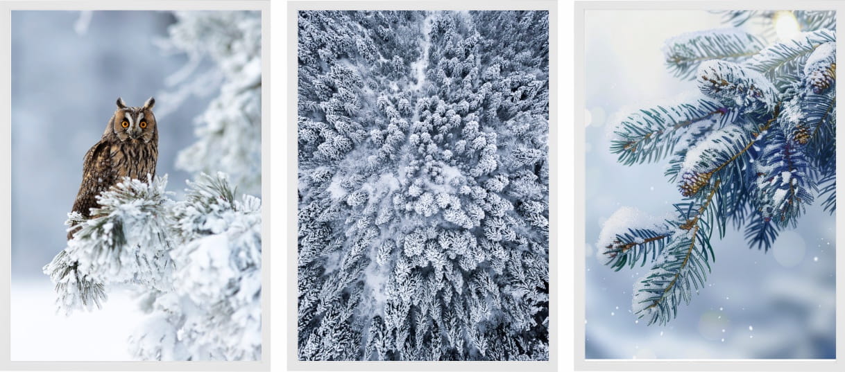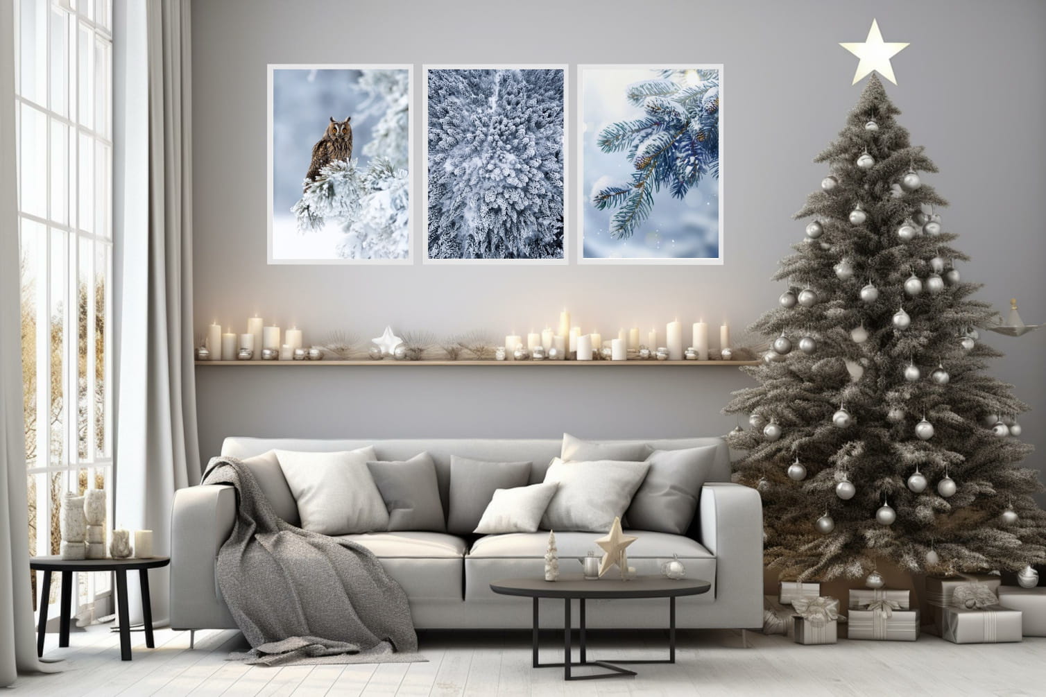 PLAKATY ZESTAW NA ZIMĘ na ścianę ZIMOWY KRAJOBRAZ ZIMA SOWA NATURA