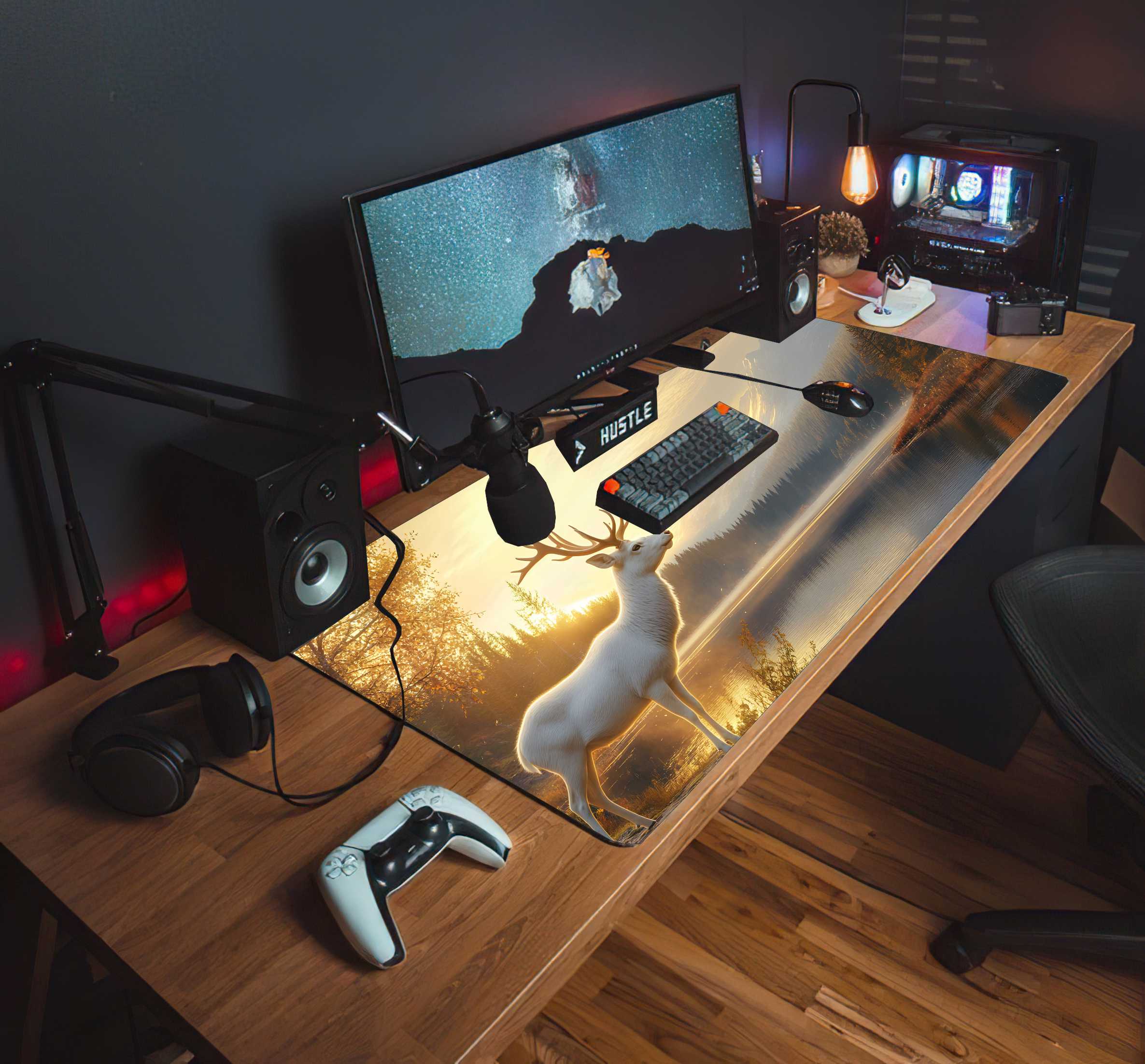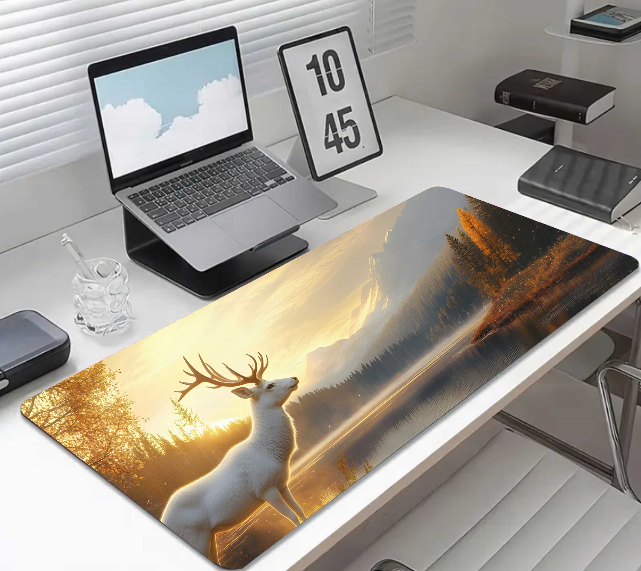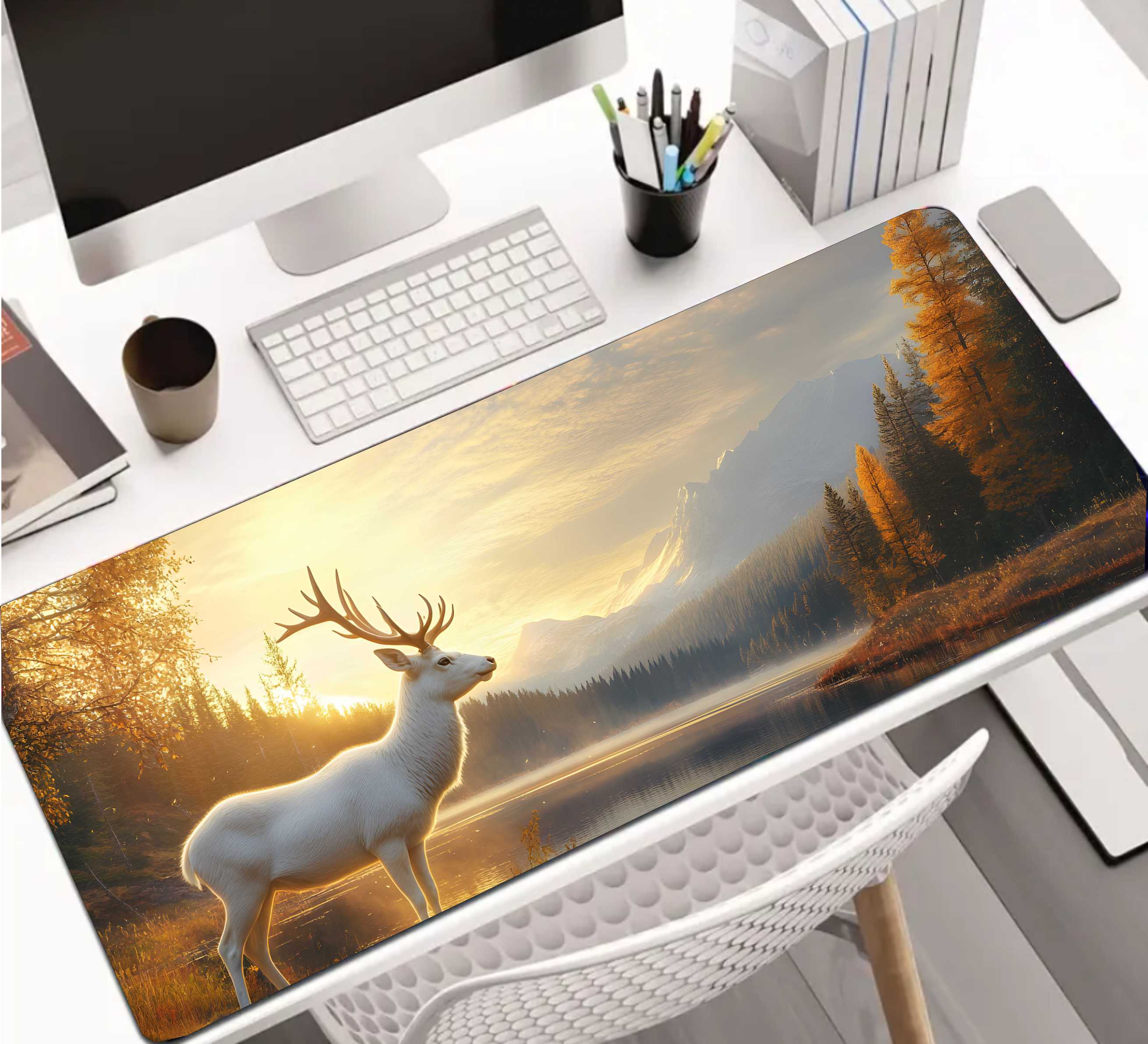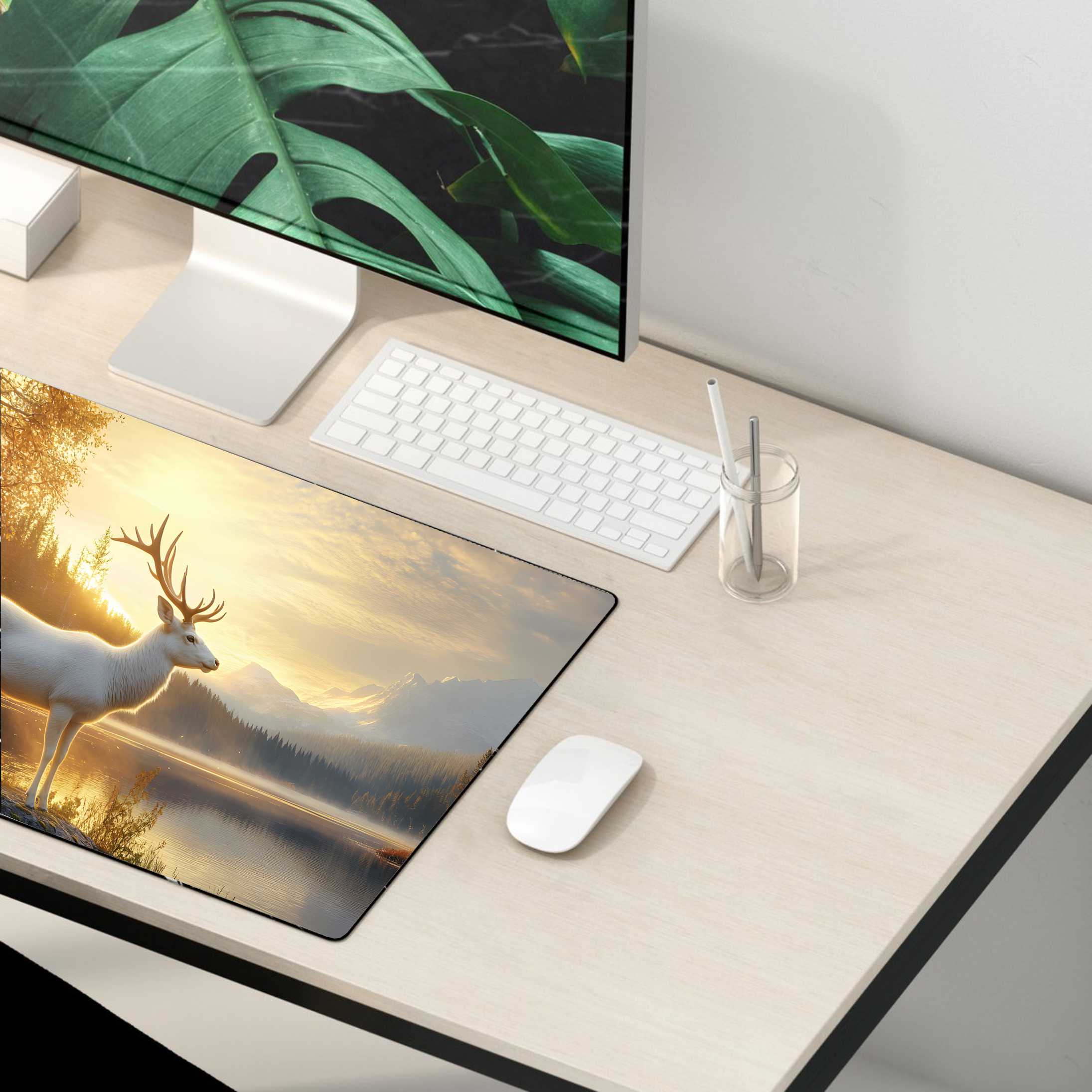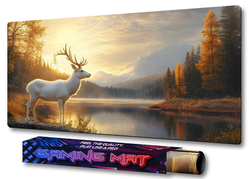PODKŁADKA GAMINGOWA NA BIURKO fantasty BIAŁY JELEŃ