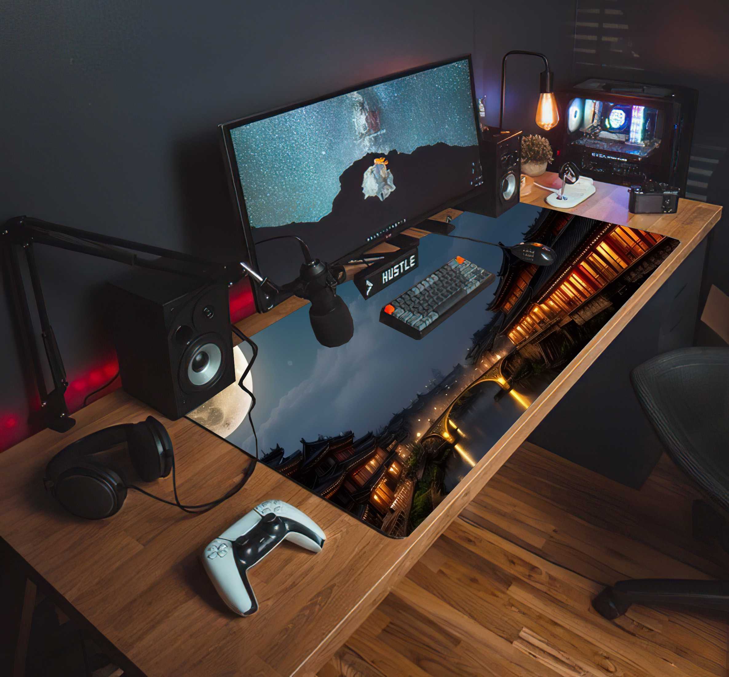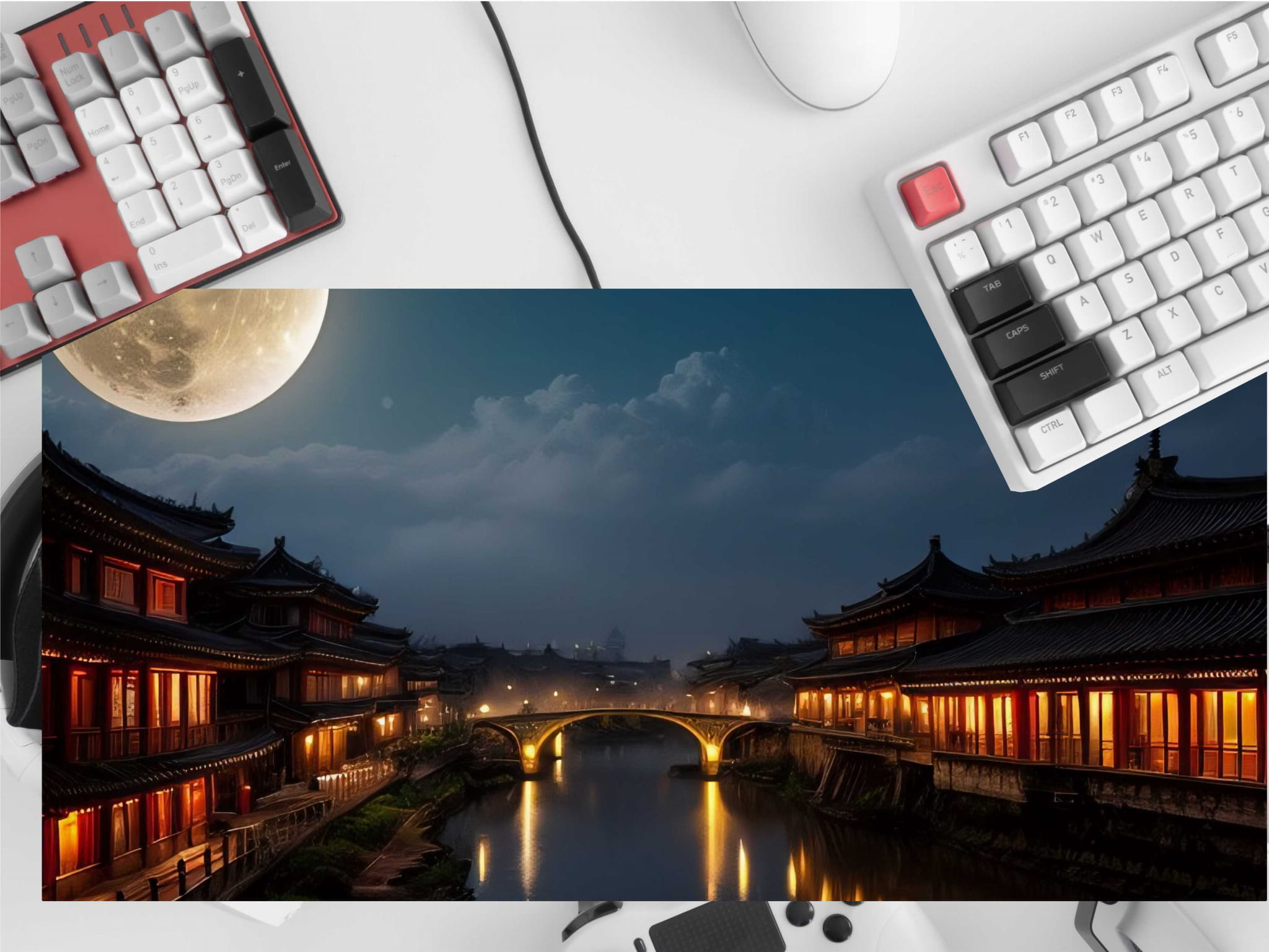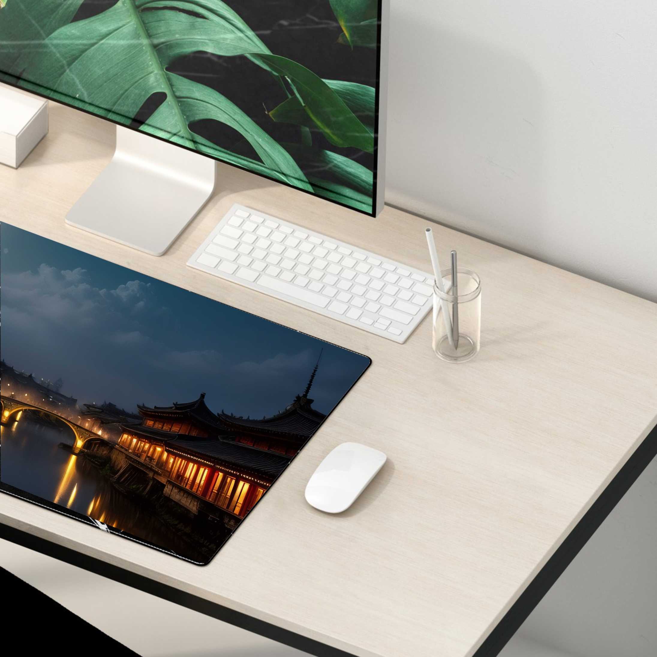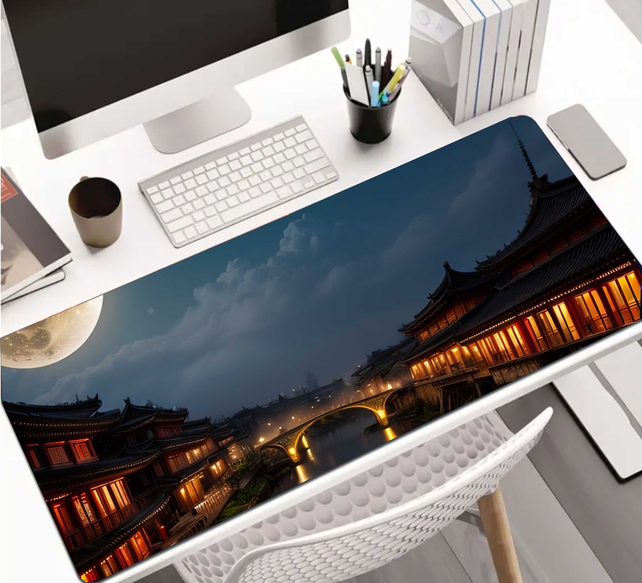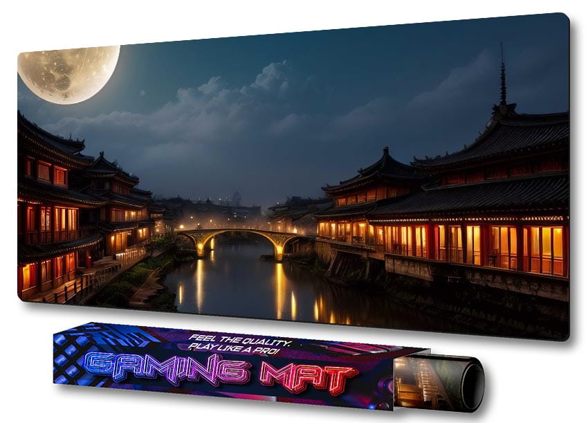 PODKŁADKA NA BIURKO GAMING CHINY NOCĄ ŚWIETLISTY MOST