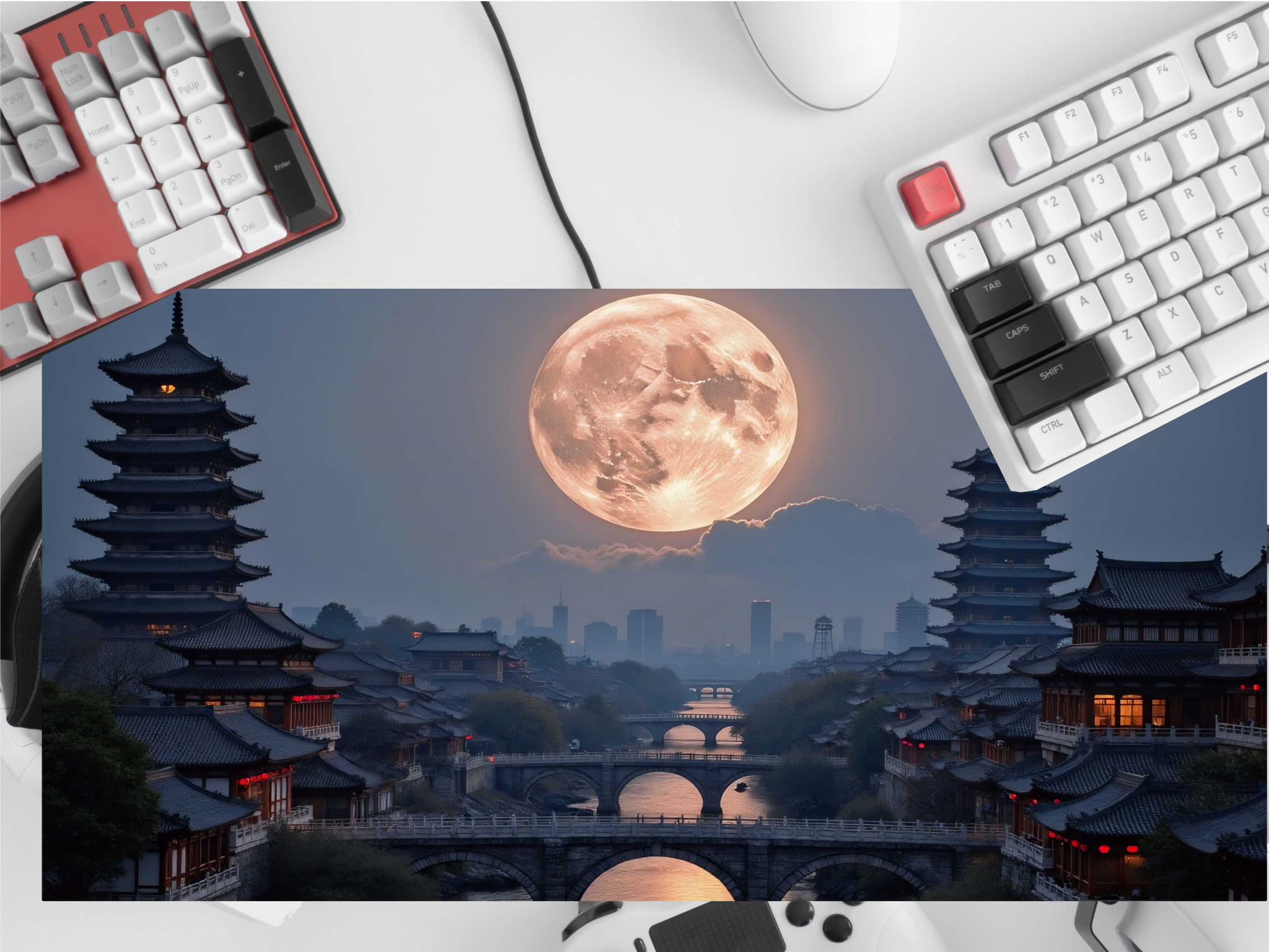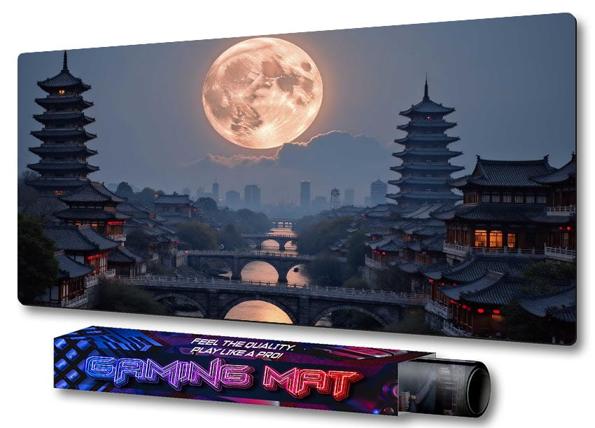 PODKŁADKA NA BIURKO GAMING Chińska Pagoda Pełnia Księżyca