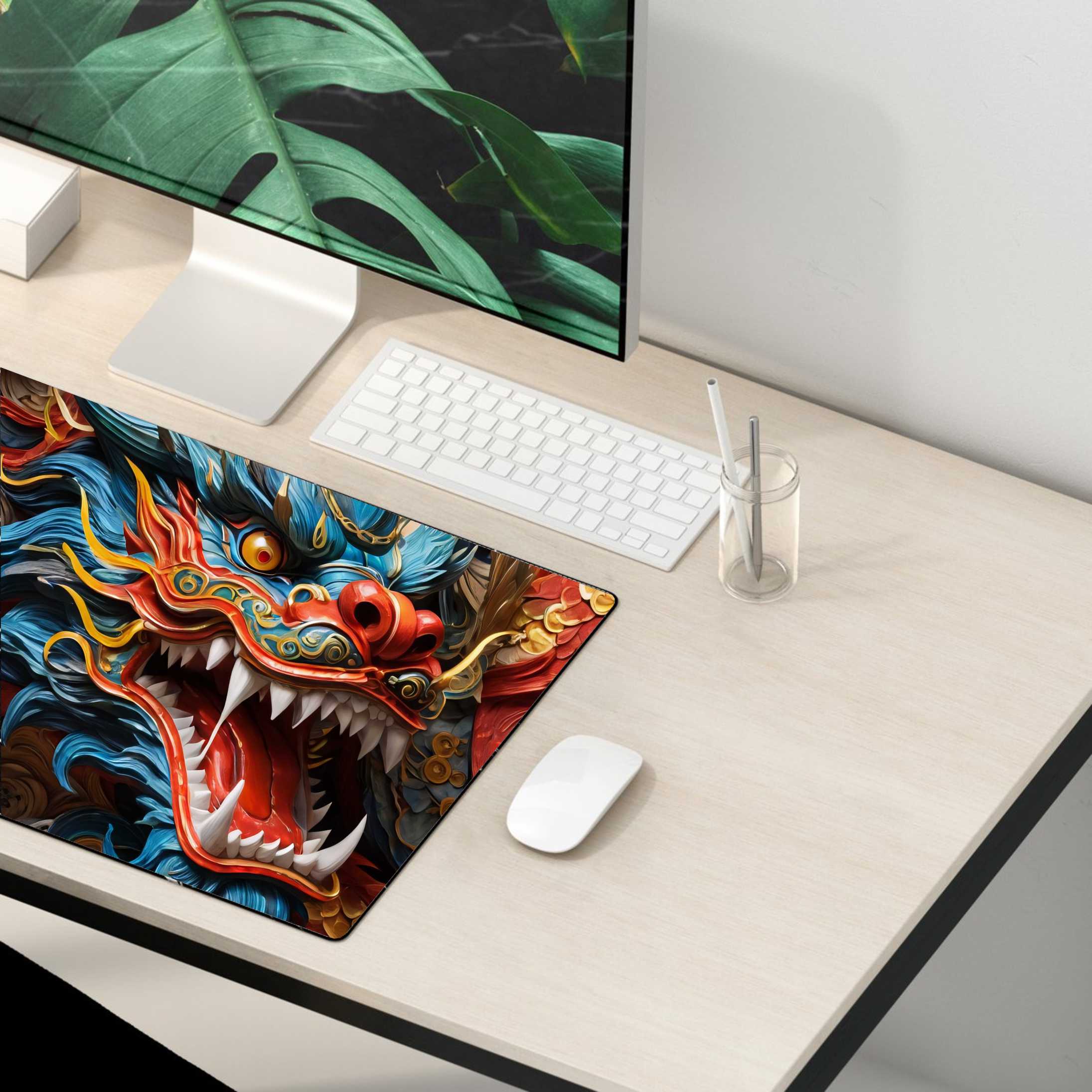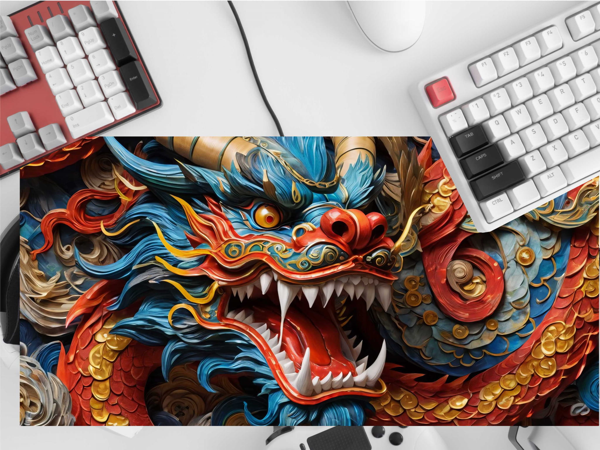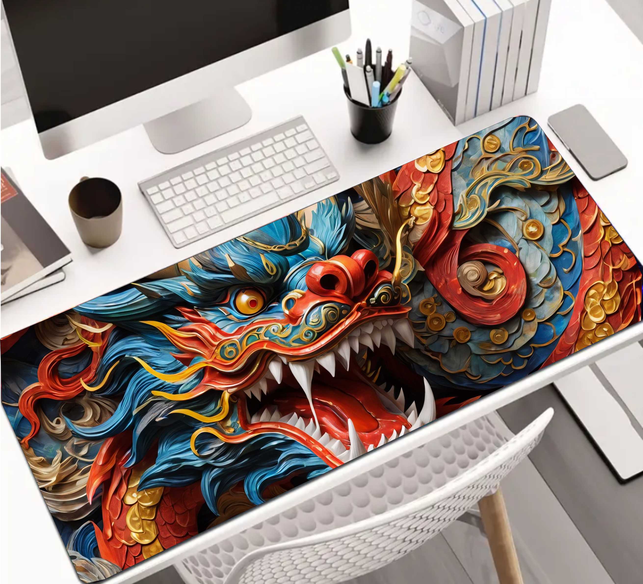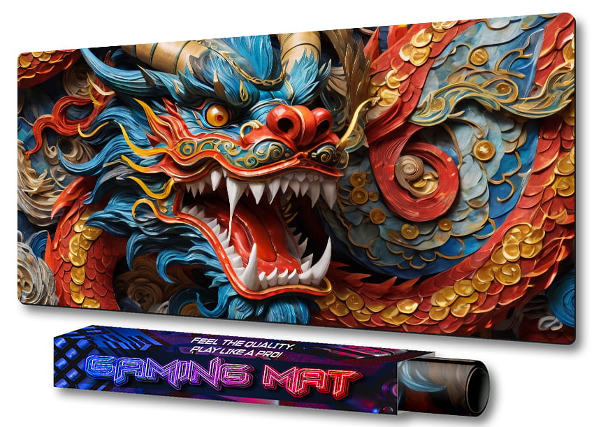 PODKŁADKA NA BIURKO GAMING Chiński Znak Zodiaku Niebieśko Złoty Smok