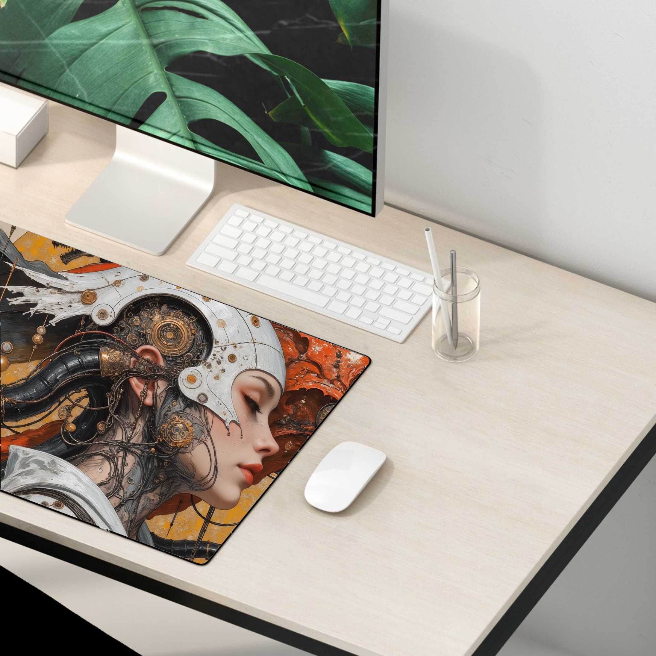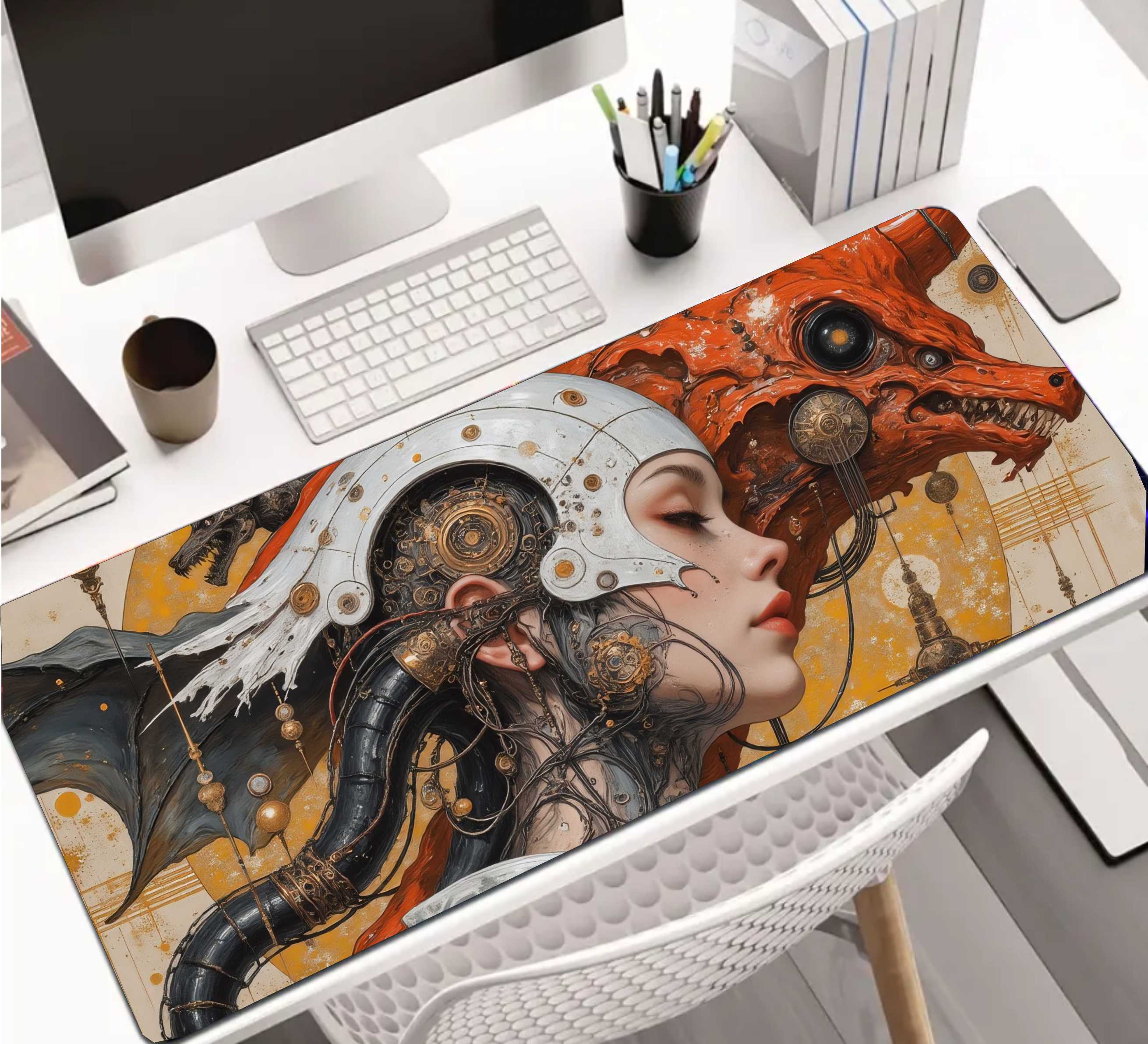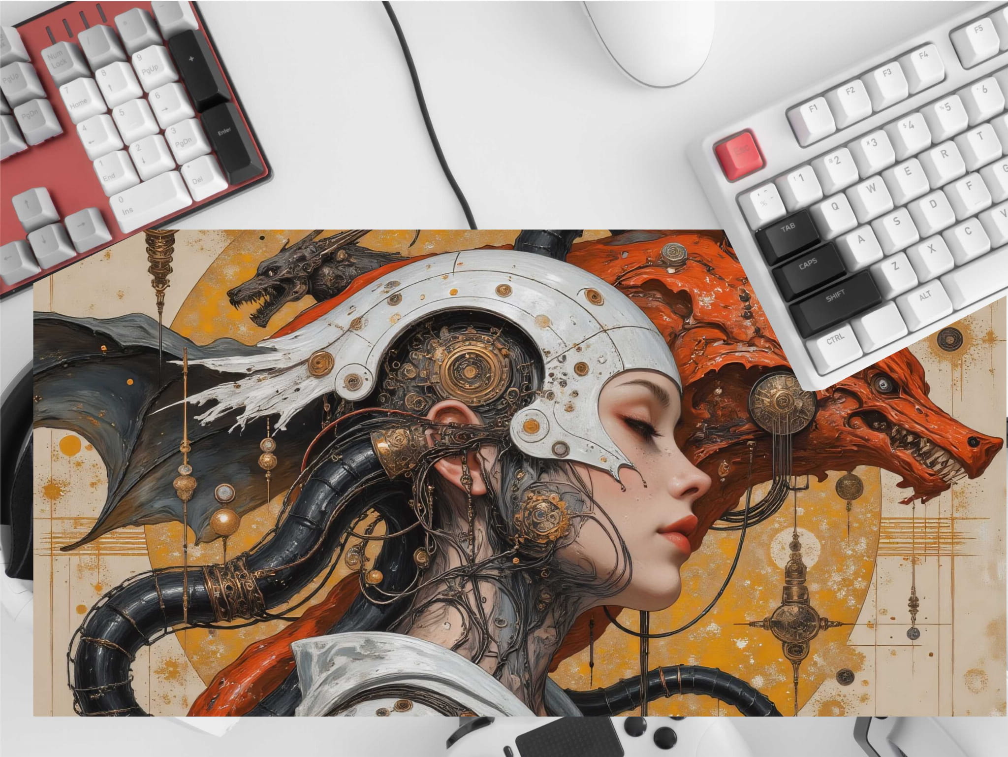 PODKŁADKA NA BIURKO GAMING Dostojna Biała Dama Z Lisowatą Bestią