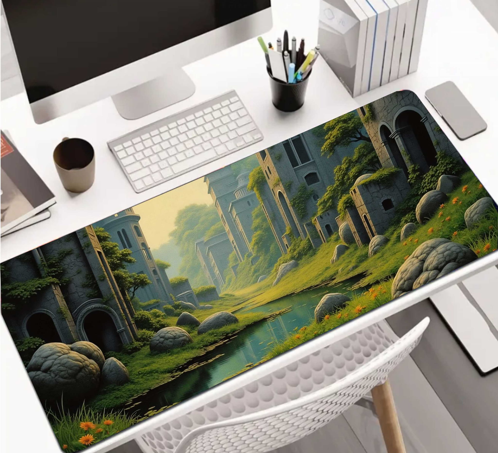 PODKŁADKA NA BIURKO GAMING Fantasy Medieval Ruins With Rocks