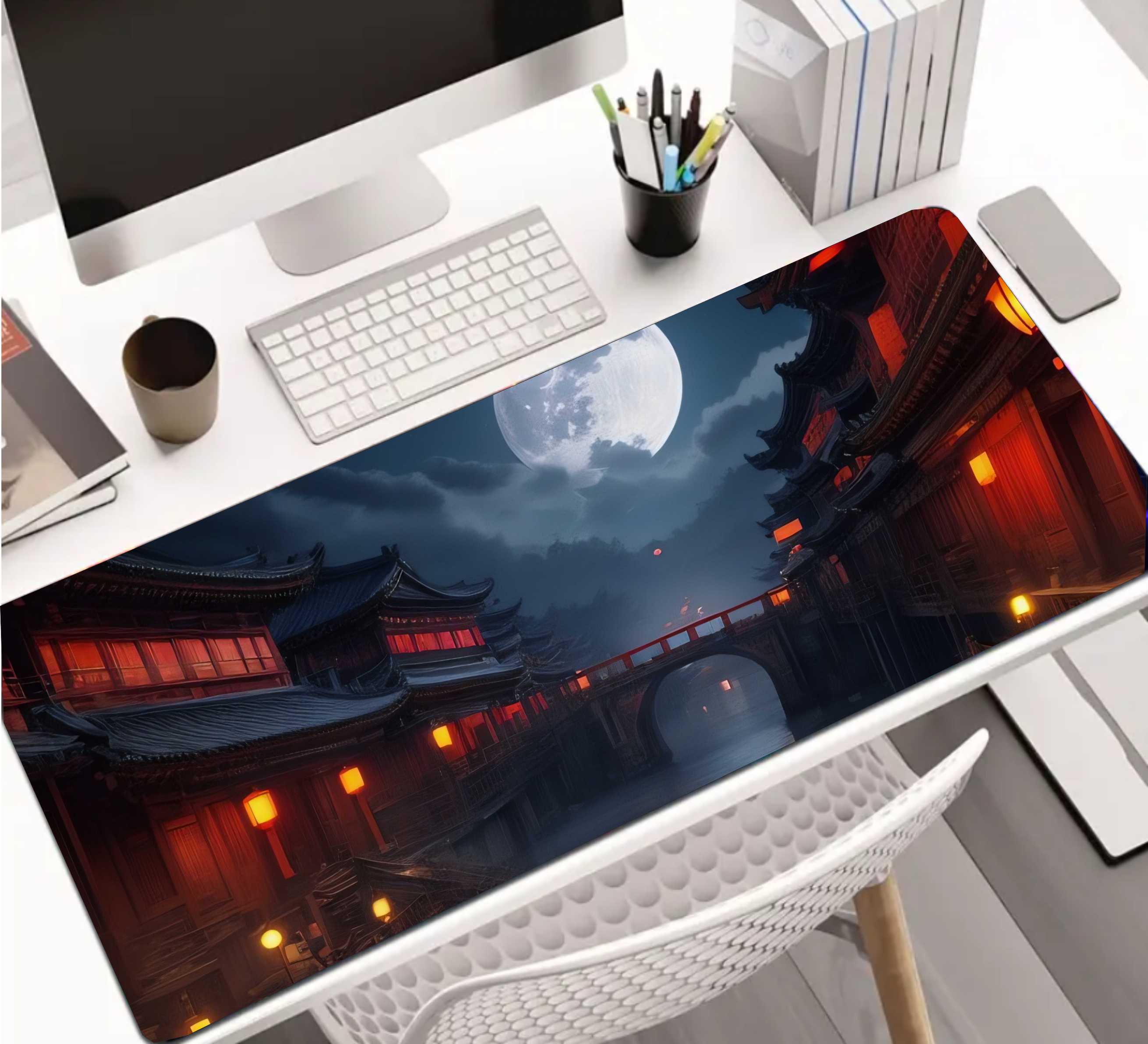 PODKŁADKA NA BIURKO GAMING SPACER CHIŃSKIM MIASTECZKIEM NOCĄ
