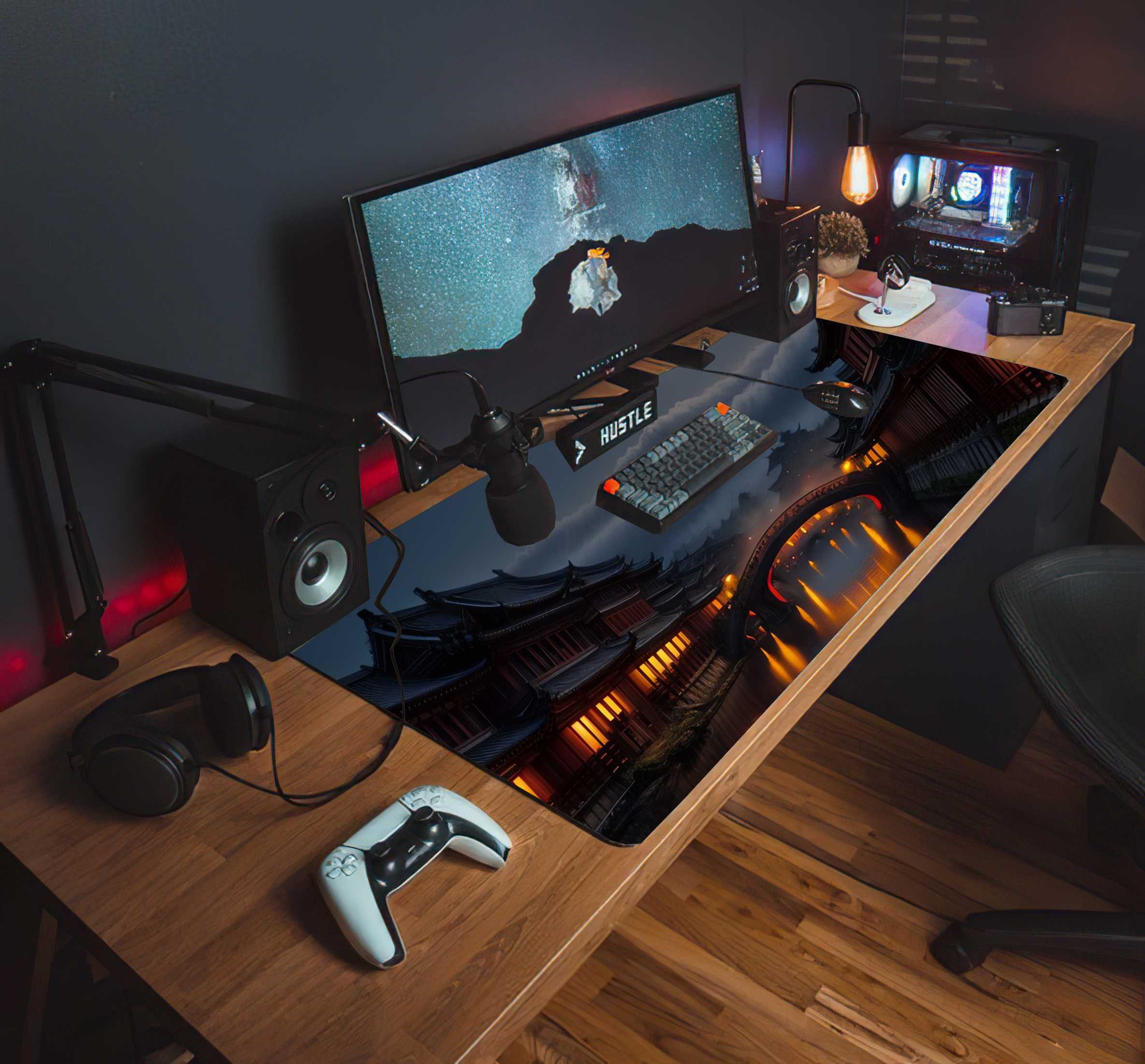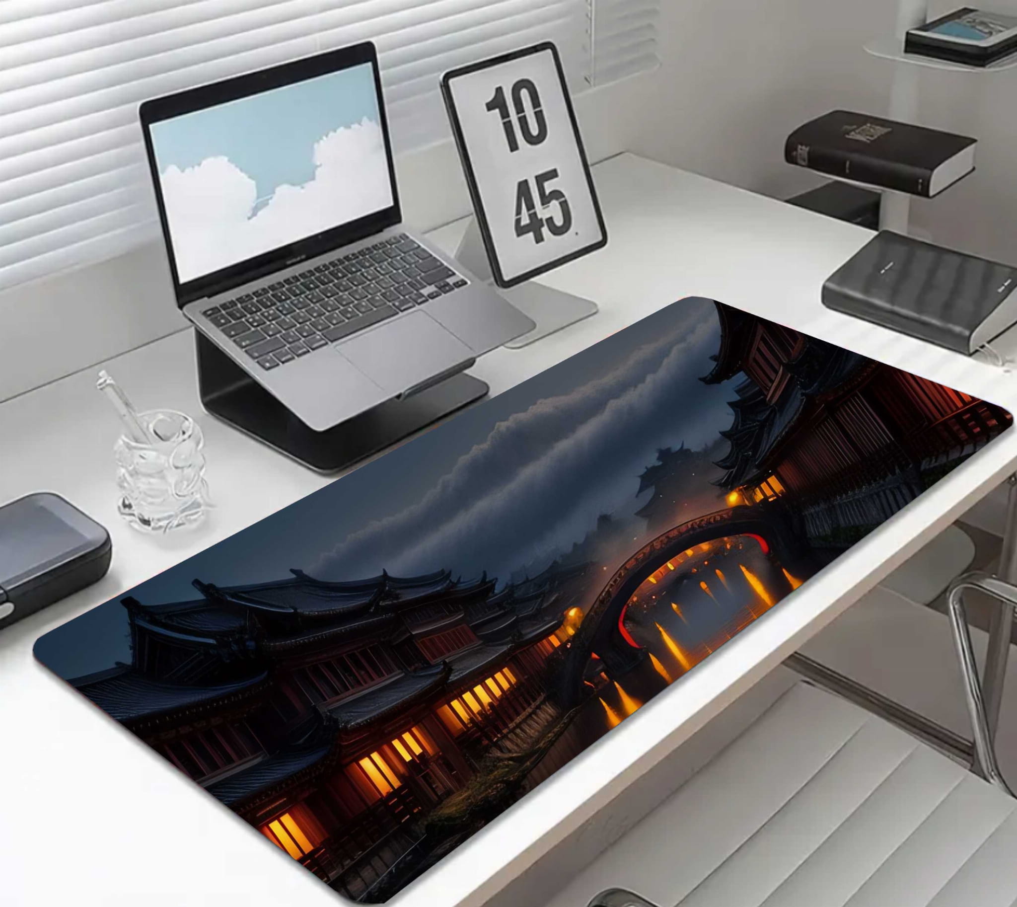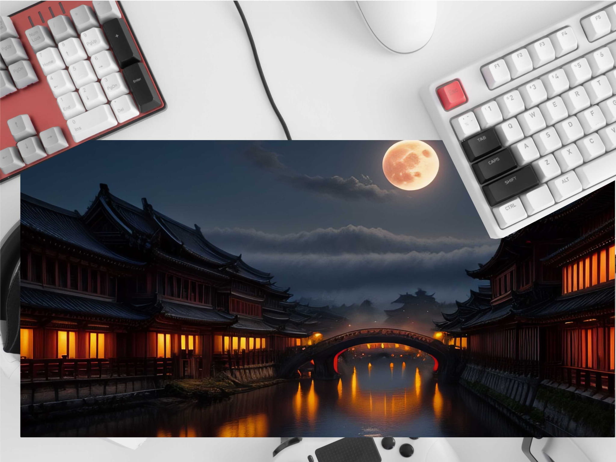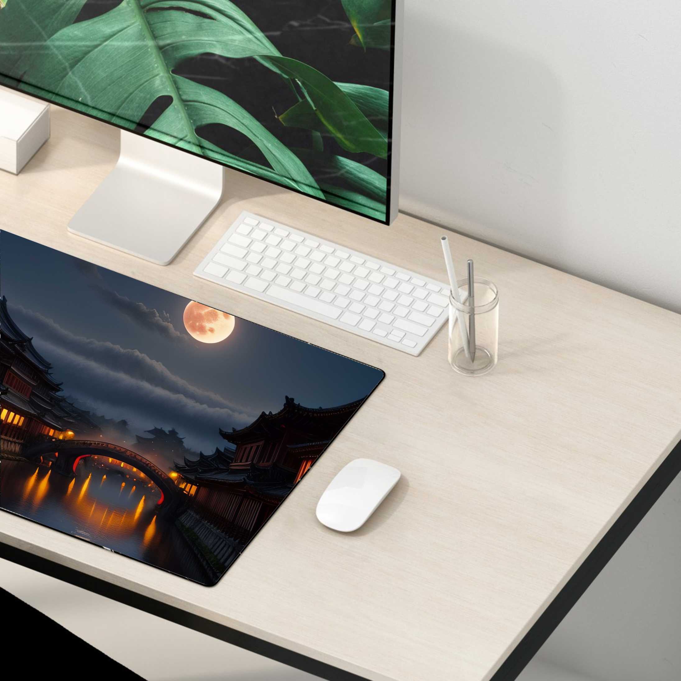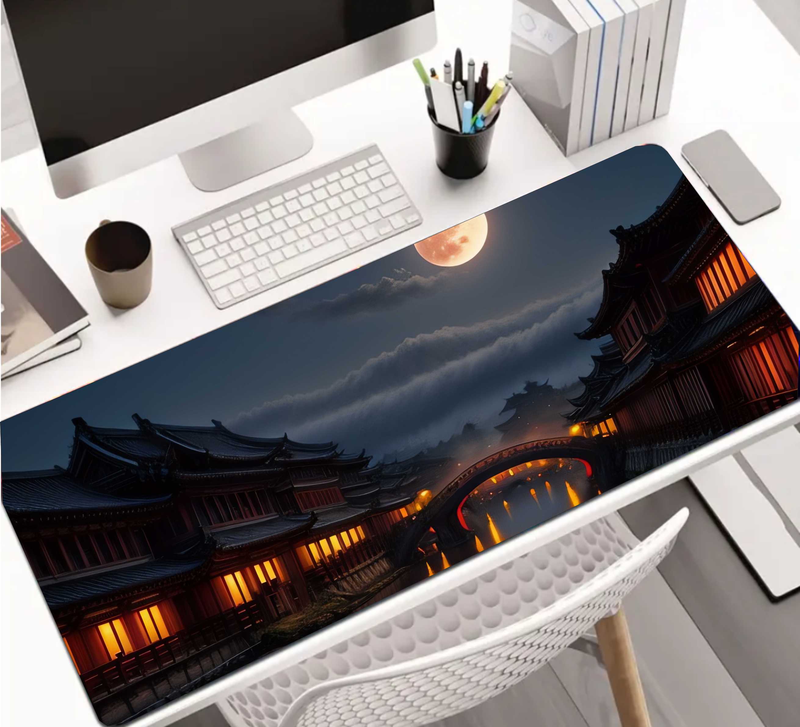 PODKŁADKA NA BIURKO GAMING ŚWIETLISTE DOMKI PEŁNIA KSIĘŻYCA