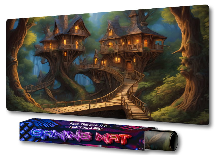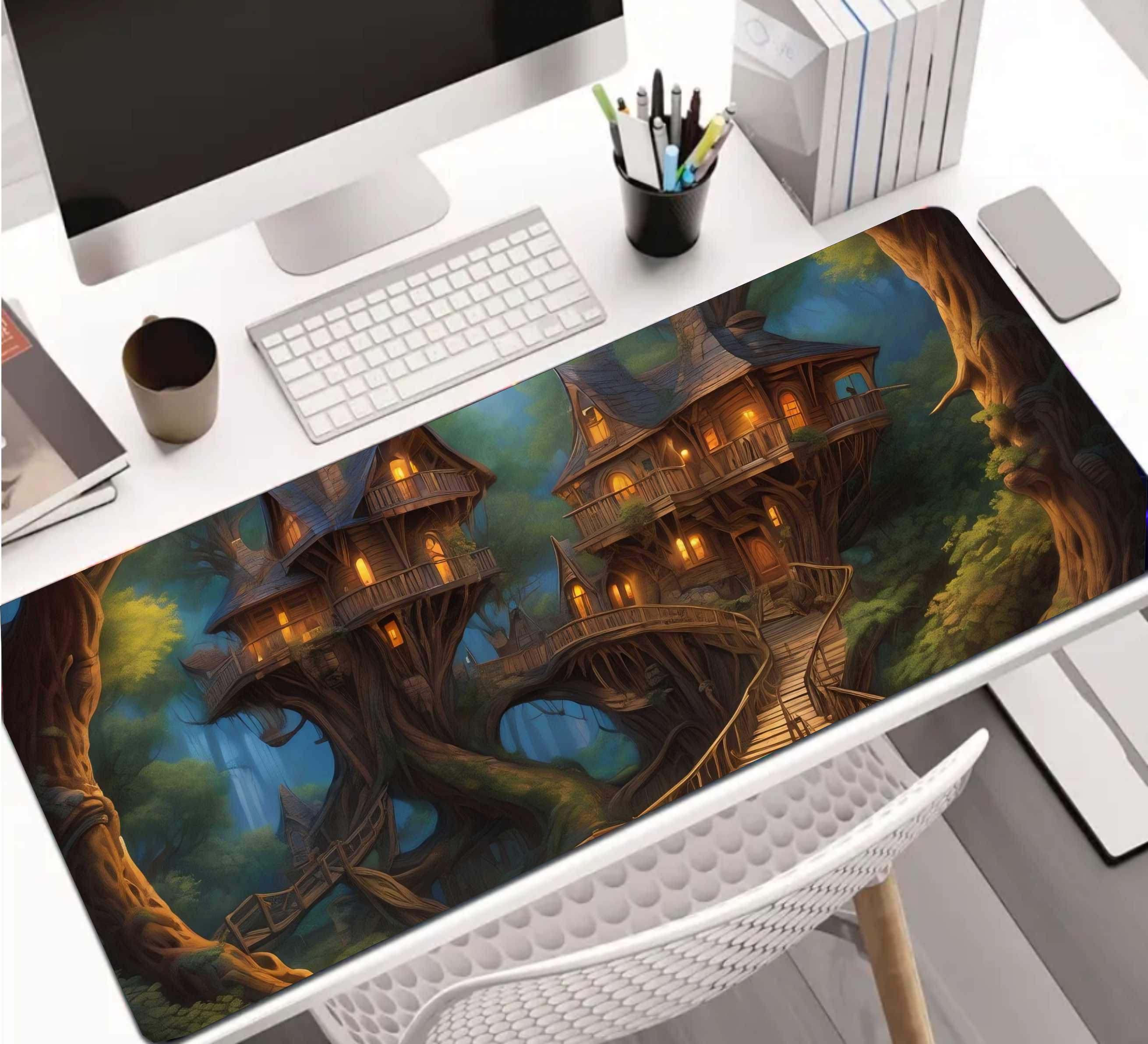 PODKŁADKA NA BIURKO GAMING Świetliste Domy Na Drzewie Village