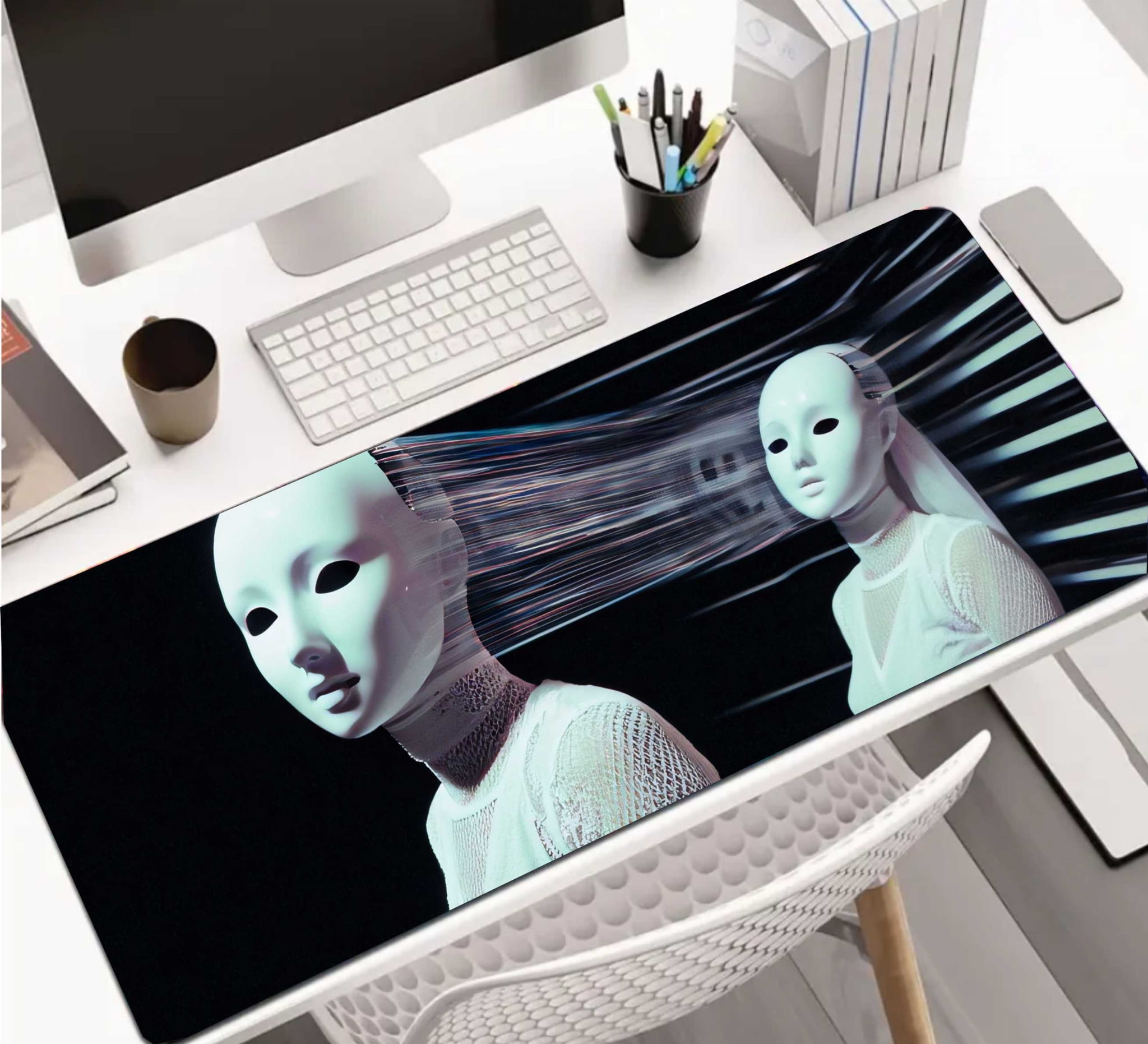 PODKŁADKA NA BIURKO GAMING White Wirless Connected Robots
