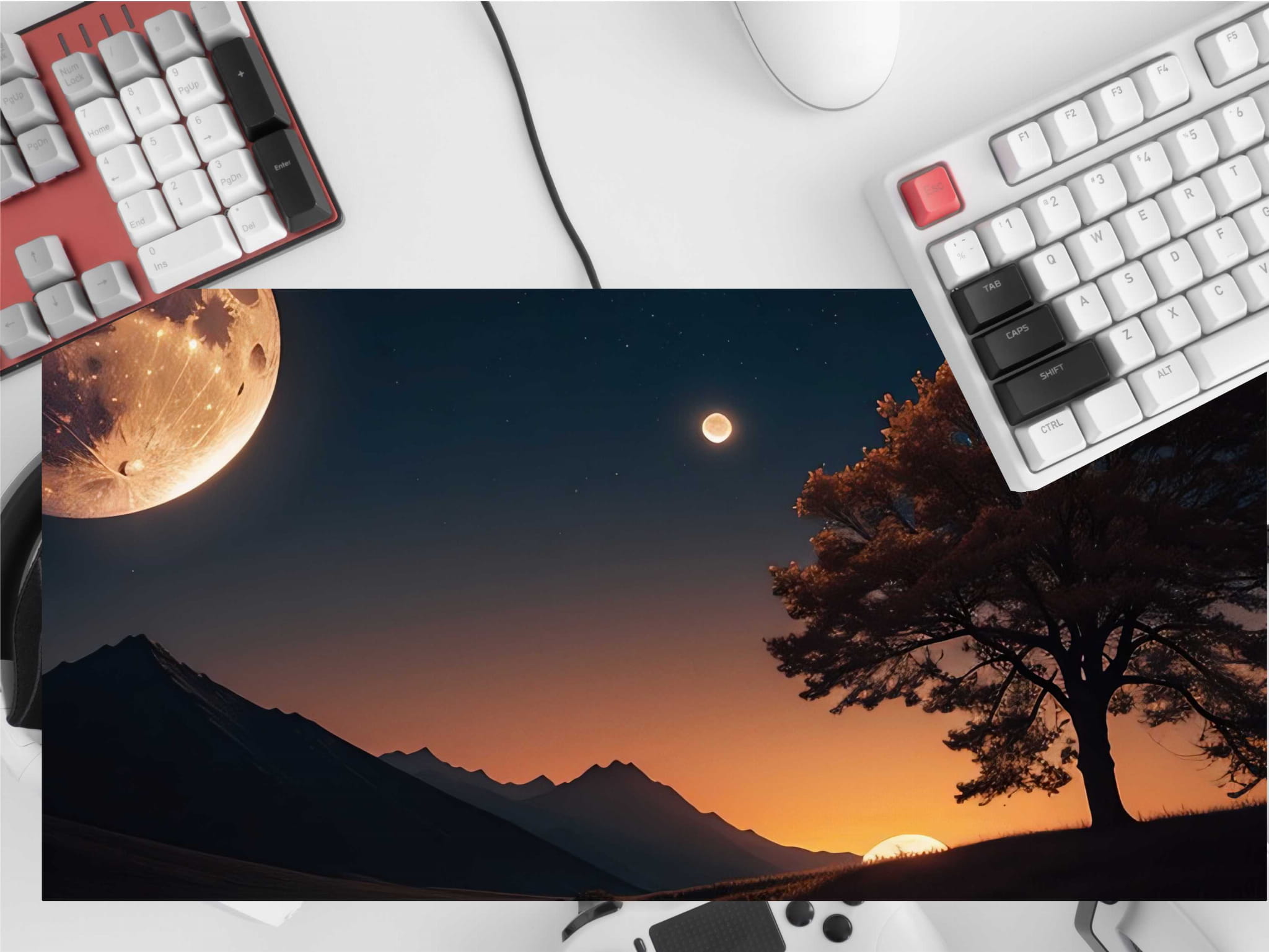 PODKŁADKA NA BIURKO GAMING Wschód Trzech Księżyców Nad Łąką