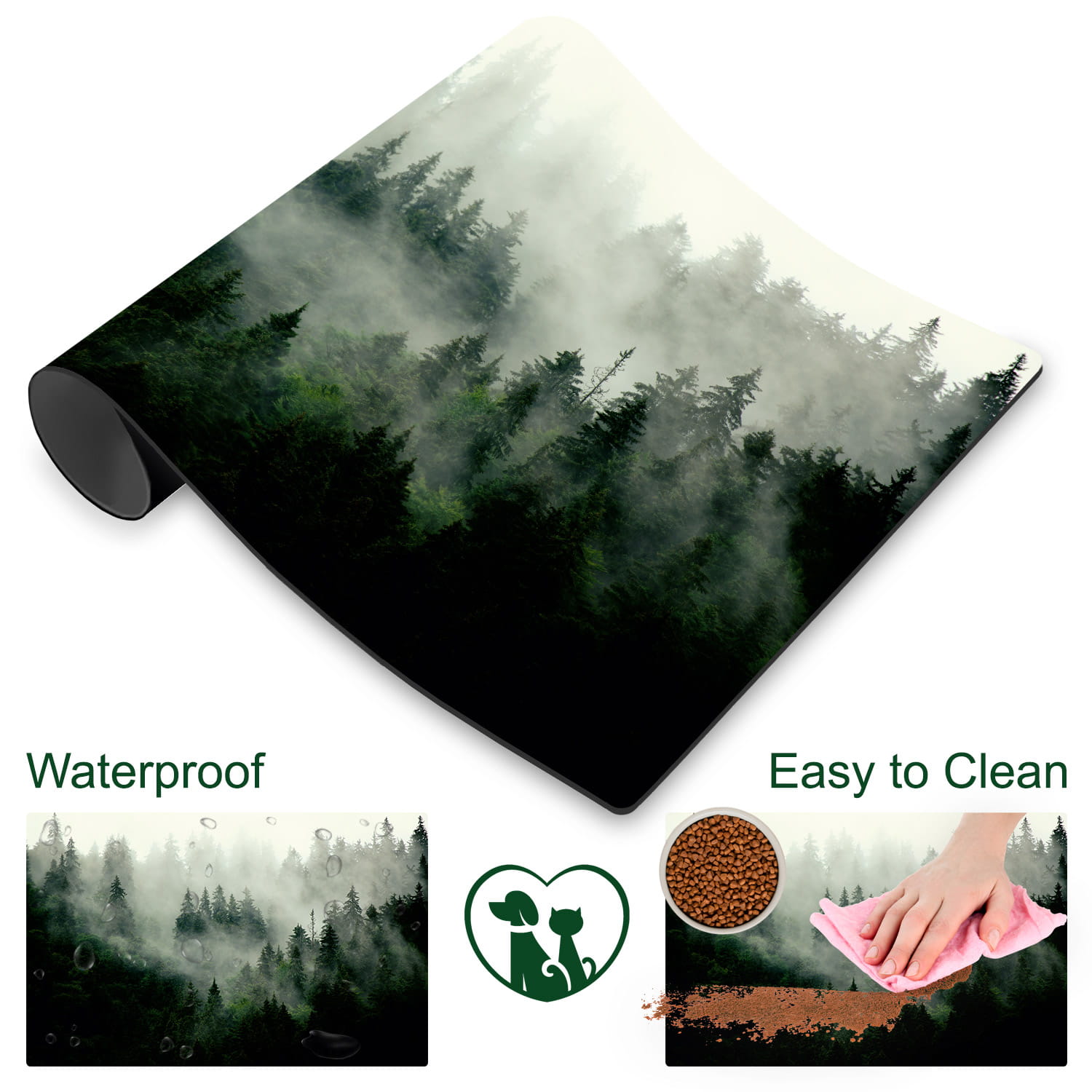 PODKŁADKA OCHRONNA pod miskę legowisko dla psa kota DRZEWA LAS MGŁA