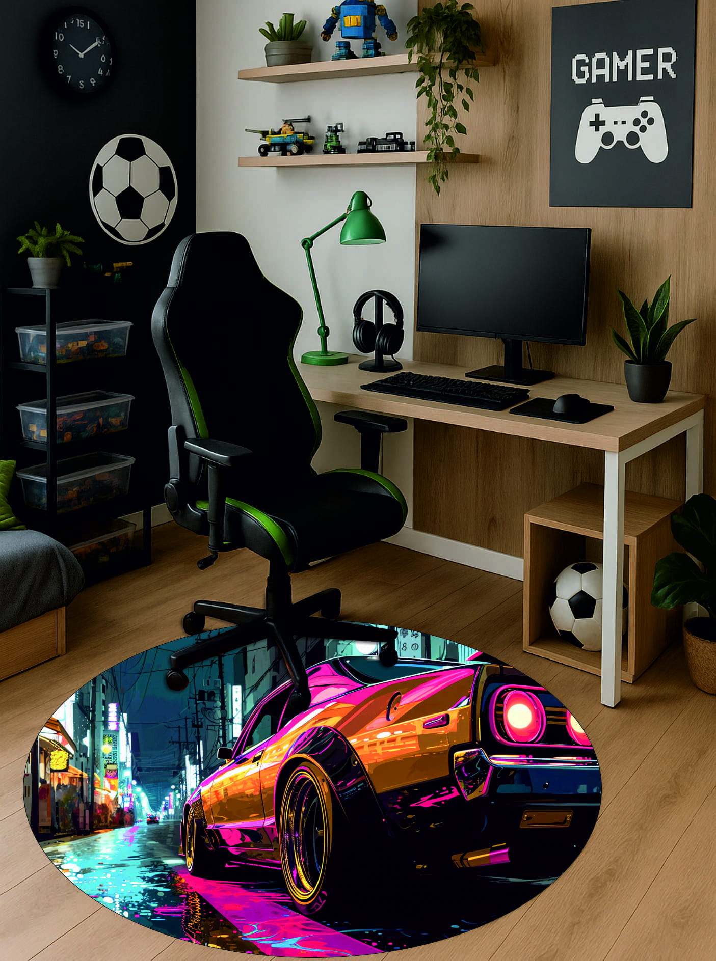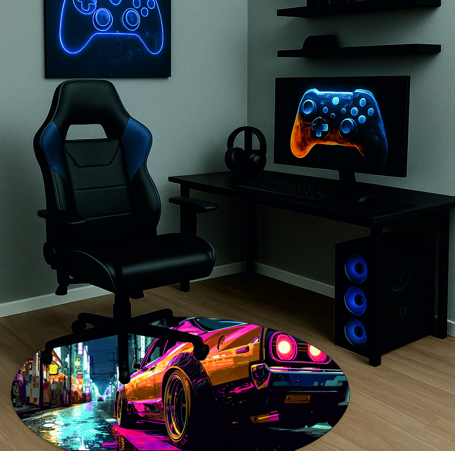 PODKŁADKA POD FOTEL OCHRONNA OKRĄGŁA ŻÓŁTY SAMOCHÓD ULICE JAPONII