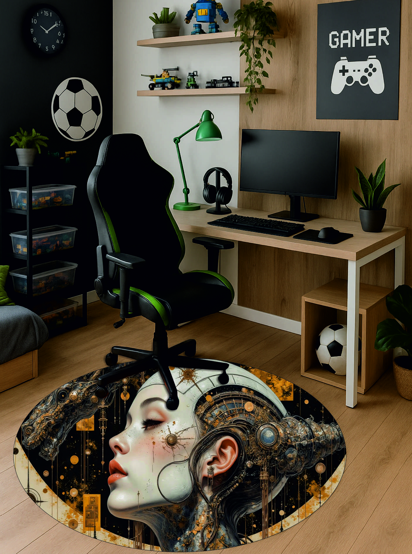 PODKŁADKA POD FOTEL OKRĄGŁA DAMA W CZERNI MROCZNY SMOK