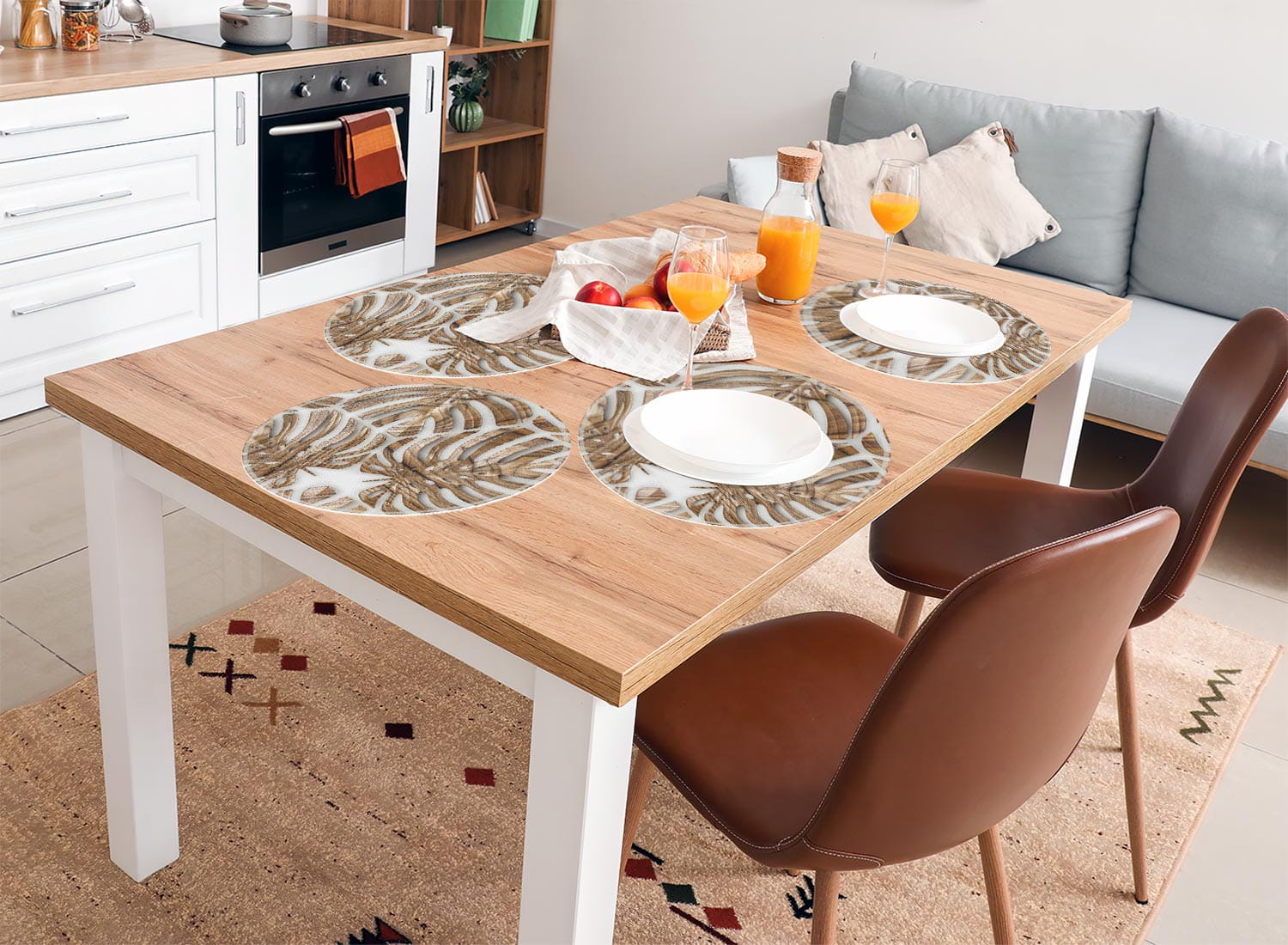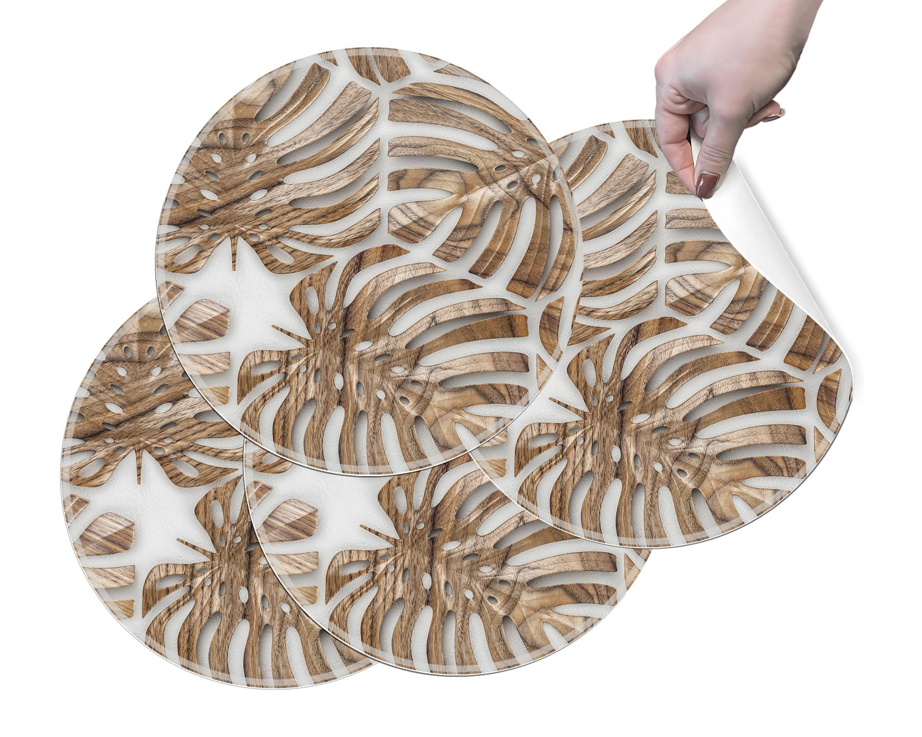 PODKŁADKI OCHRONNE MATY POD TALERZE na stół NOWOCZESNE ZMYWALNE monstera drewno