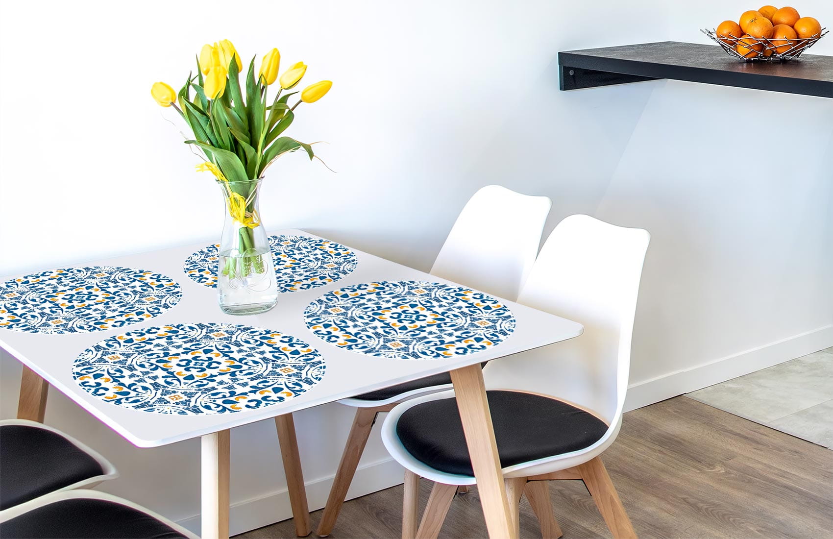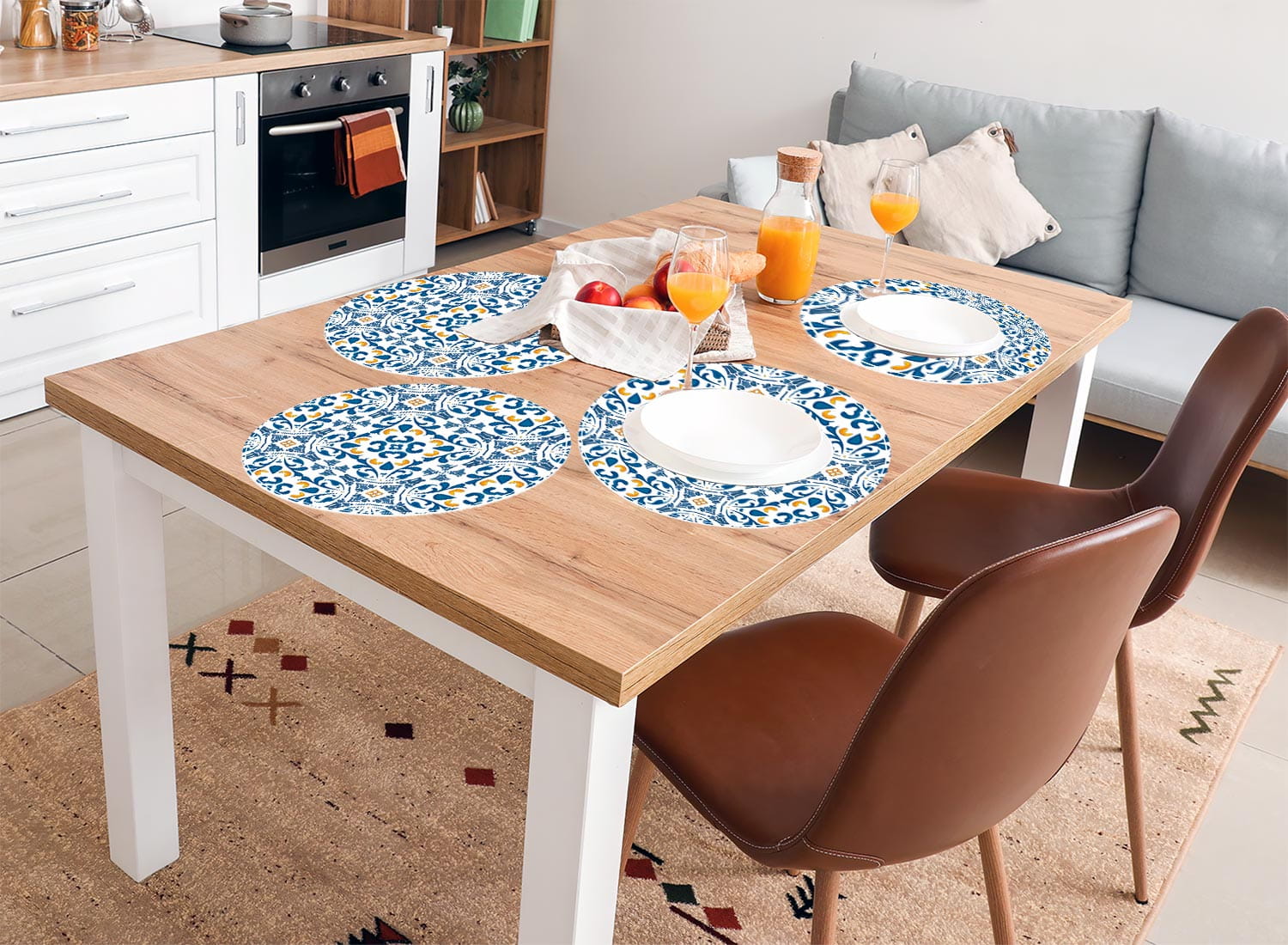 PODKŁADKI OCHRONNE MATY POD TALERZE na stół NOWOCZESNE ZMYWALNE tradycyjne niebieskie kafle