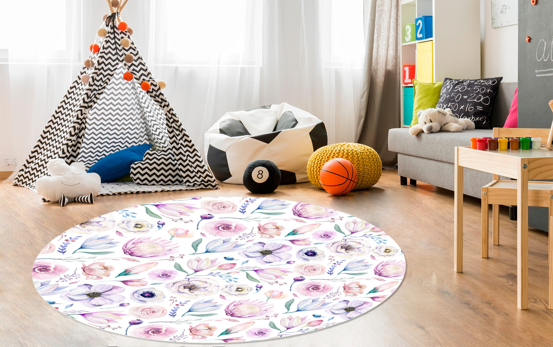 PODŁOGOWA PODKŁADKA POD KRZESŁO FOTEL OKRĄGŁA PASTELOWE KWIATY
