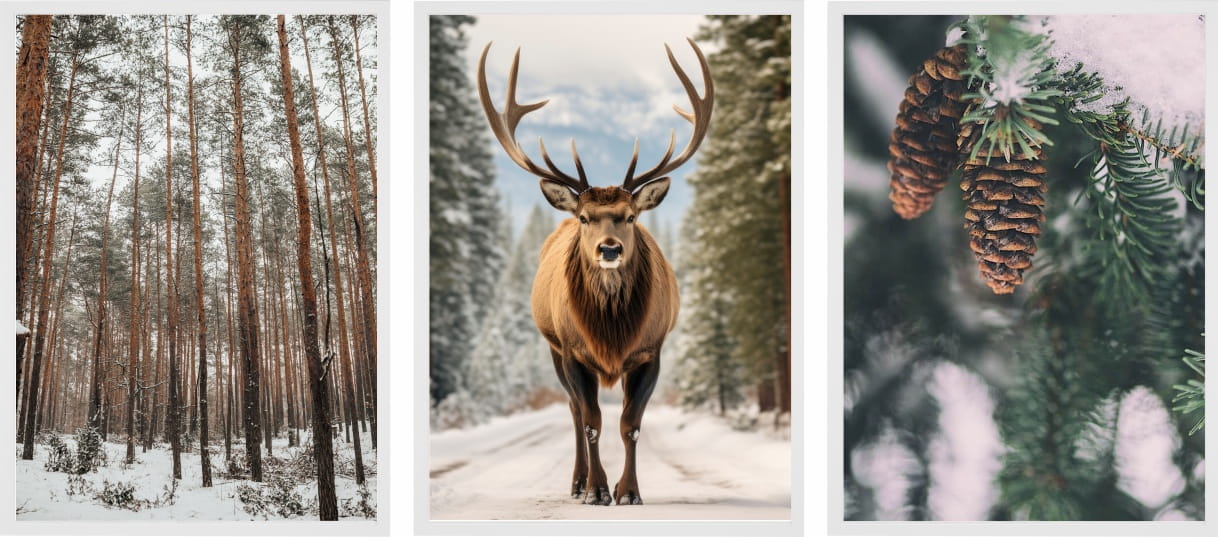 Plakat obrazki ZESTAW PLAKATÓW ŁOŚ ZIMOWY KLIMAT LAS NATURA