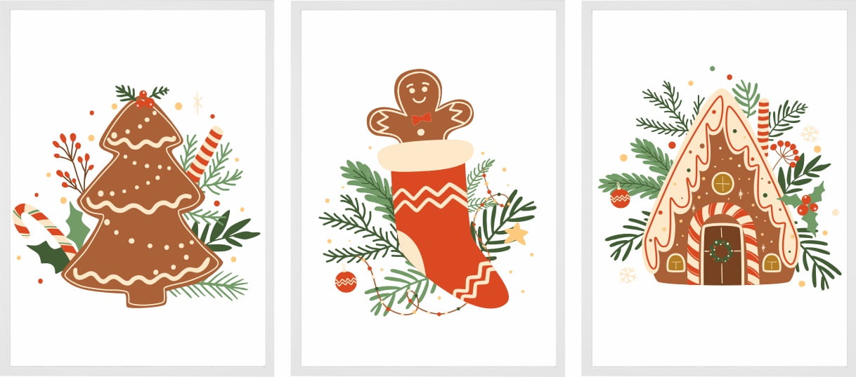 Plakat świąteczny ZESTAW PLAKATÓW Boże Narodzenie PIERNICZKI DOMEK