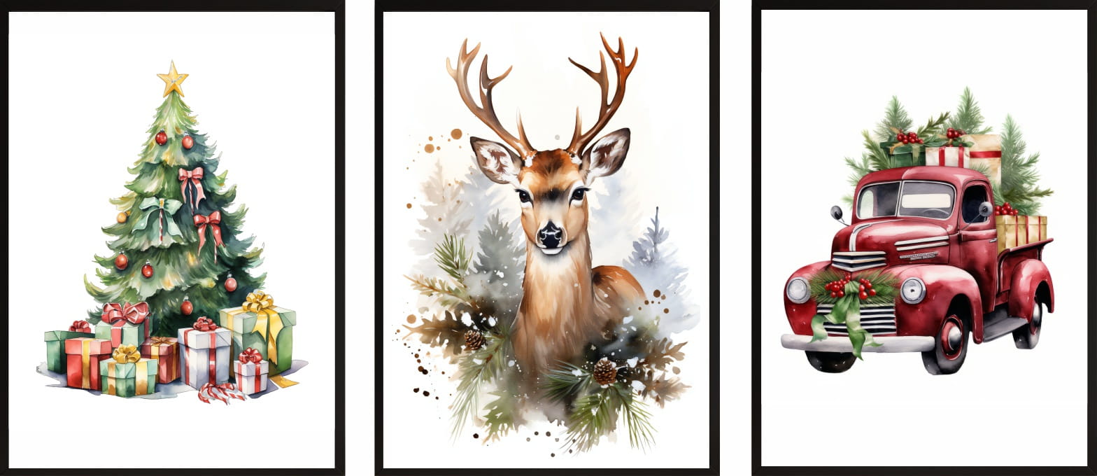 Plakaty świąteczne ZESTAW PLAKATÓW Auto Choinka Renifer