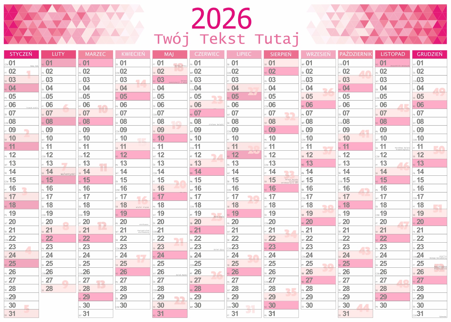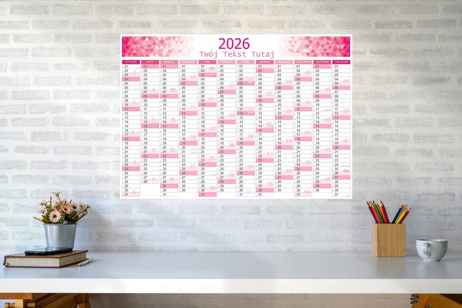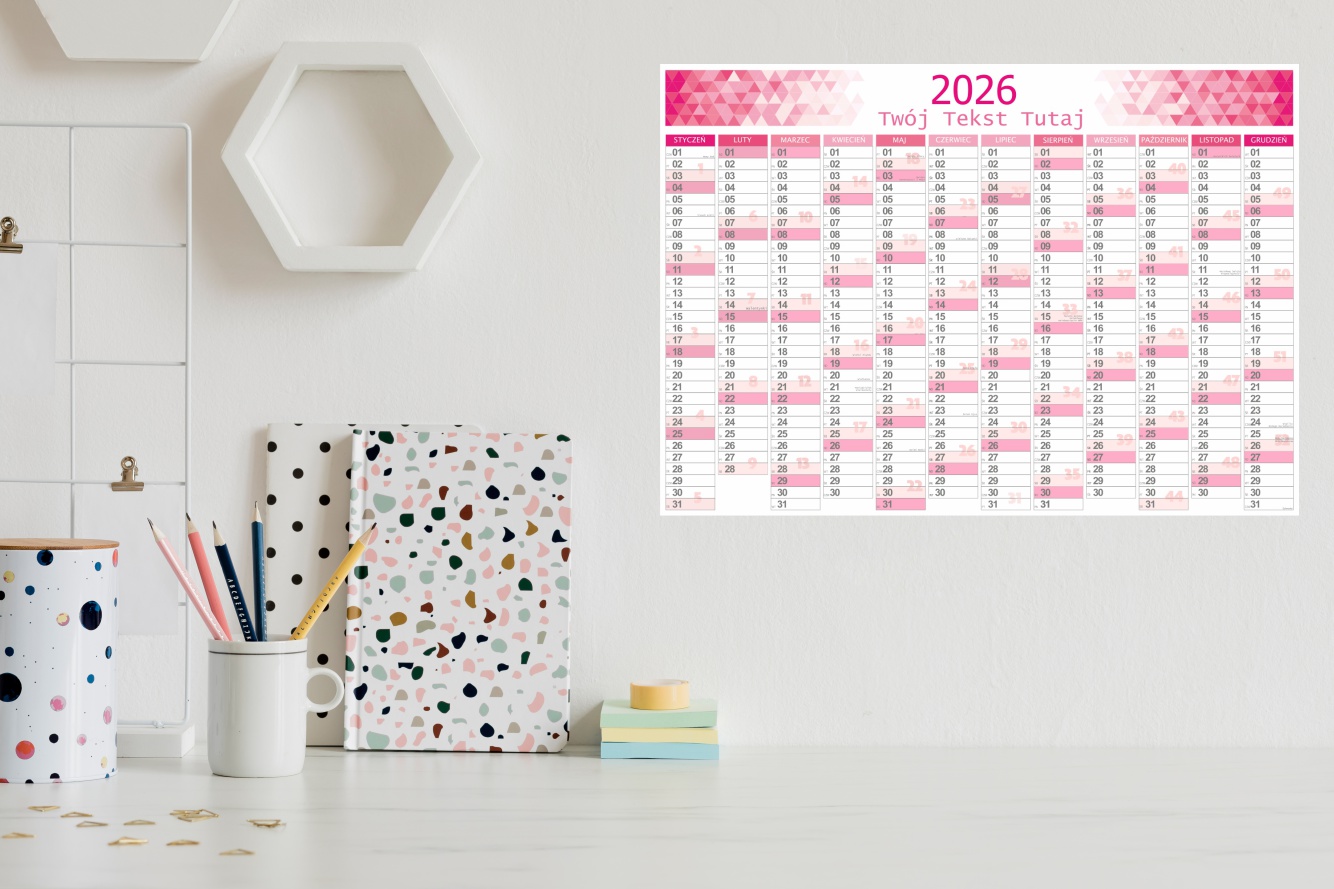Planer kalendarz na 2026 ROK ścienny ścieralny dziennik roczny terminarz PINK