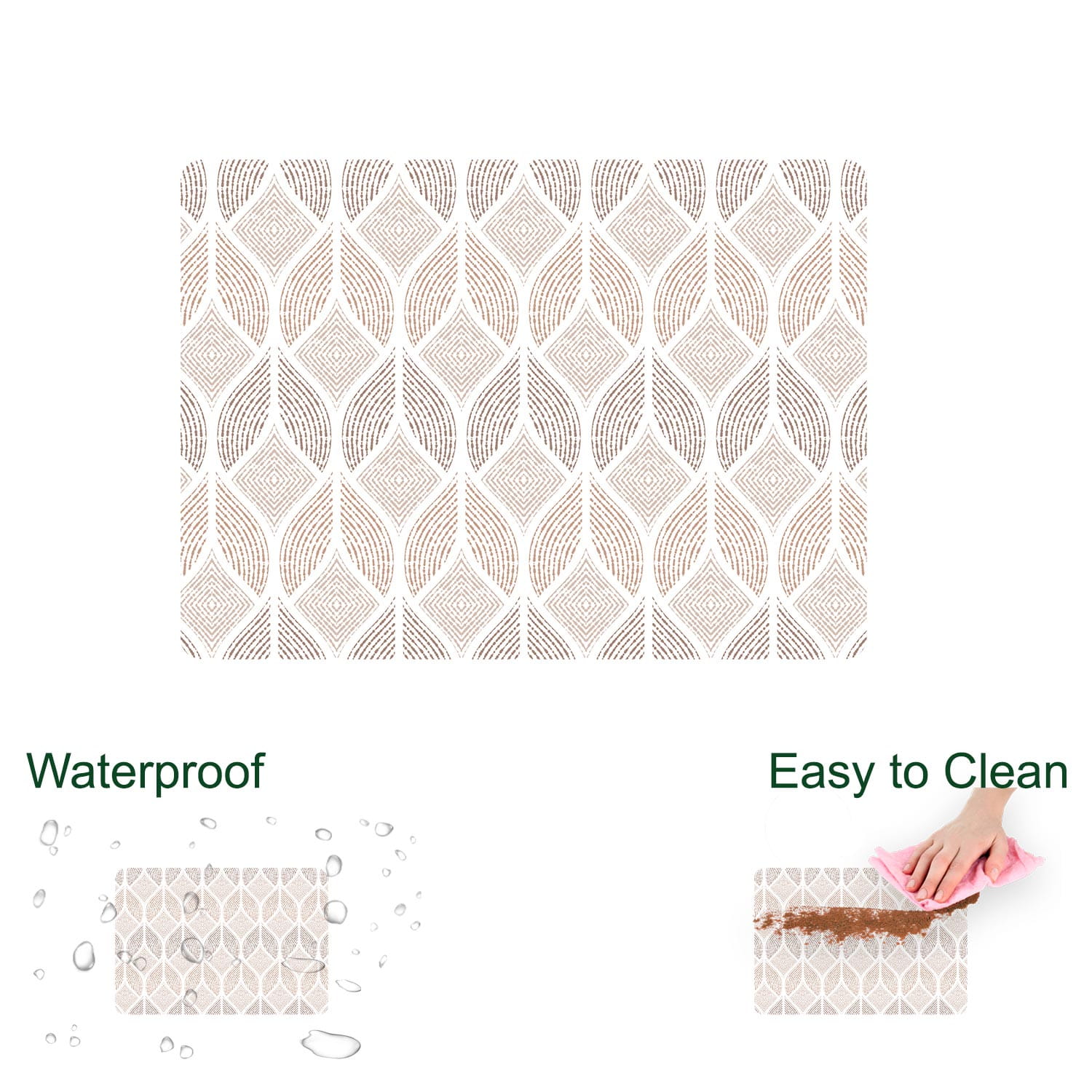 ✅Dekoracyjna duża maty wykonane są z winylu i antypoślizgowej gumy o grubości 1mm, wielkość każdej 44 na 32 cm Powierzchnia jest miękka, nie strzępi się, jest odporna na ciepło, gorącen napoje . Tył antypoślizgowy może mocno chwycić podłoże bez niepożądanego poślizgu, co zapewnia większe bezpieczeństwo. Dzięki temu zapewniają najlepszą ochronę dla Twojego stołu.
