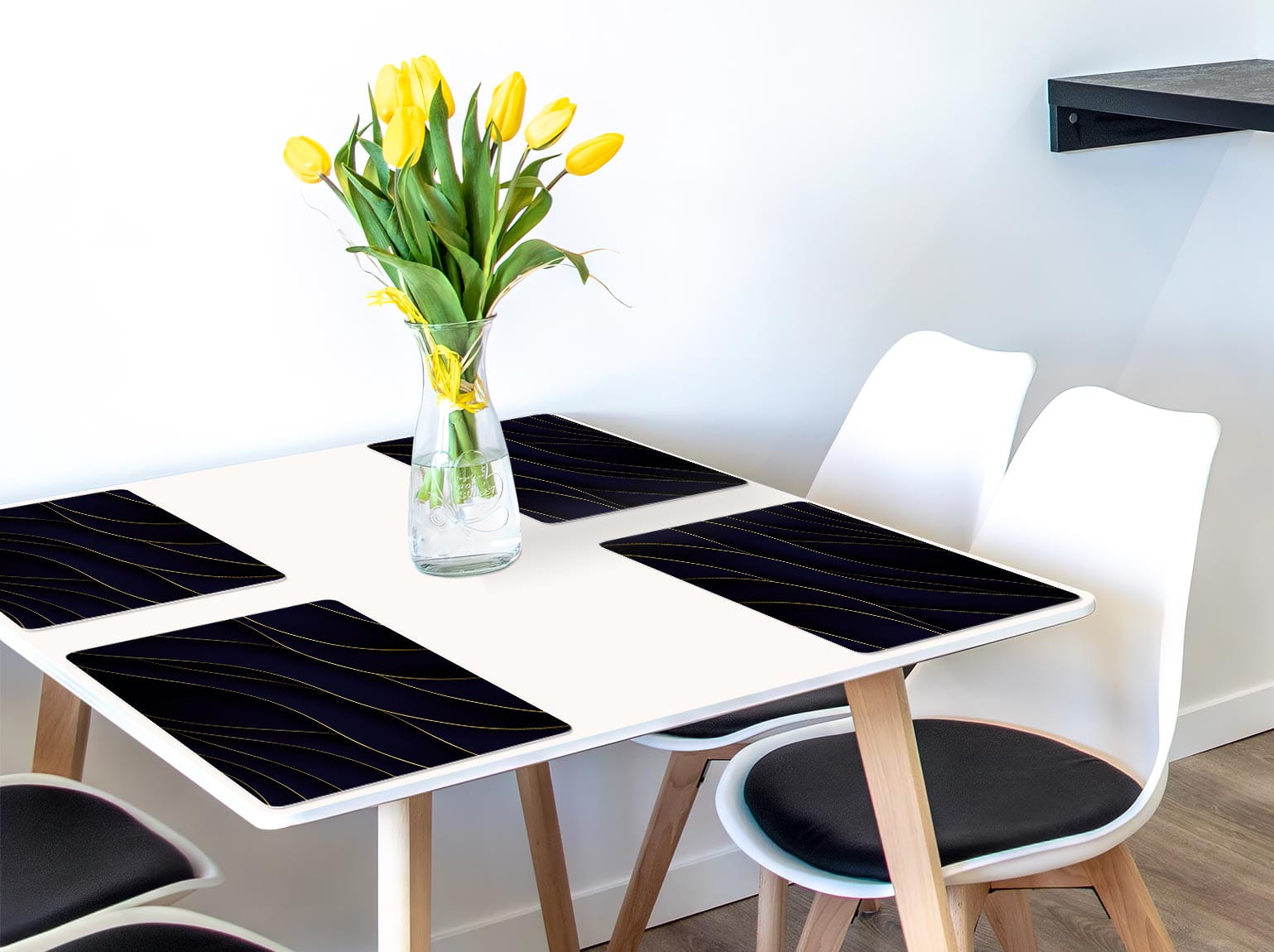 Zestaw 4 trwałych wytrzymałych, zmywalnych, winylowych podkładek na stół z nadrukiem - każda o wymiarze 44cm na 32 cm.