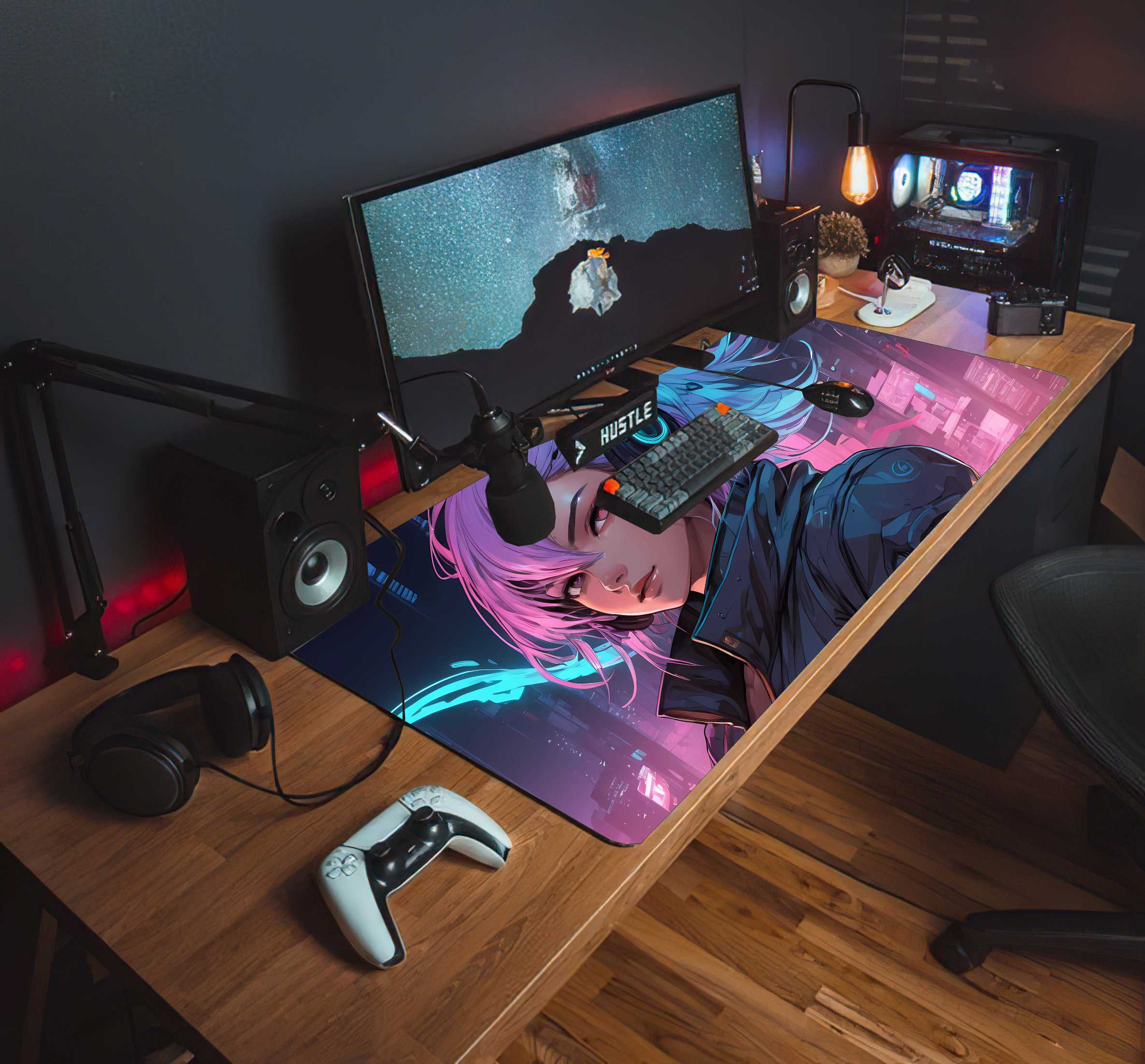 Podkładka Pod Mysz Dla Graczy CYBERPUNK PINK GIRL ANIME