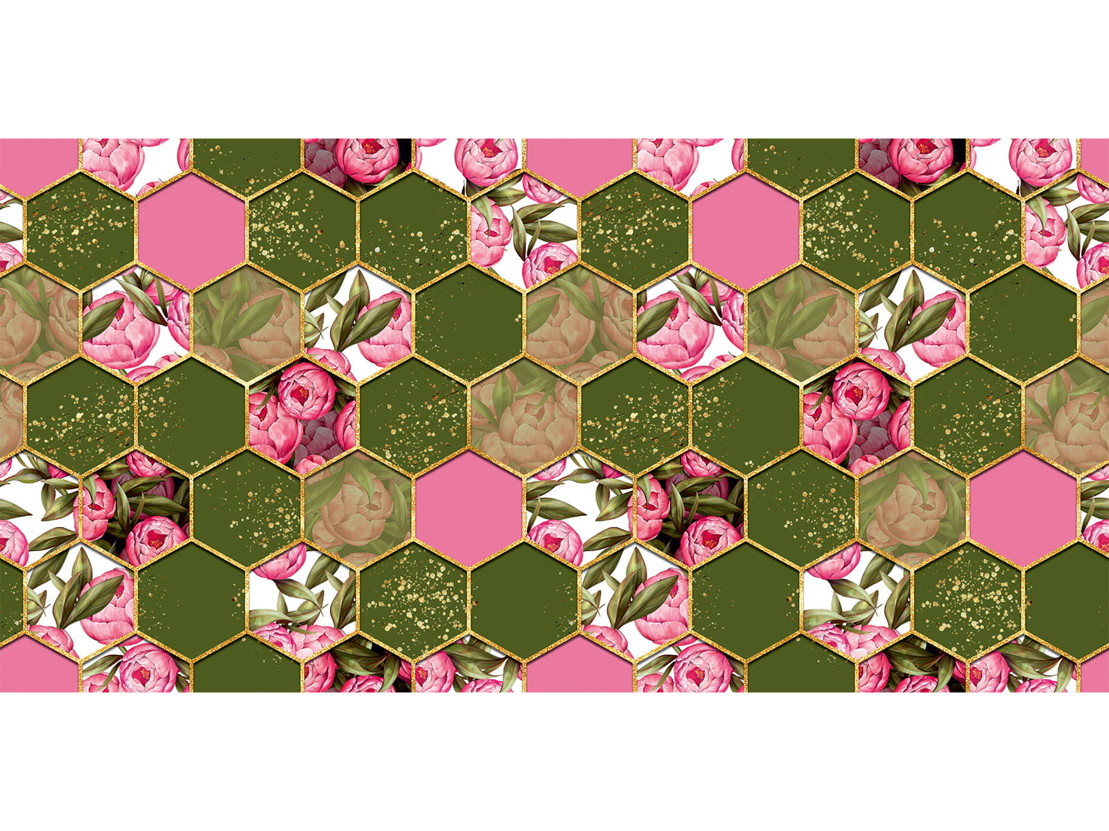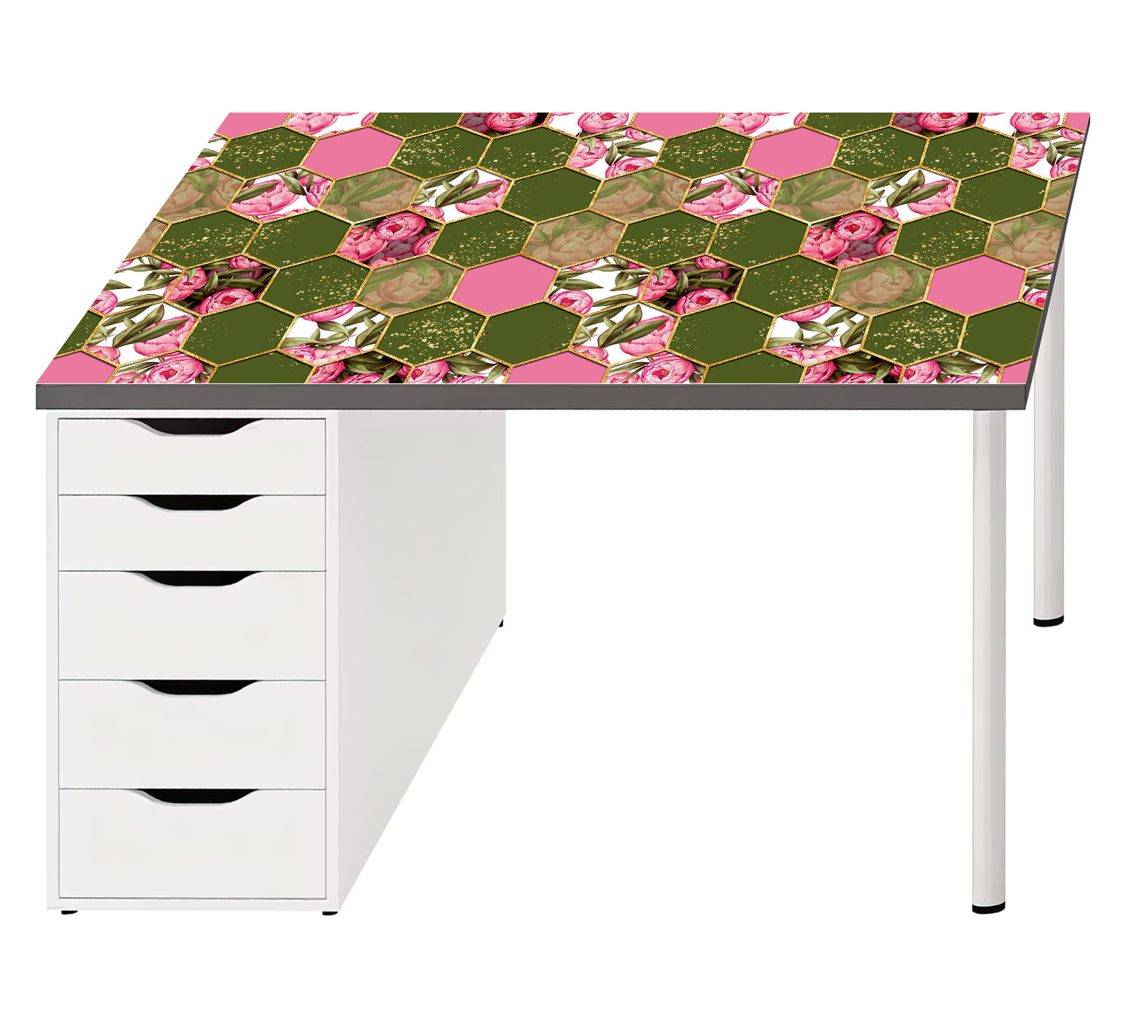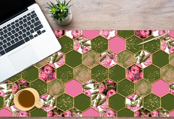 Podkładka antypoślizgowa ochronna na biurko różowe heksagony złoto