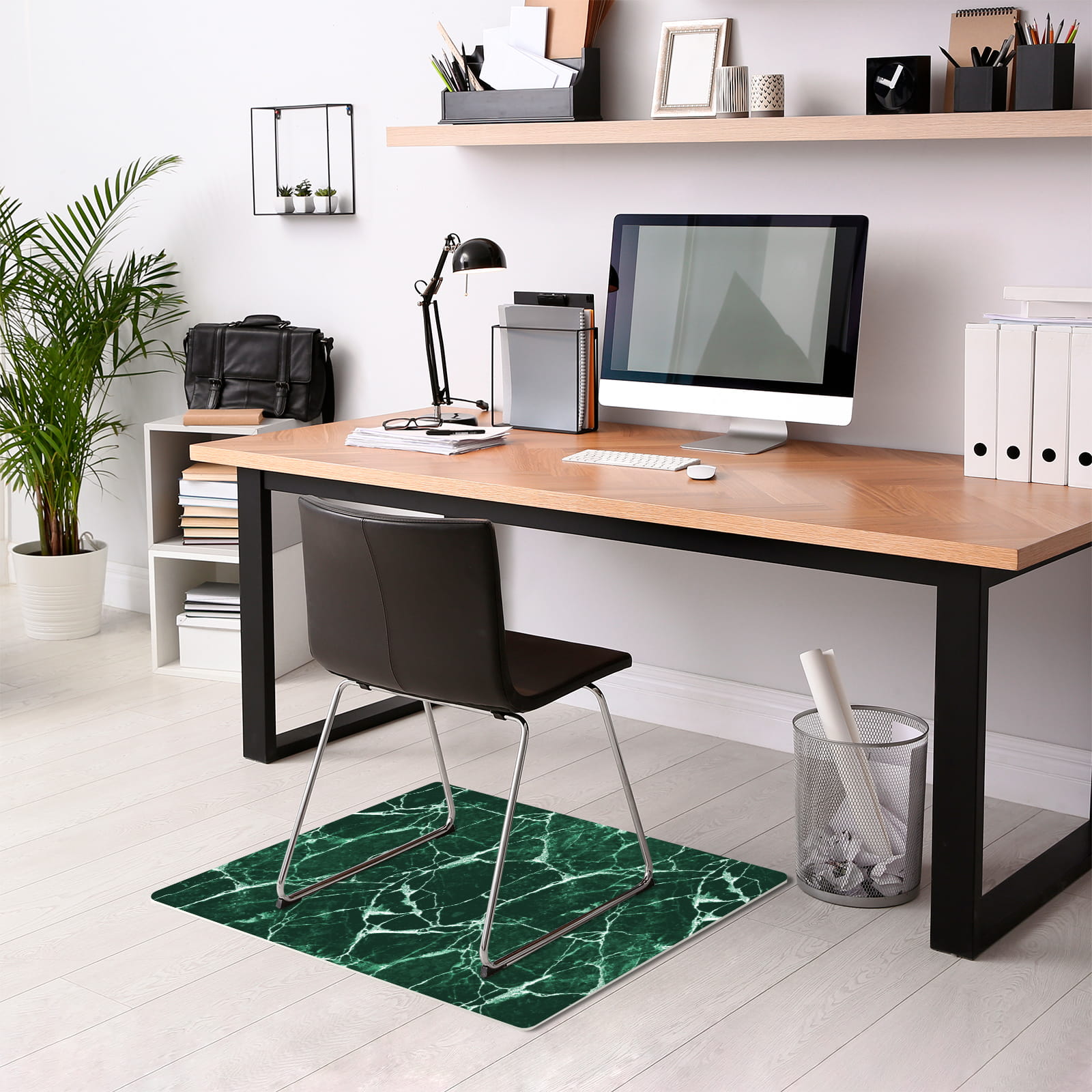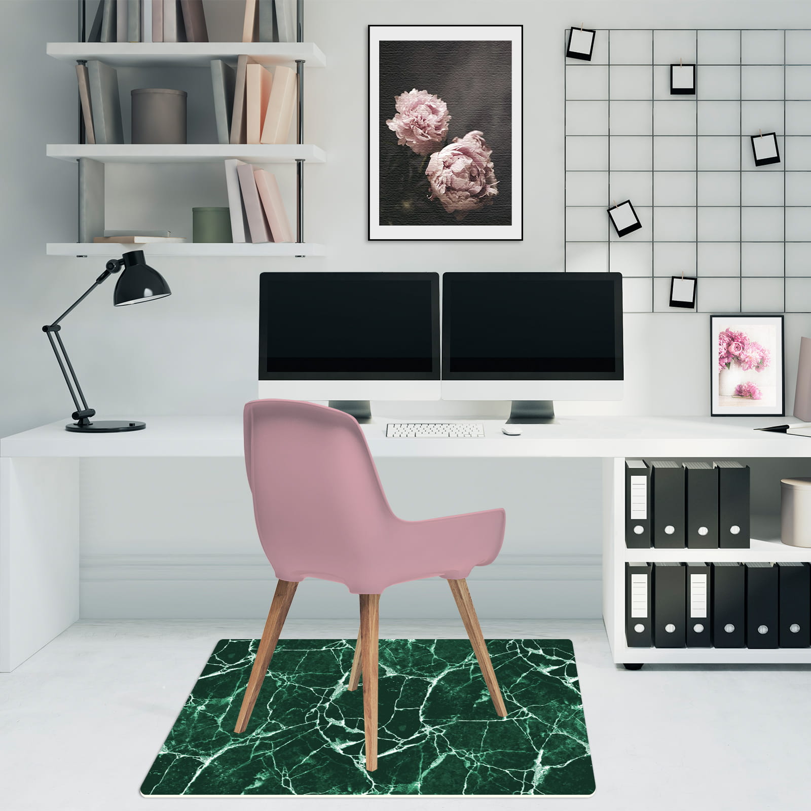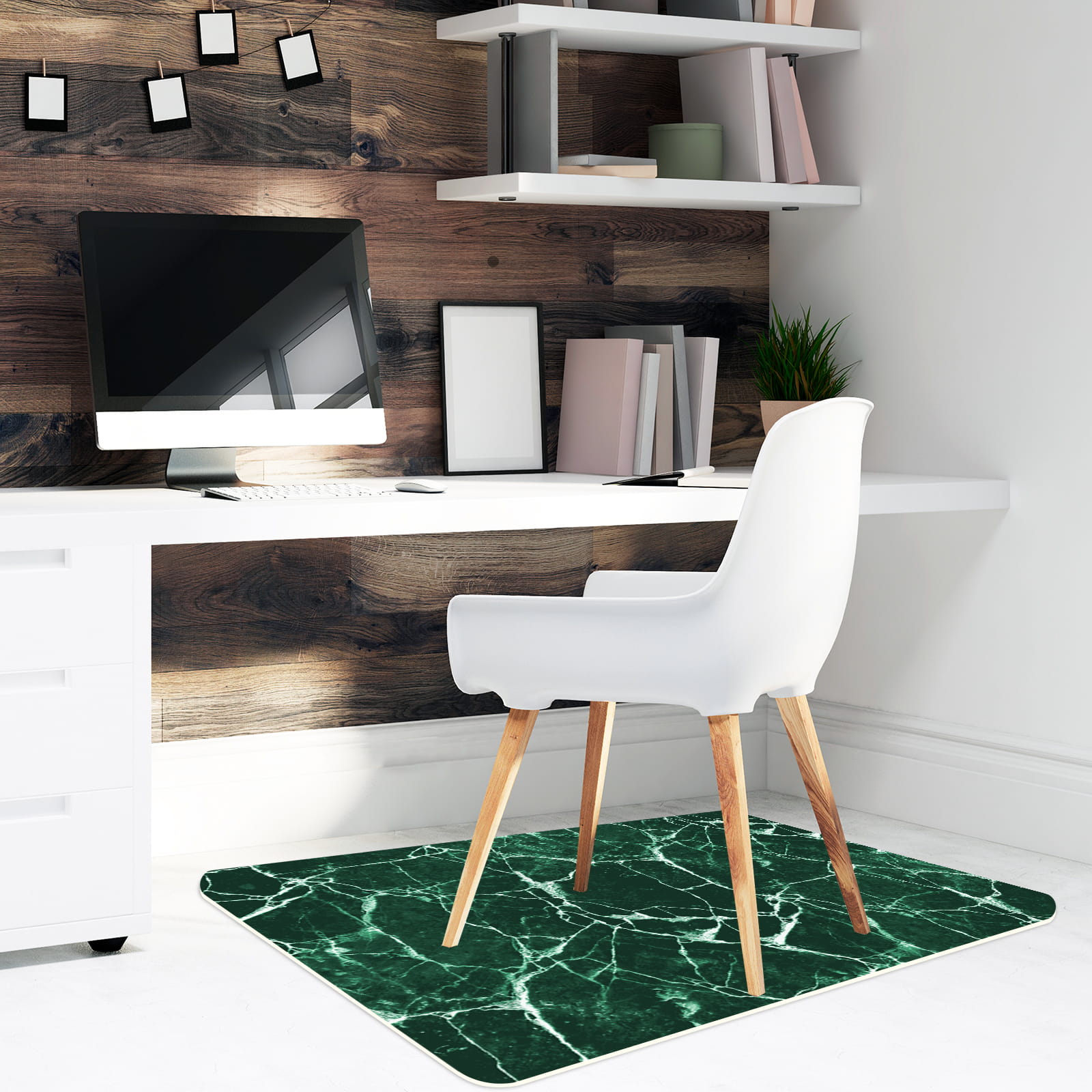 Podłogowa elegancka mata winylowa pod fotel krzesło zielony marmur