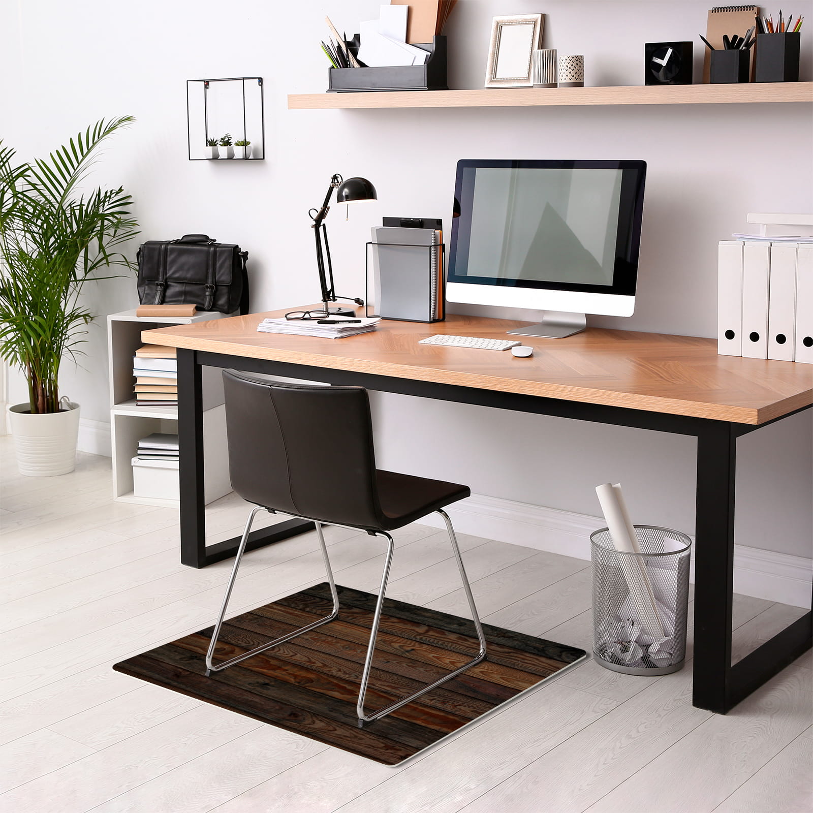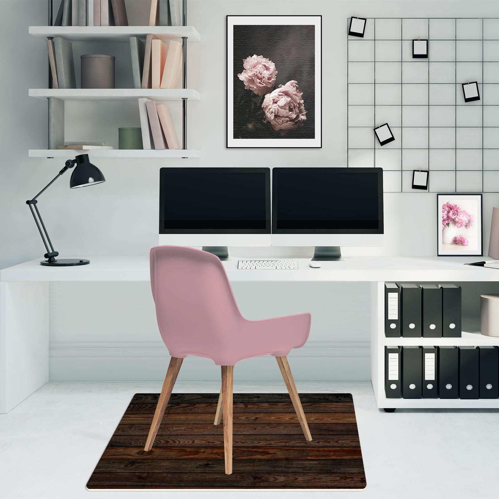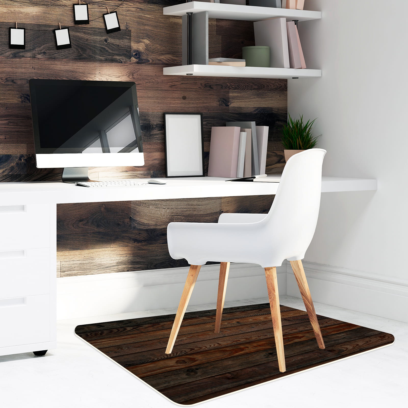 Podłogowa mata winylowa pod fotel krzesło CIEMNE DESKI DREWNO