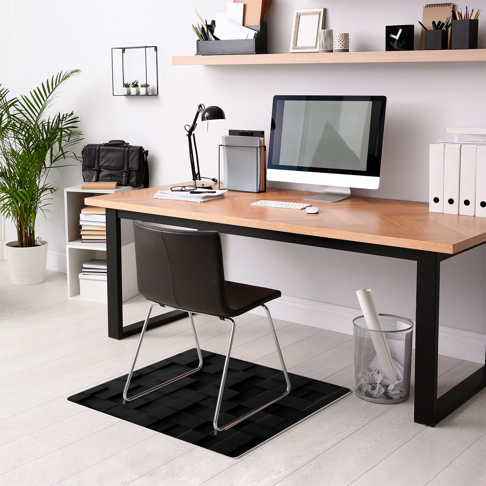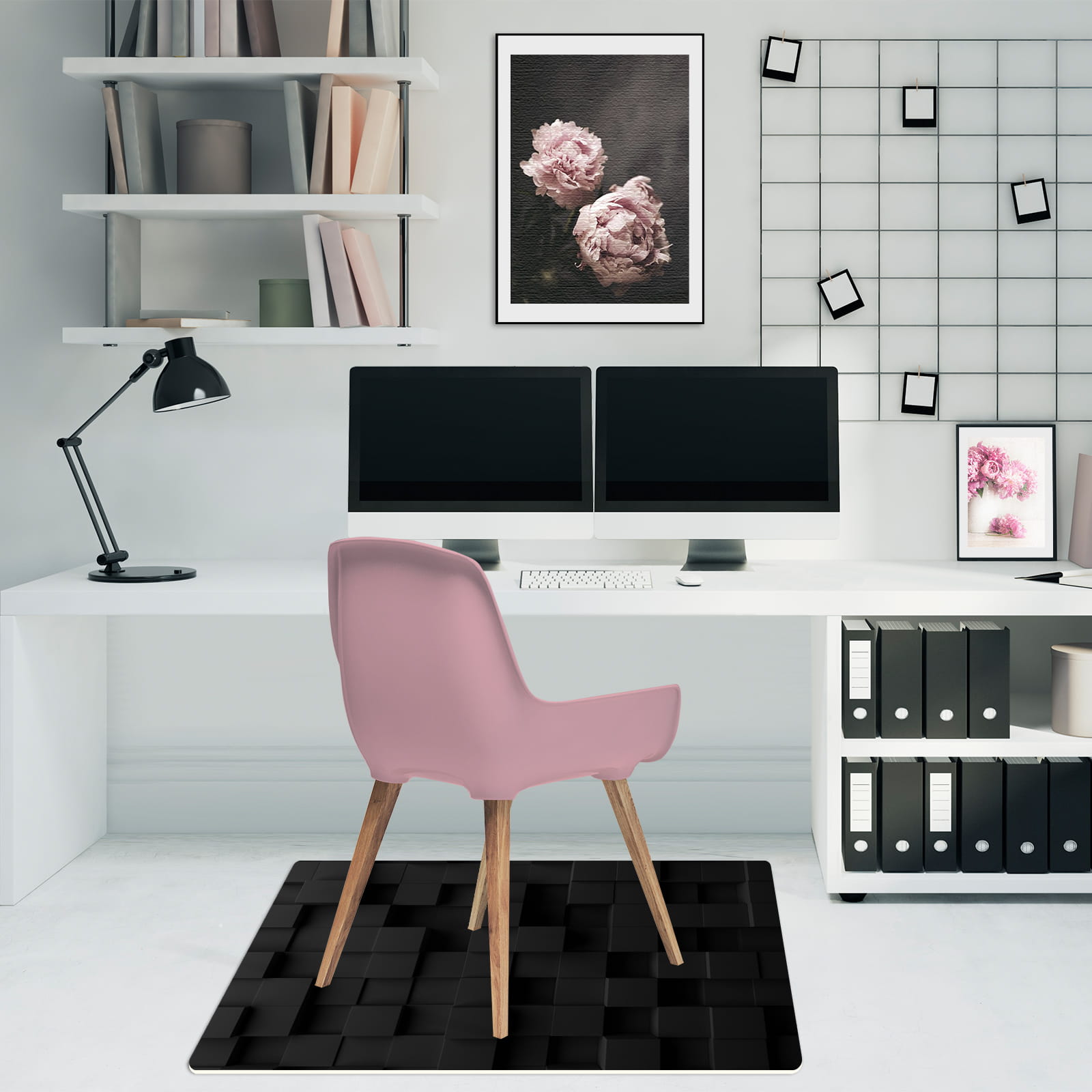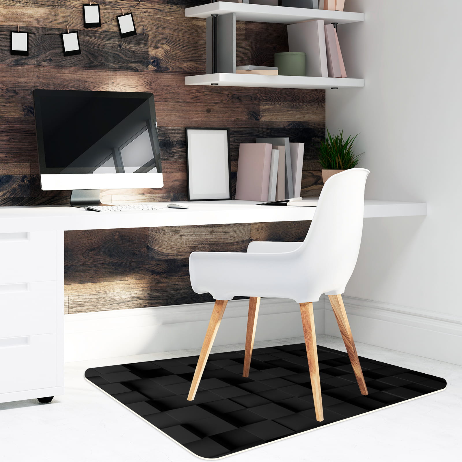 Podłogowa mata winylowa pod fotel krzesło CZARNE KWADRATY 3D