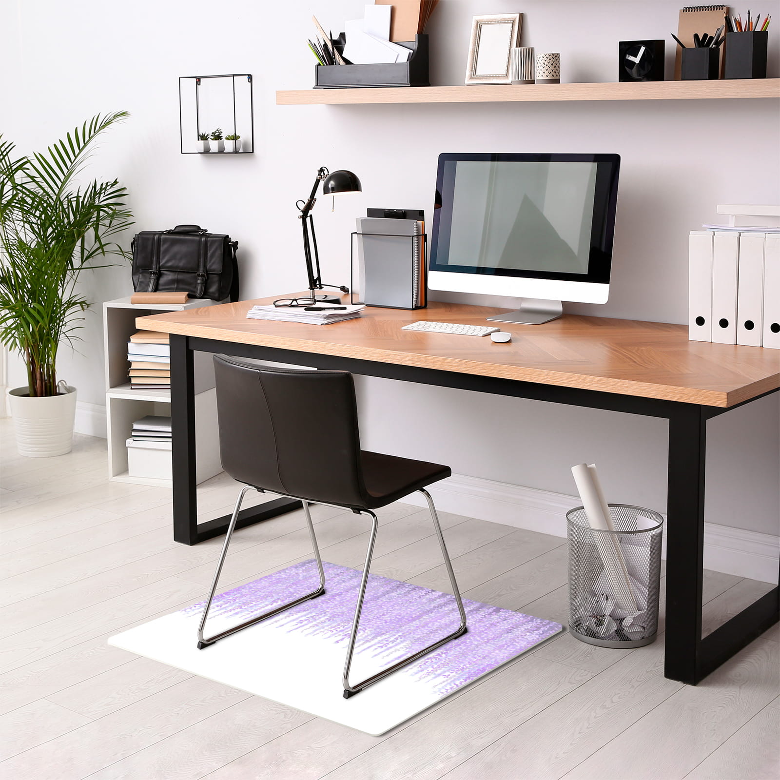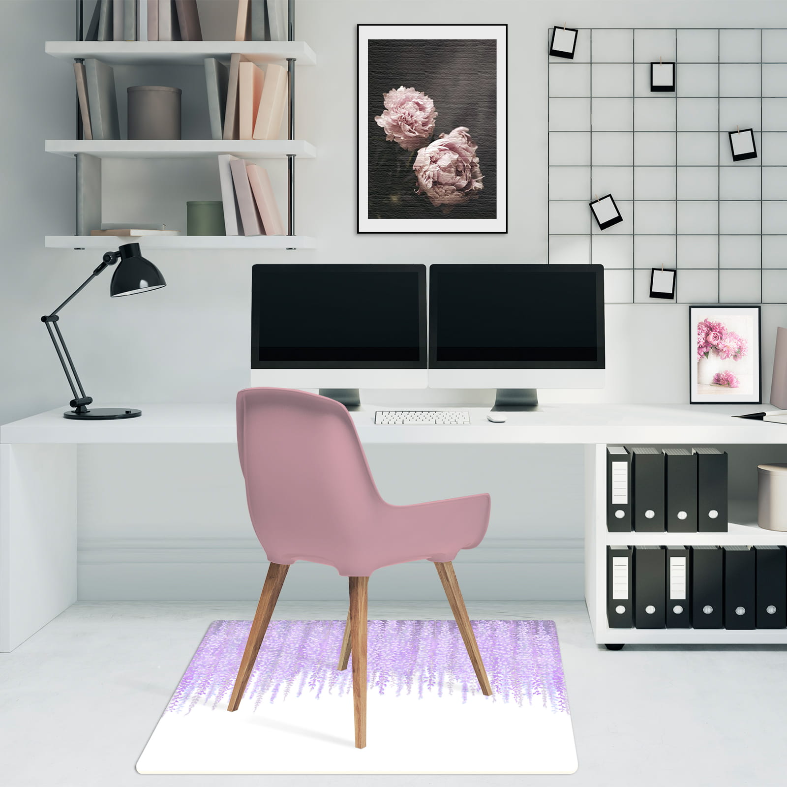Podłogowa mata winylowa pod fotel krzesło FIOLETOWE KWIATY