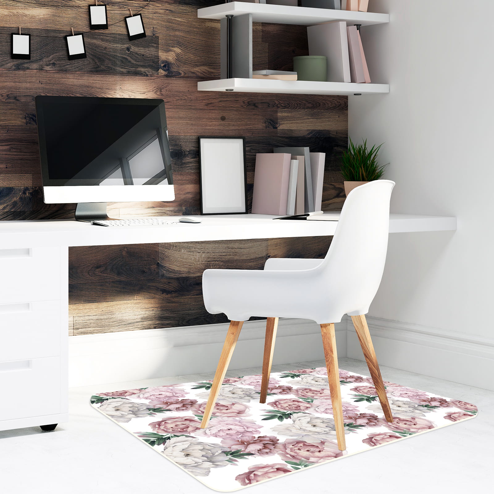Podłogowa mata winylowa pod fotel krzesło PIWONIE PEONIE