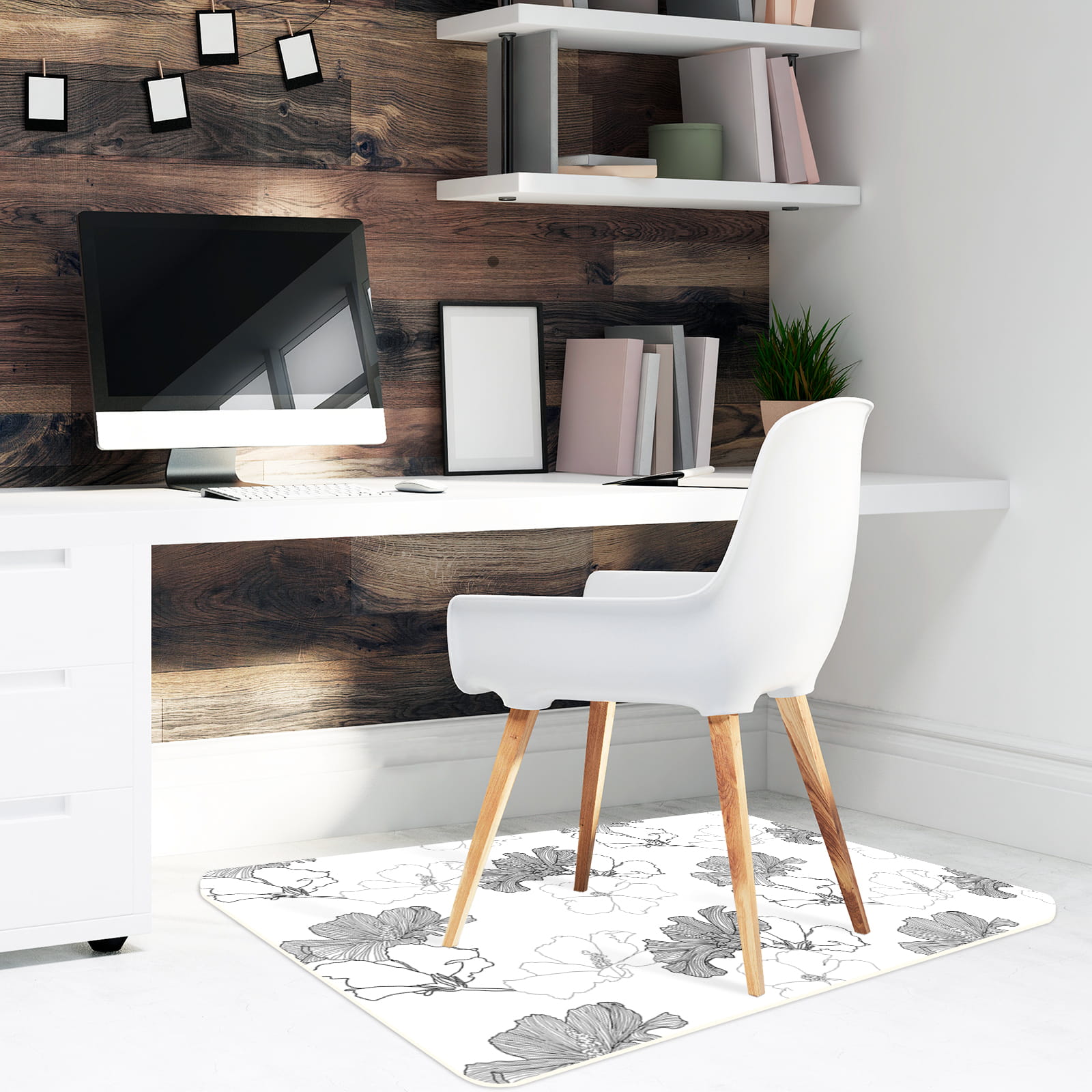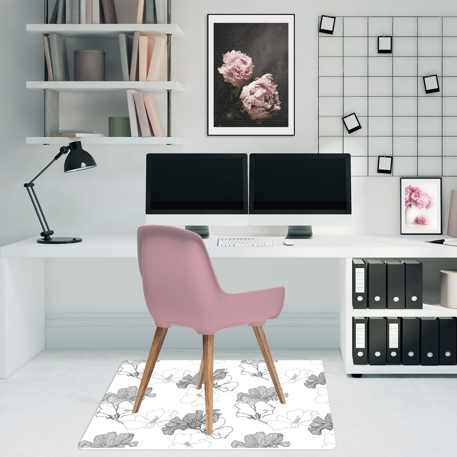 Podłogowa mata winylowa pod fotel krzesło SZARE KWIATY