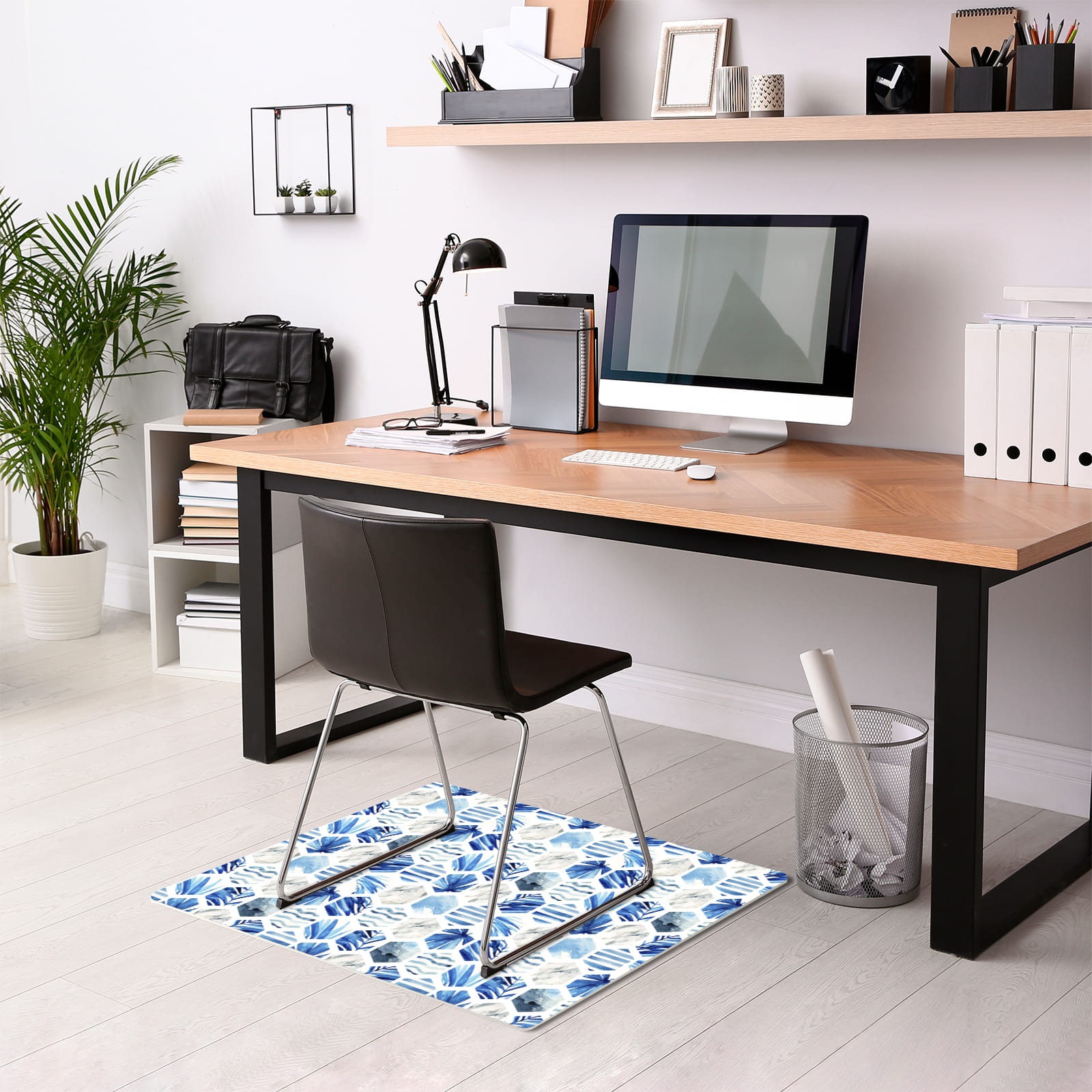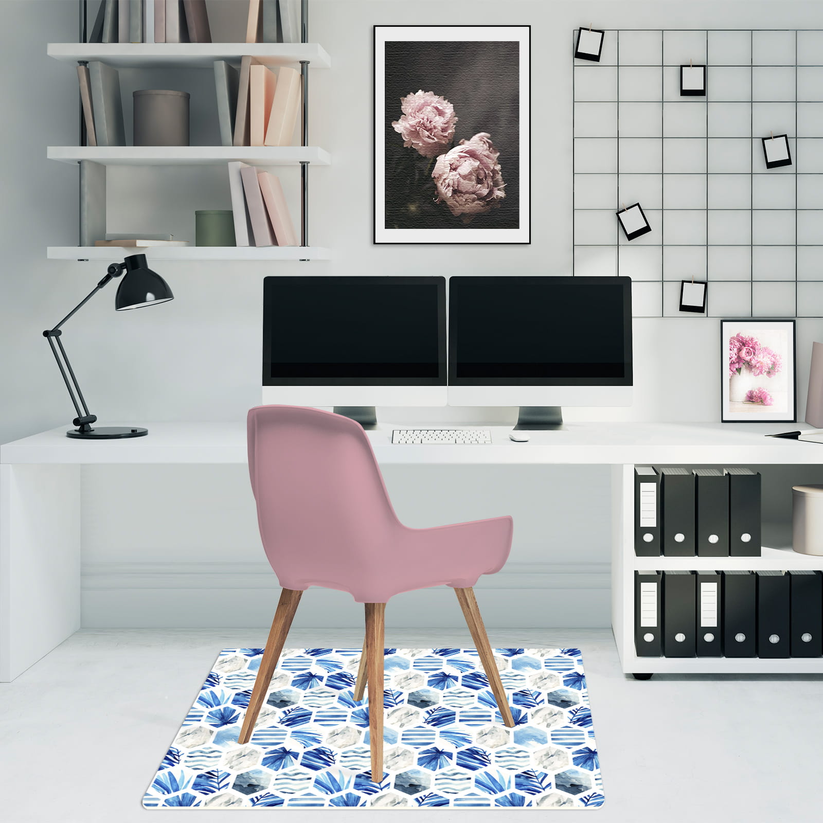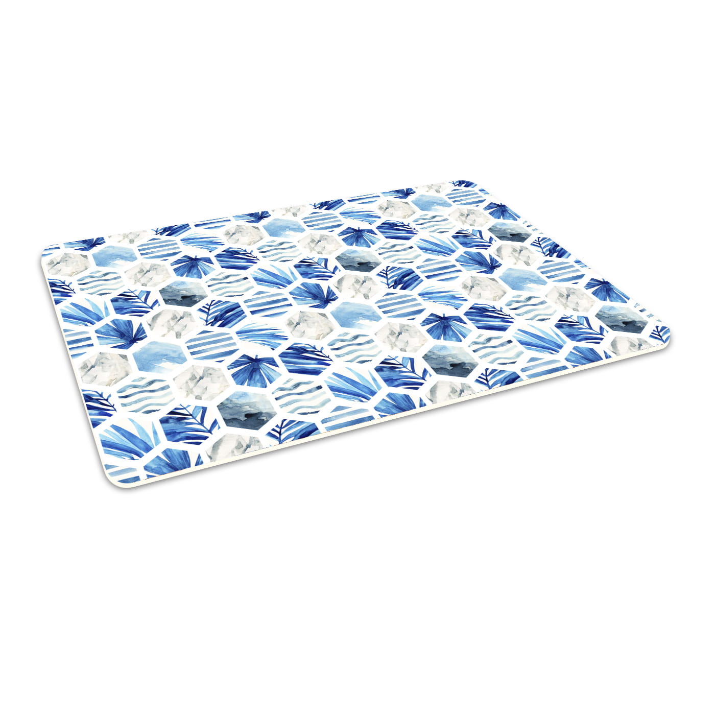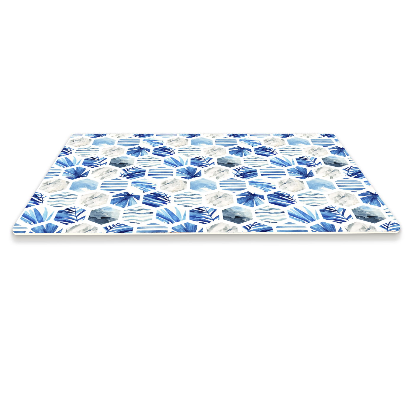 Podłogowa mata winylowa pod fotel krzesło niebieskie heksagony