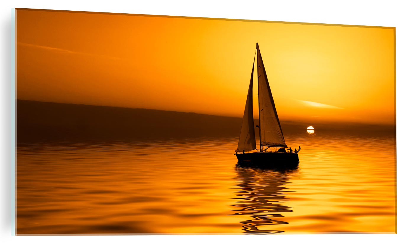 SZKLANY FOTO OBRAZ ŁÓDKA NA MORZU ZACHÓD SŁOŃCA