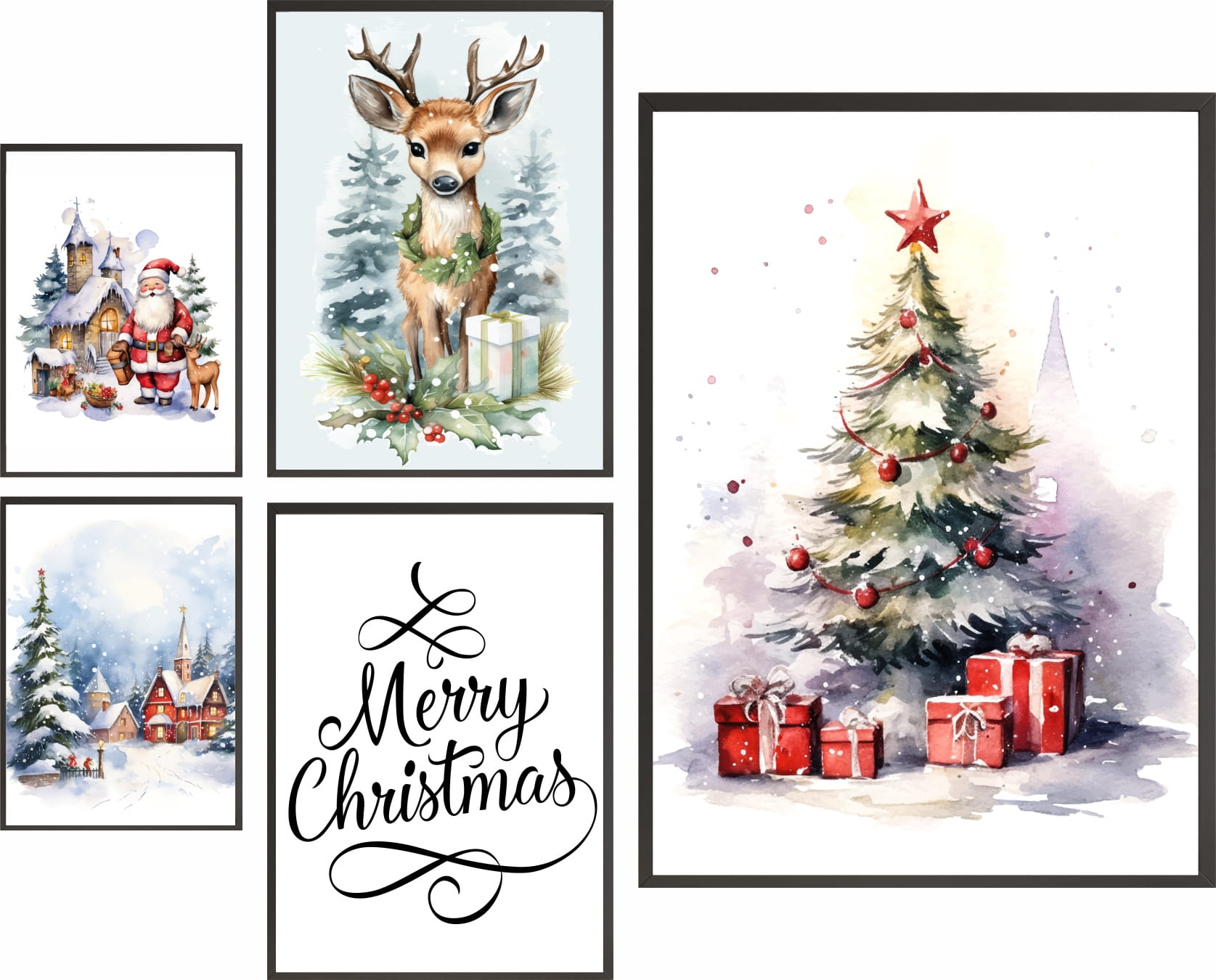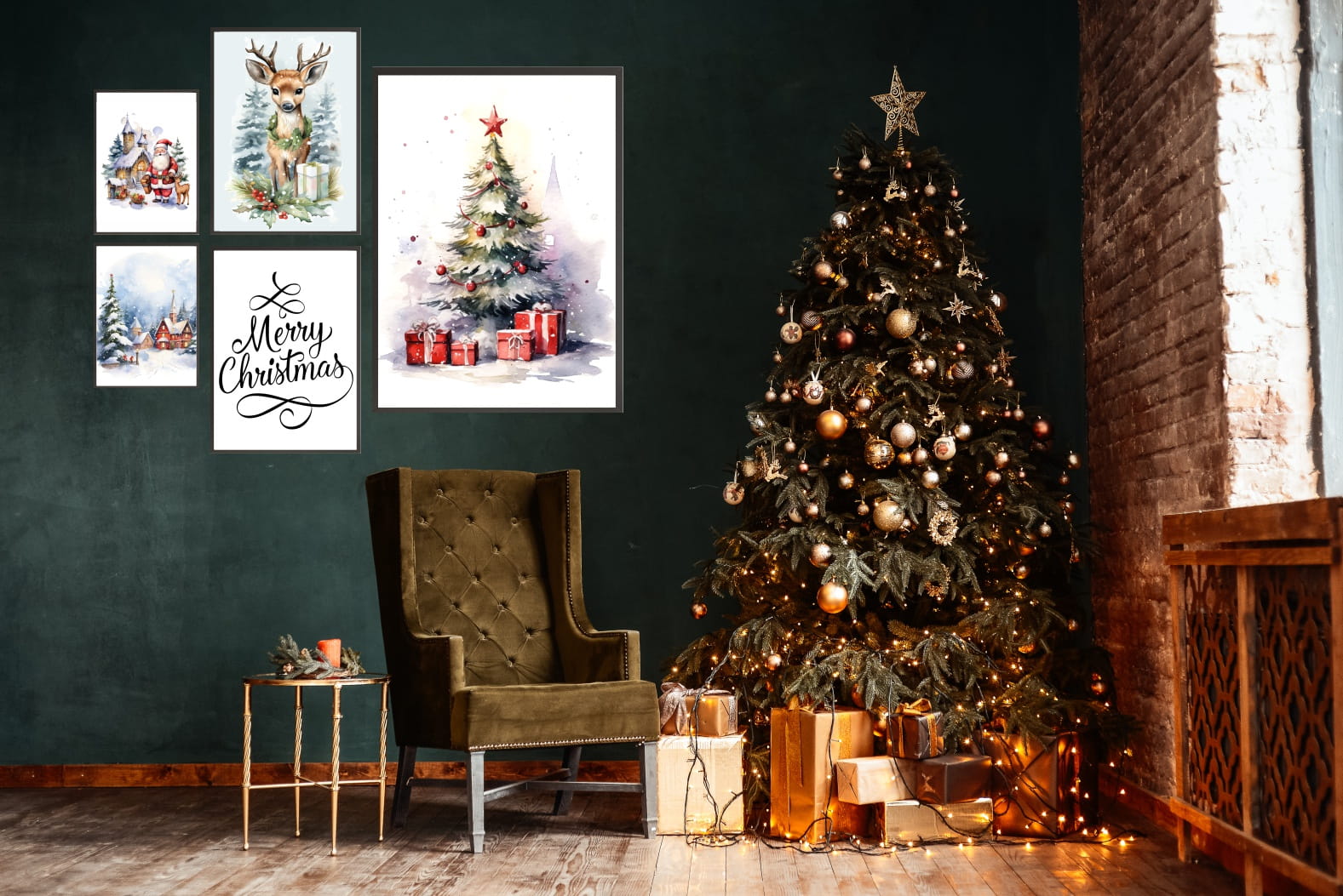 Świąteczne plakaty ZESTAW XXL 5szt ŚWIĄTECZNA KRAINA JELEŃ ZIMA