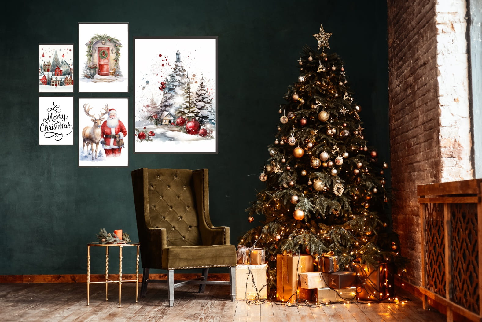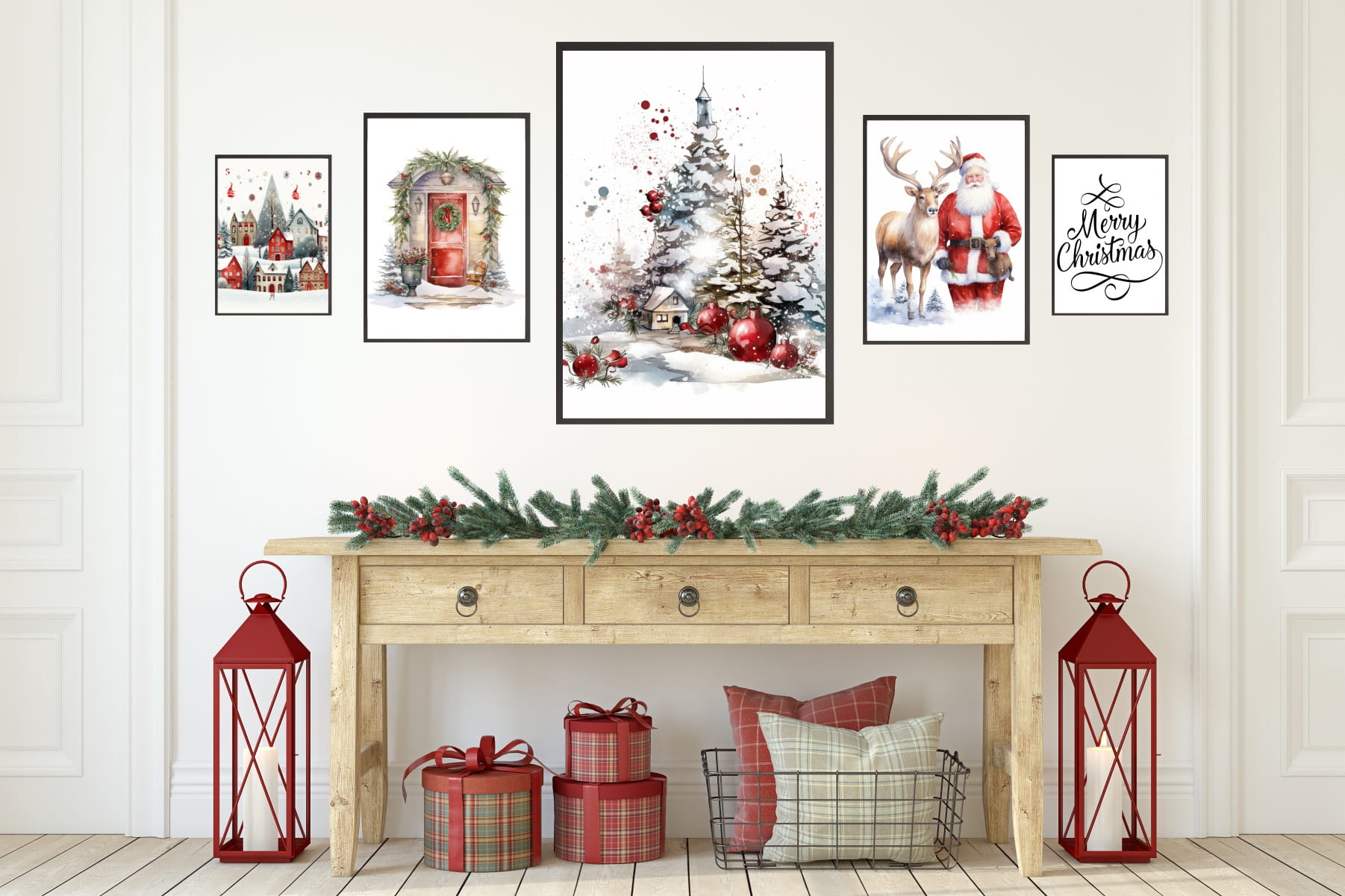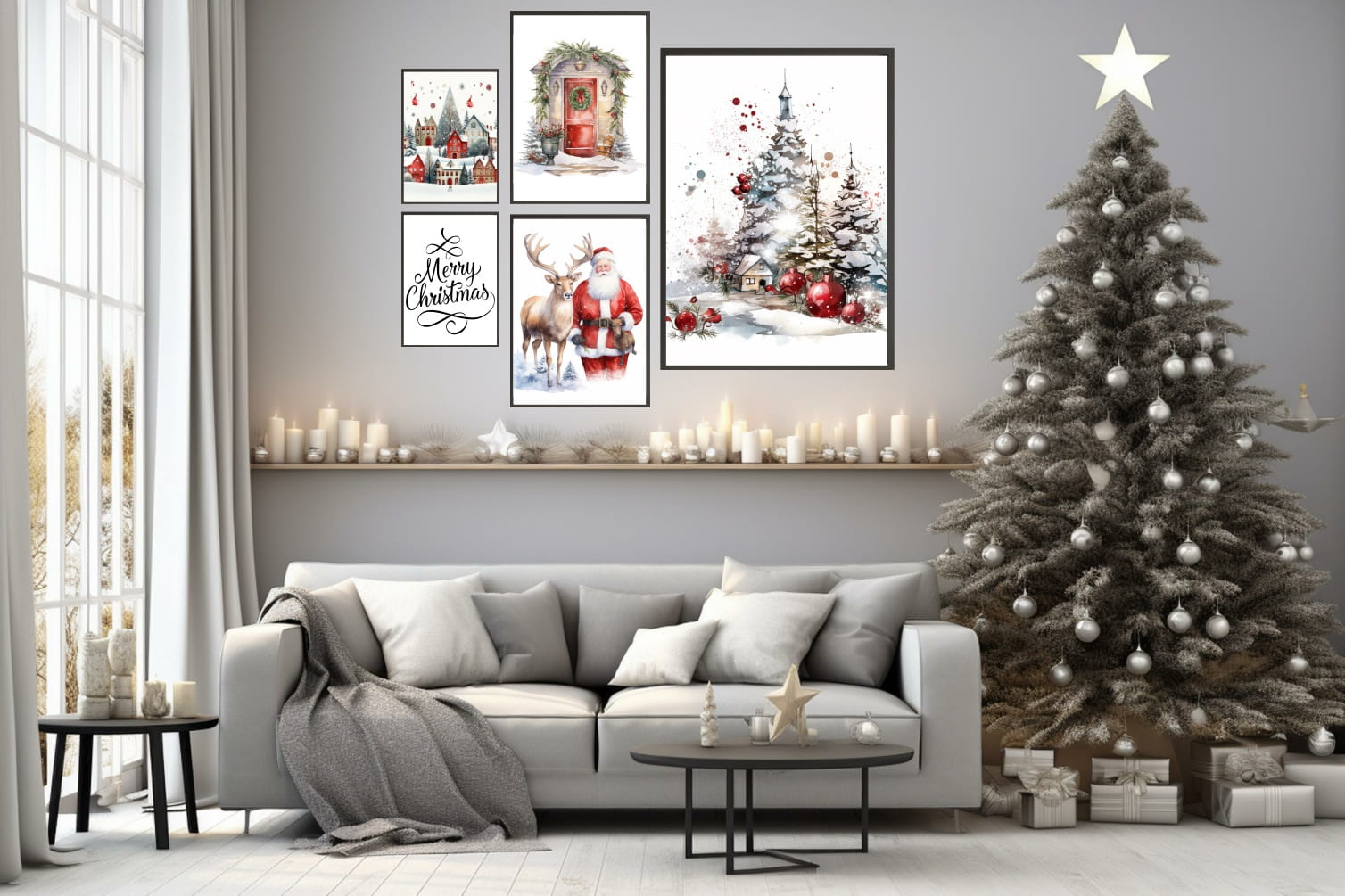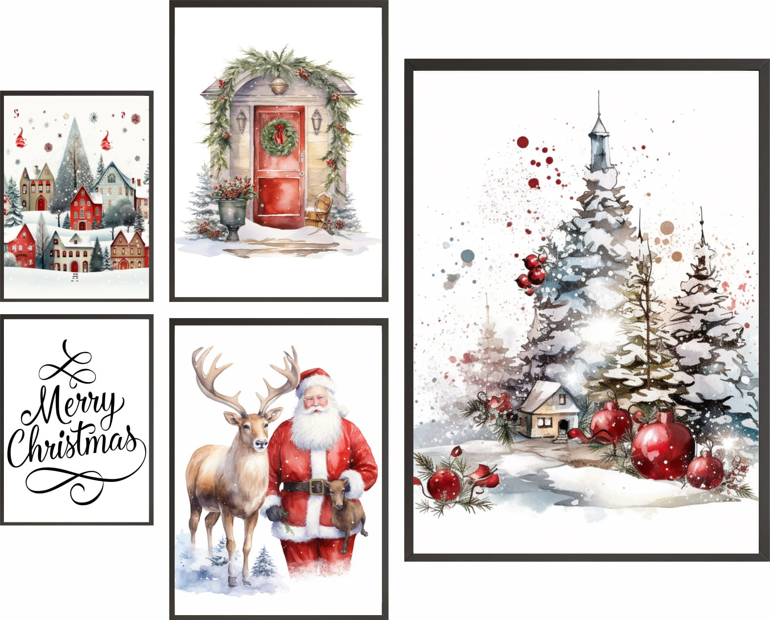 Świąteczne plakaty ZESTAW XXL 5szt ZIMOWA SCENERIA CHOINKA MIKOŁAJ