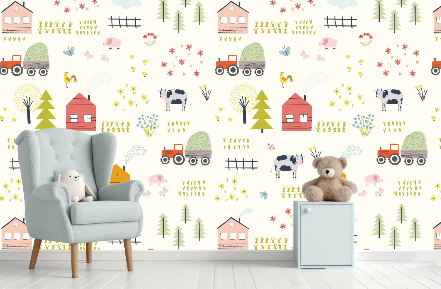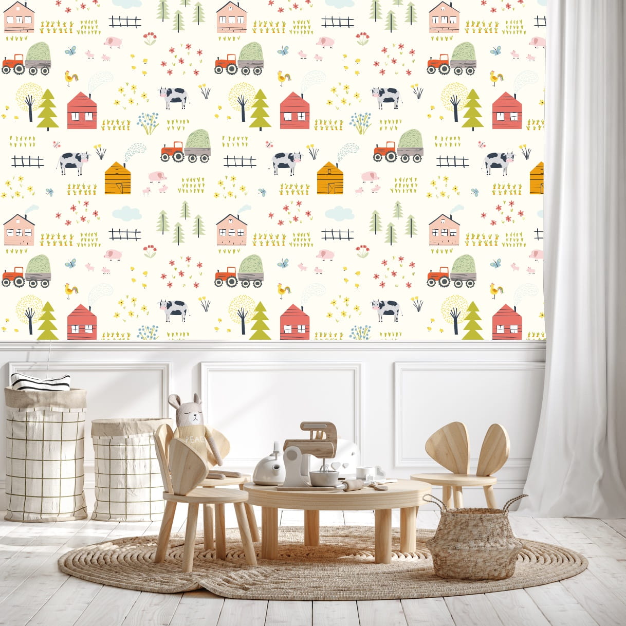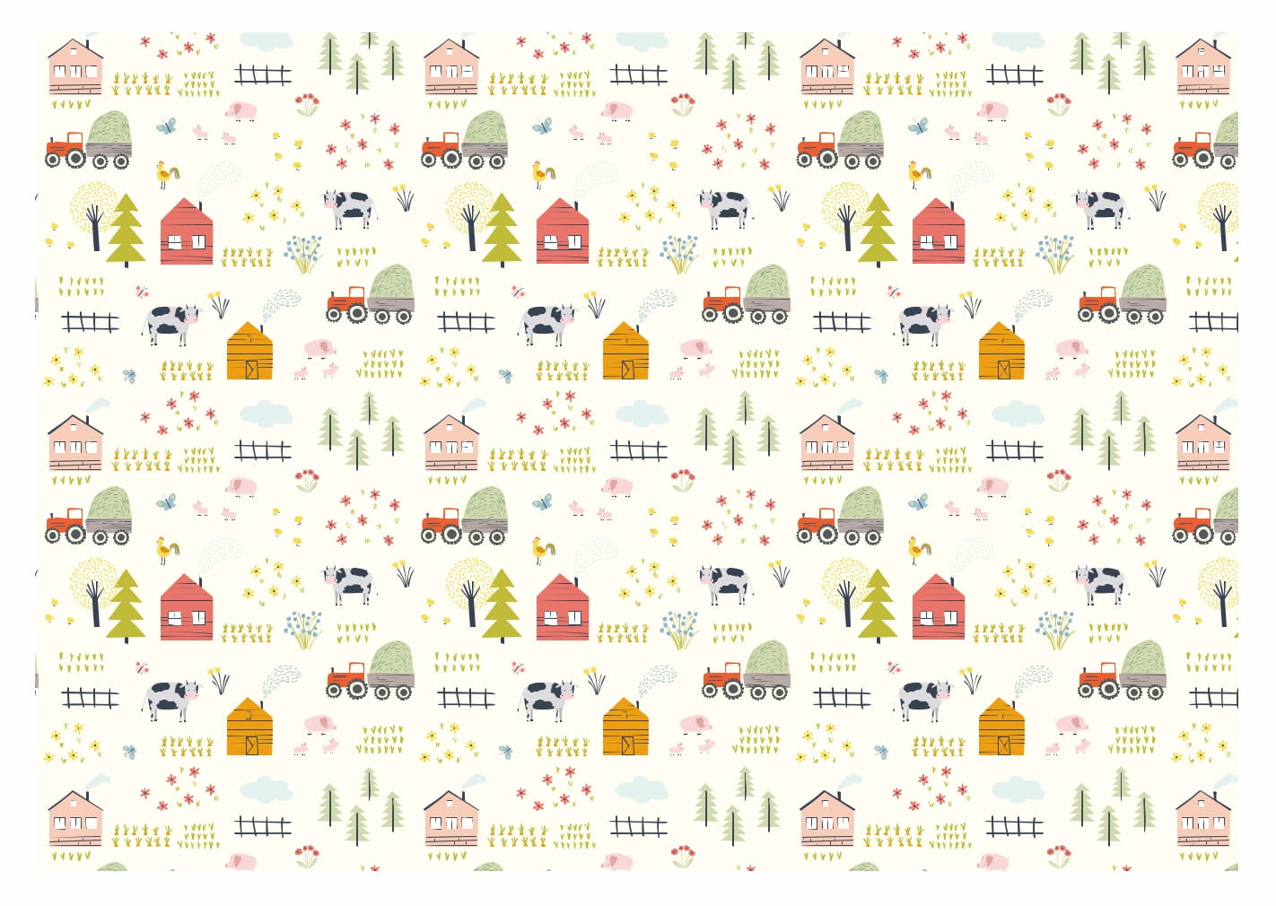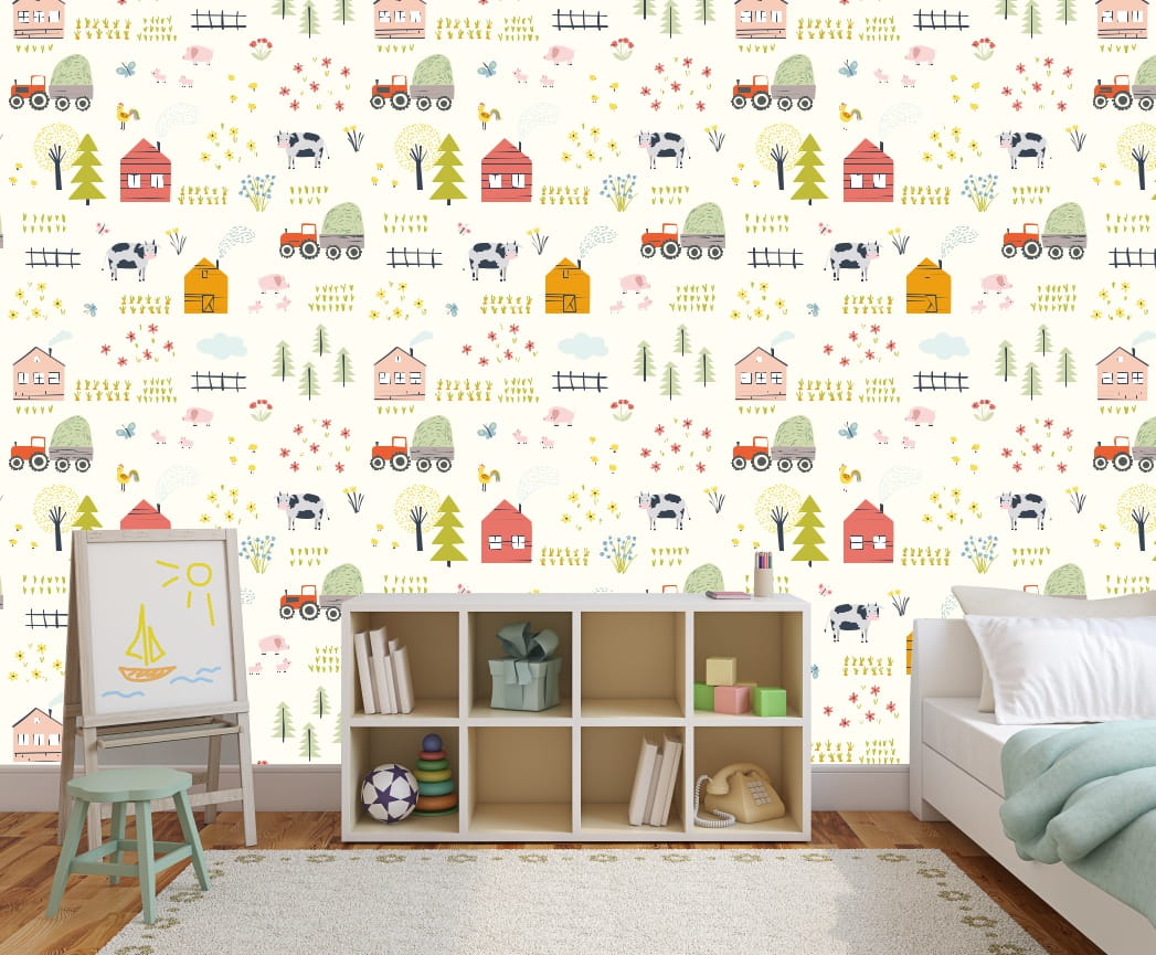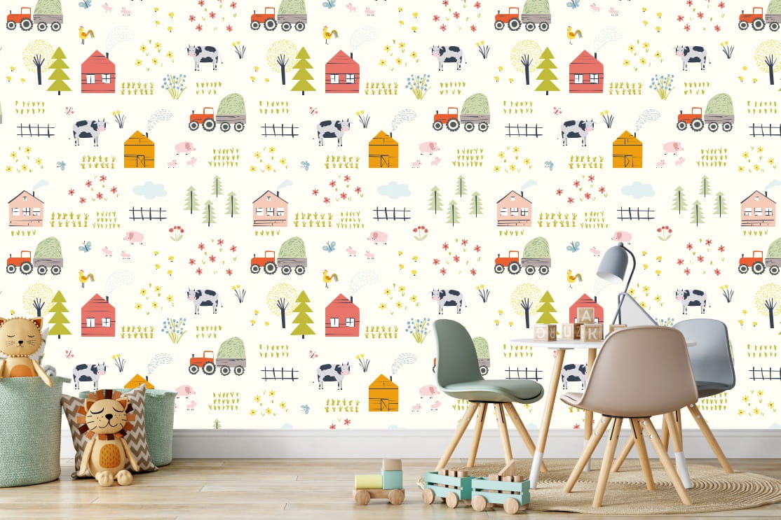 TAPETA dla dzieci NA FARMIE zwierzątka traktor wieś