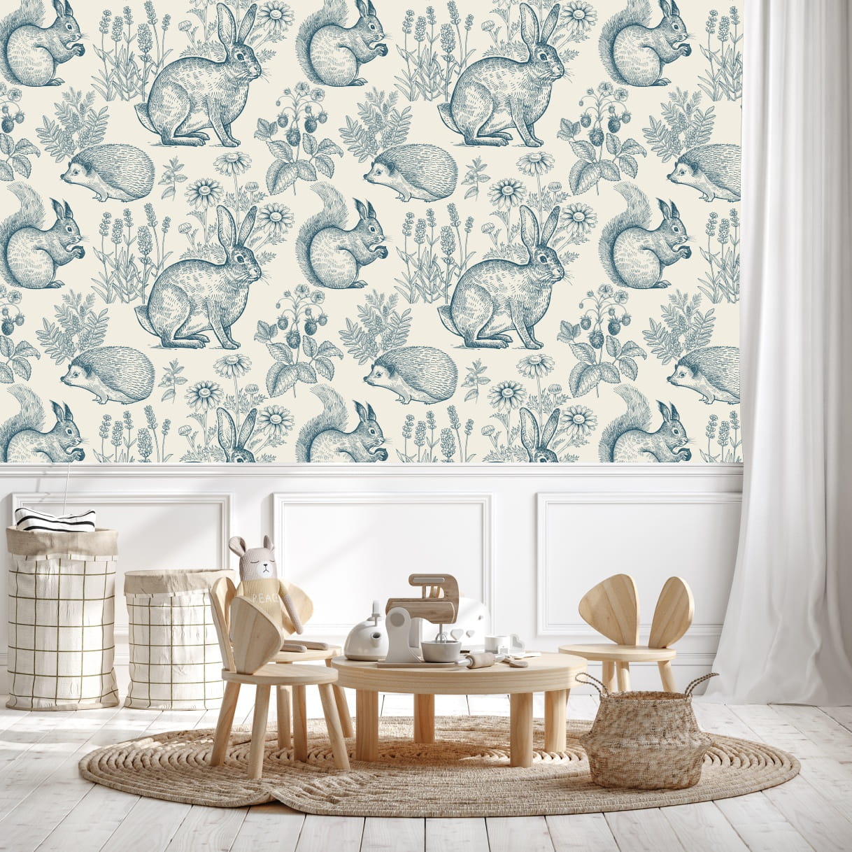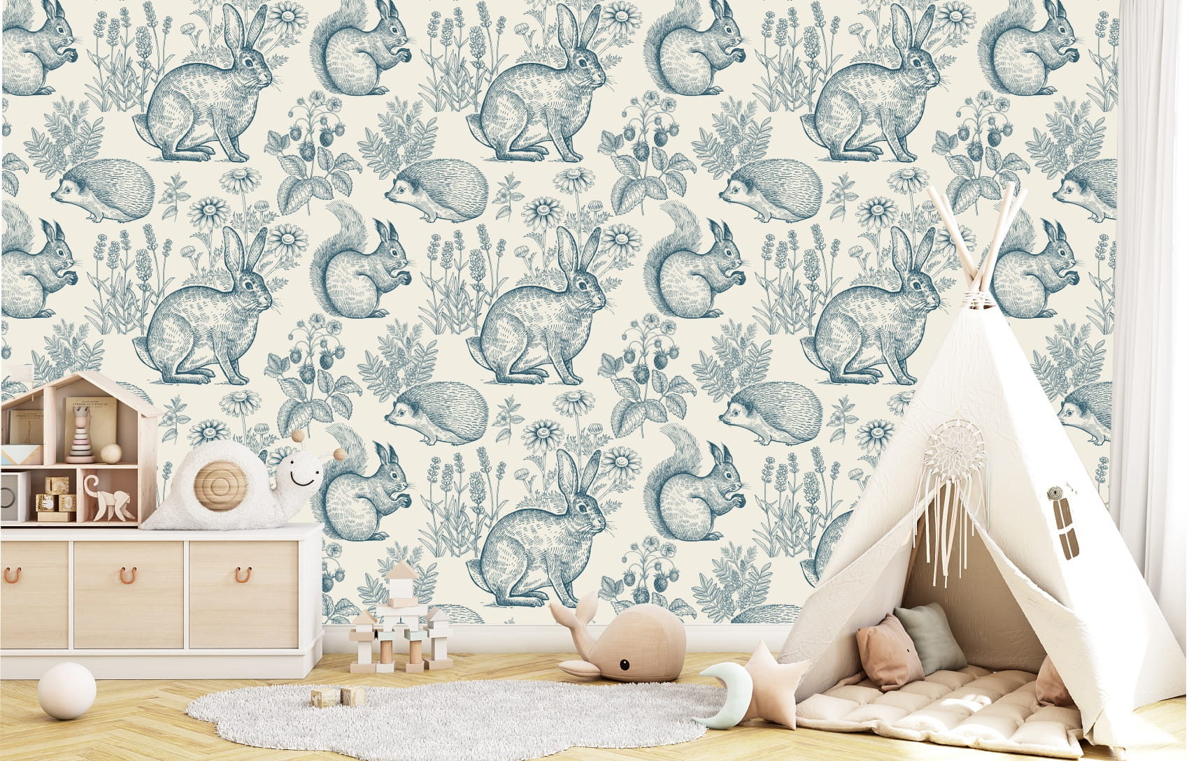 TAPETA dla dzieci zwierzątka las FOREST skandynawskie zwierzątka