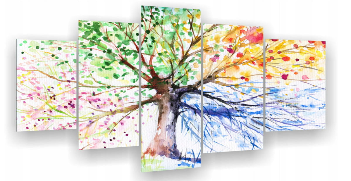 TRYPTYK NA PŁÓTNIE DRZEWO 3D CZTERY PORY ROKU