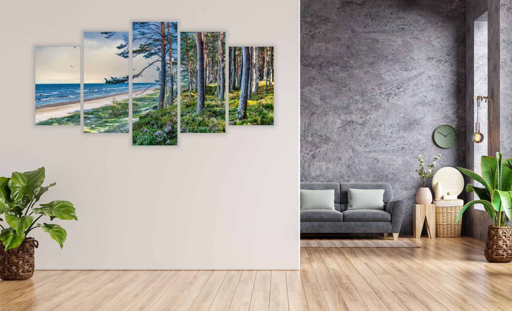 TRYPTYK OBRAZ 5 części na ścianę do salonu MORZE BAŁTYK PLAŻA LAS MORZE
